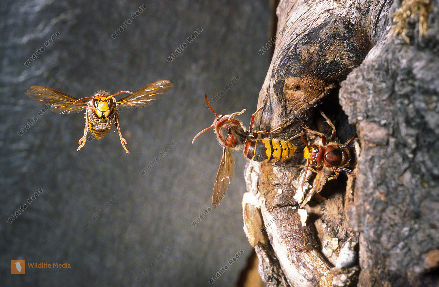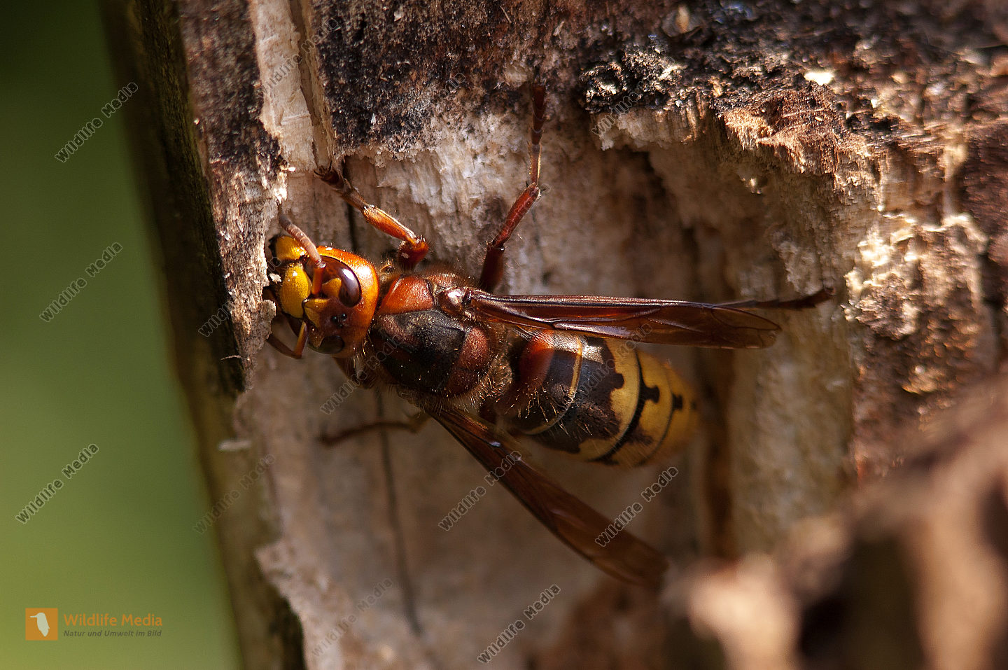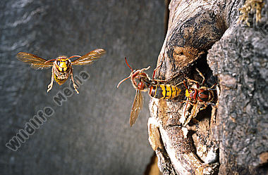 Hornisse Vespa crabro Nesteingang Anflug Schwarzspechthöhle