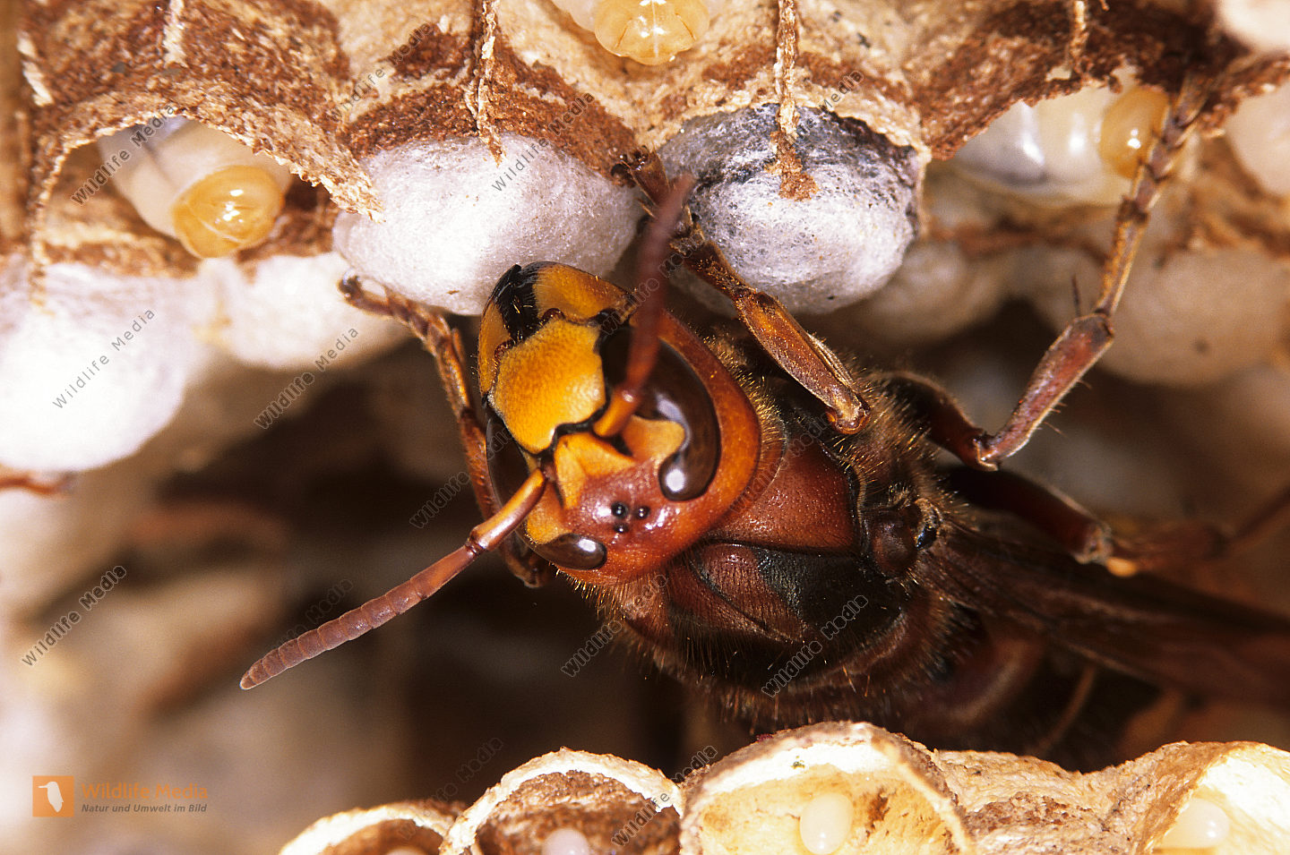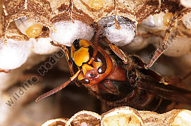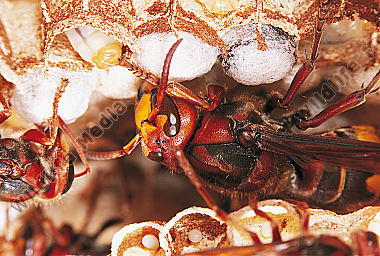 Hornisse Vespa crabro Königin Brutpflege