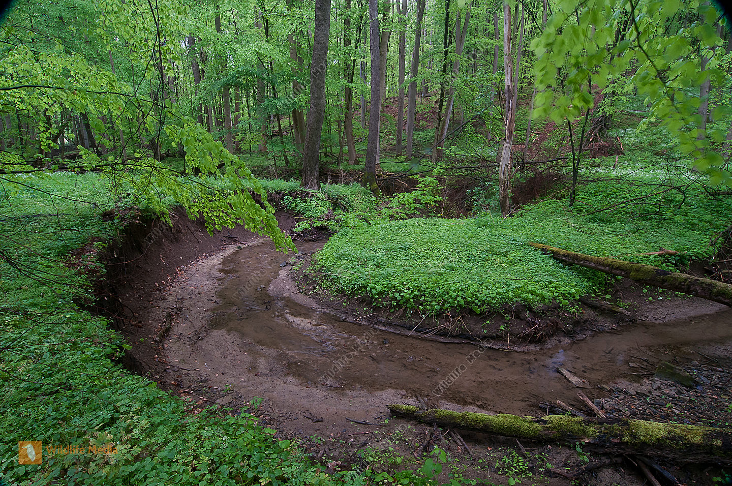 Laubwald Sommer Waldbach