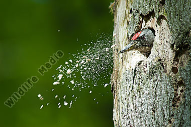 Bruthöhle Grauspecht Höhlenbau Männchen zimmert Höhle Picus canus