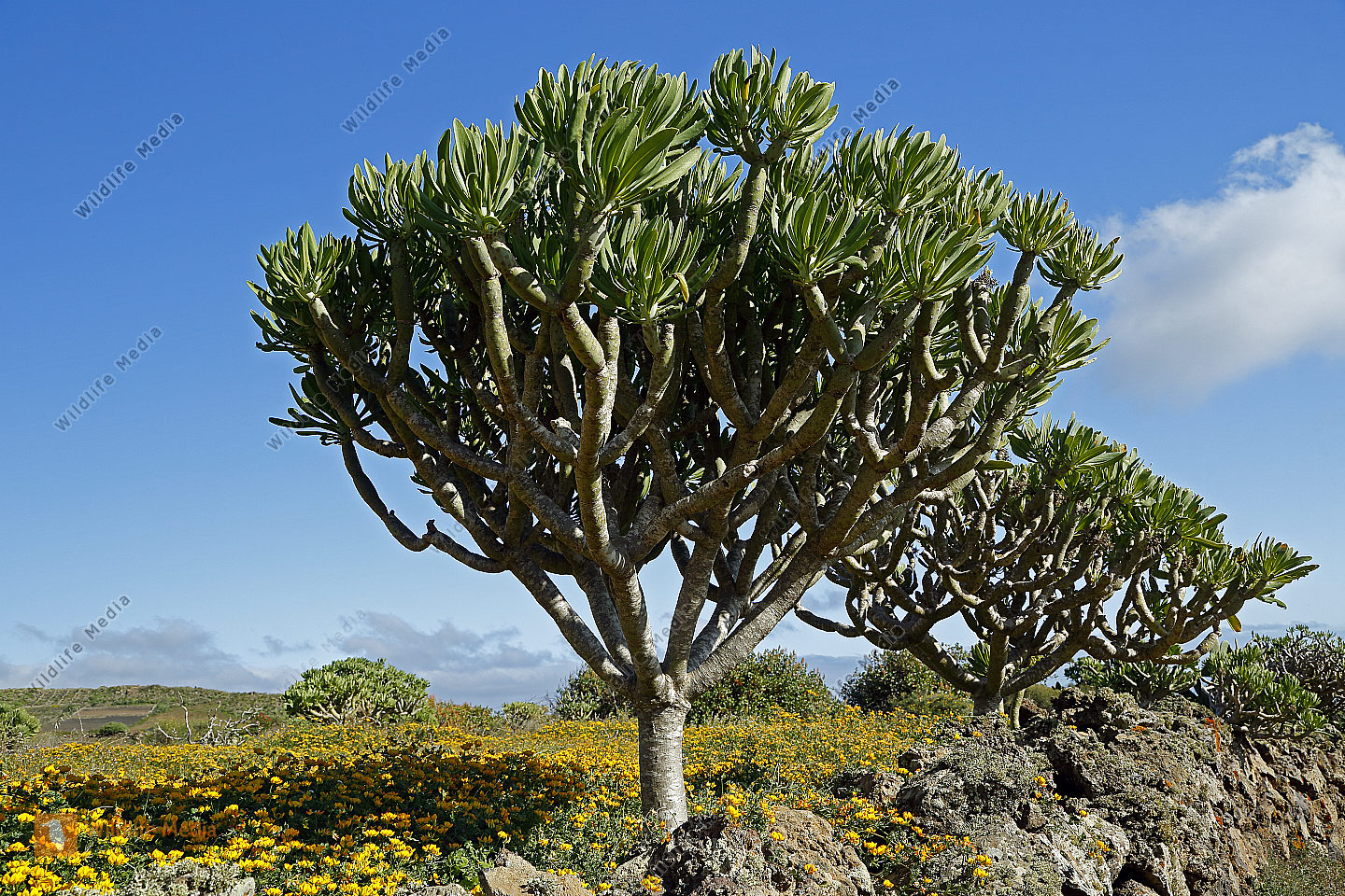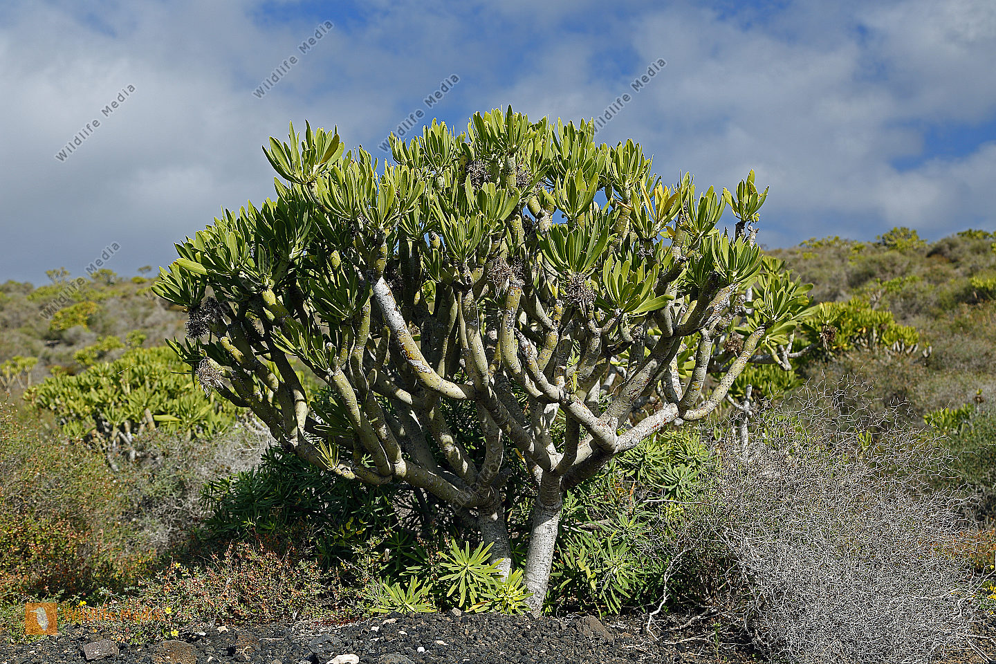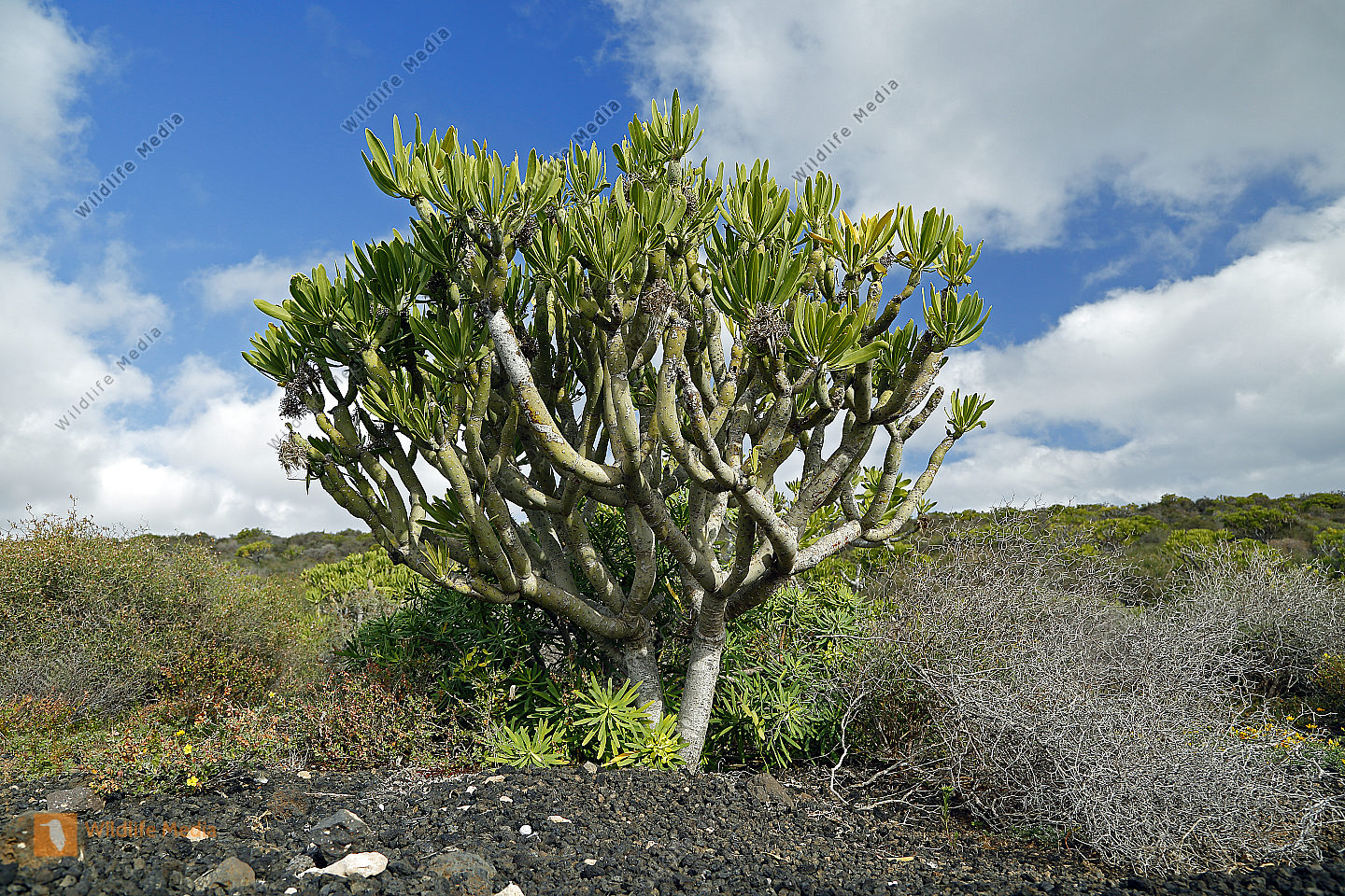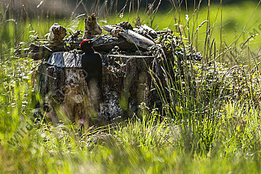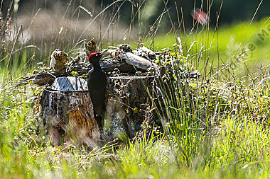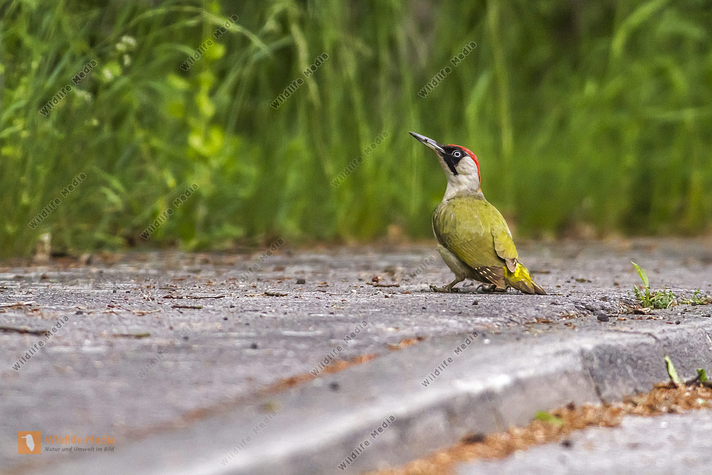 Ein Buntspecht am Baumstamm sucht nach Nahrung