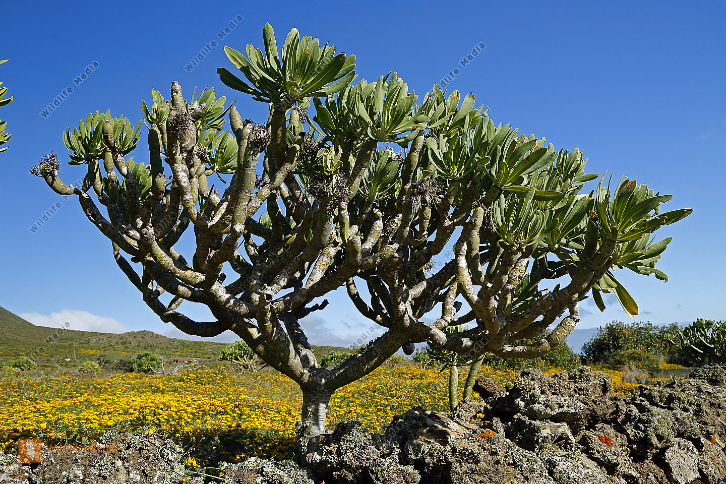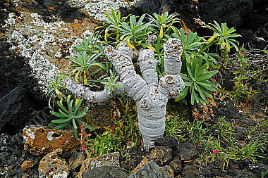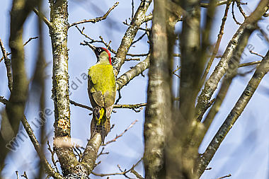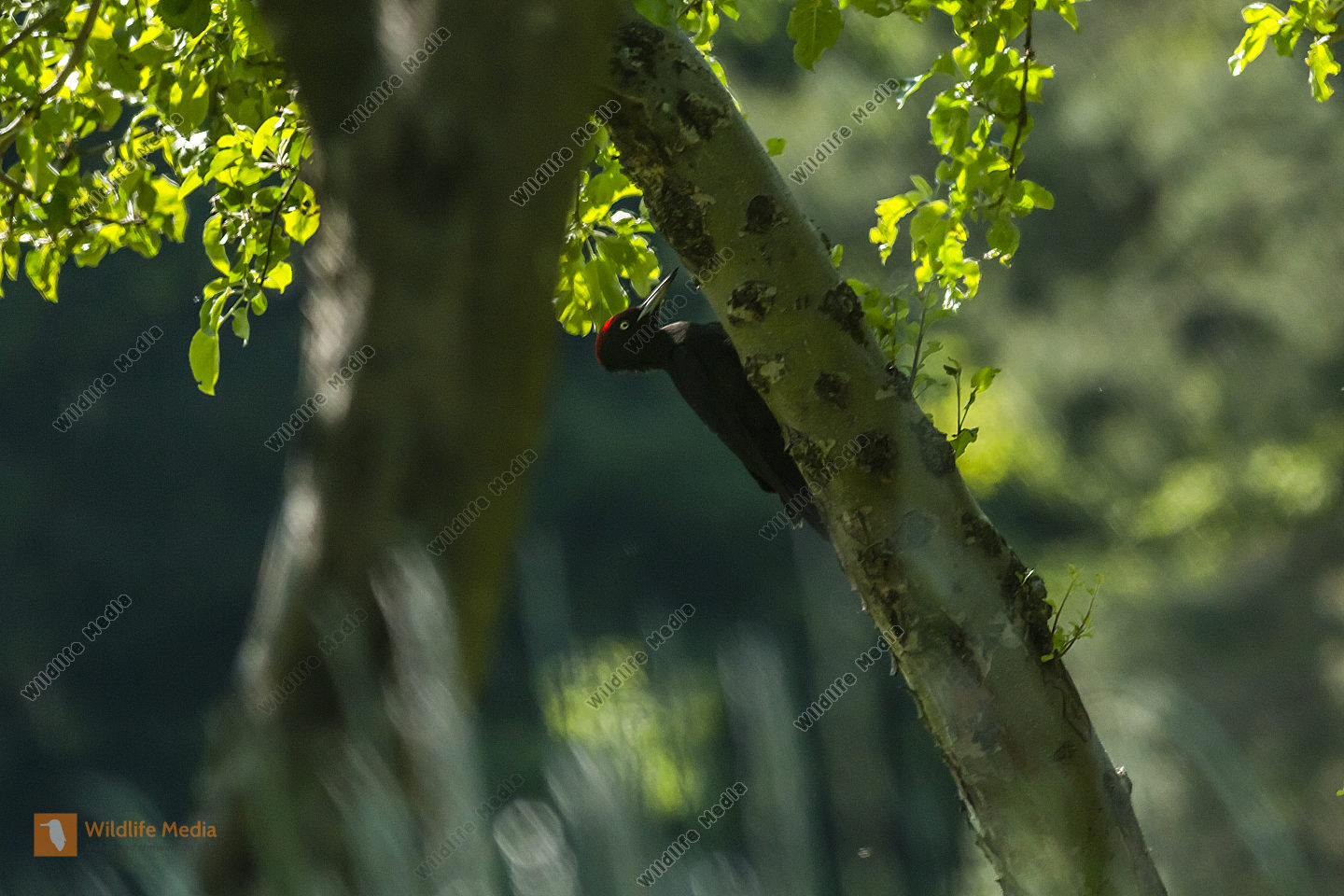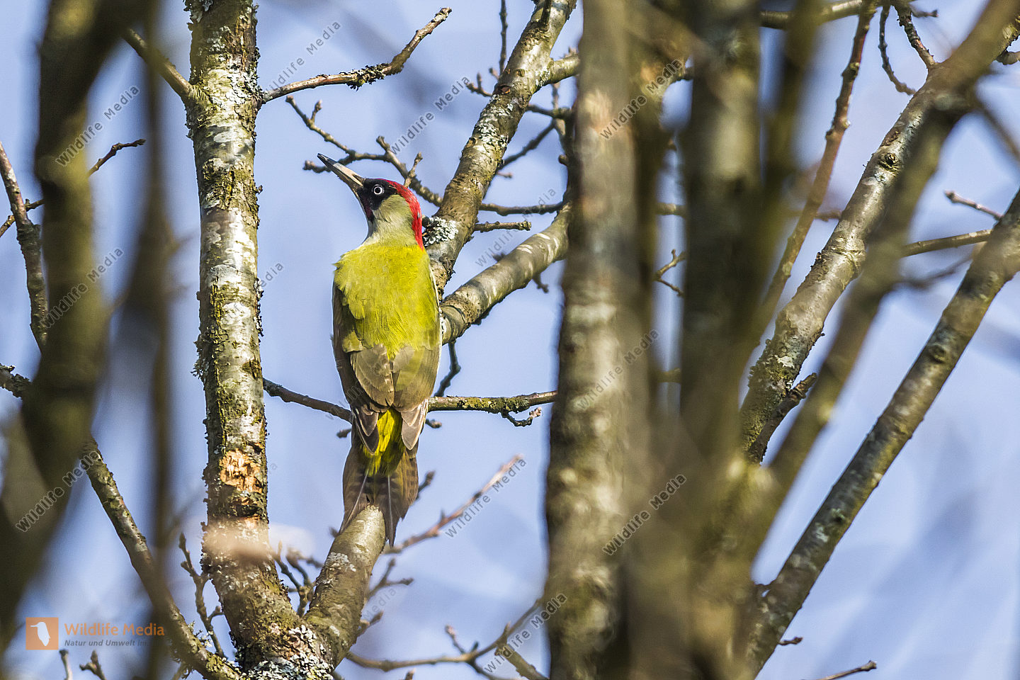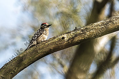 Ein Kleinspecht auf Futtersuche am Baumstamm