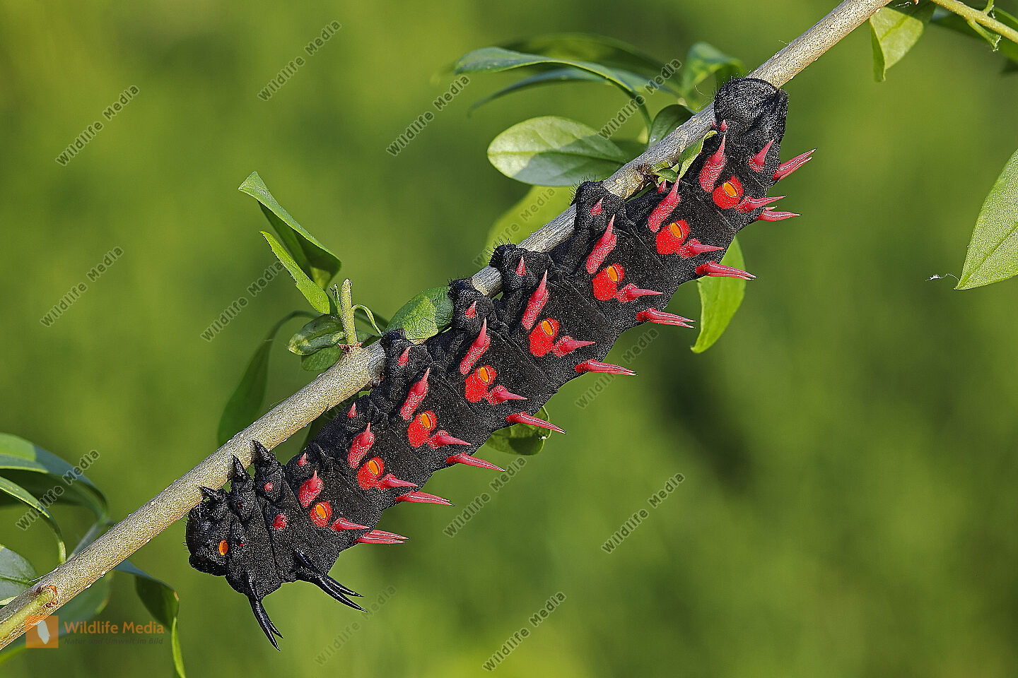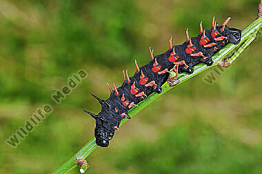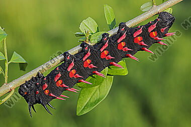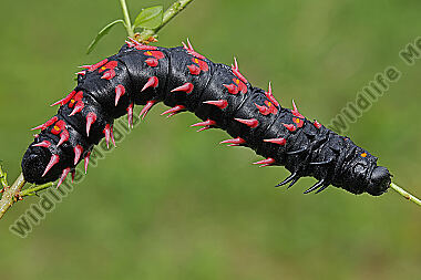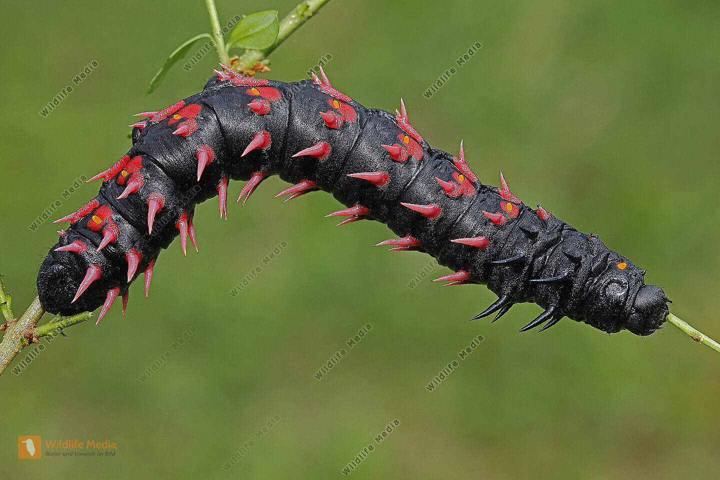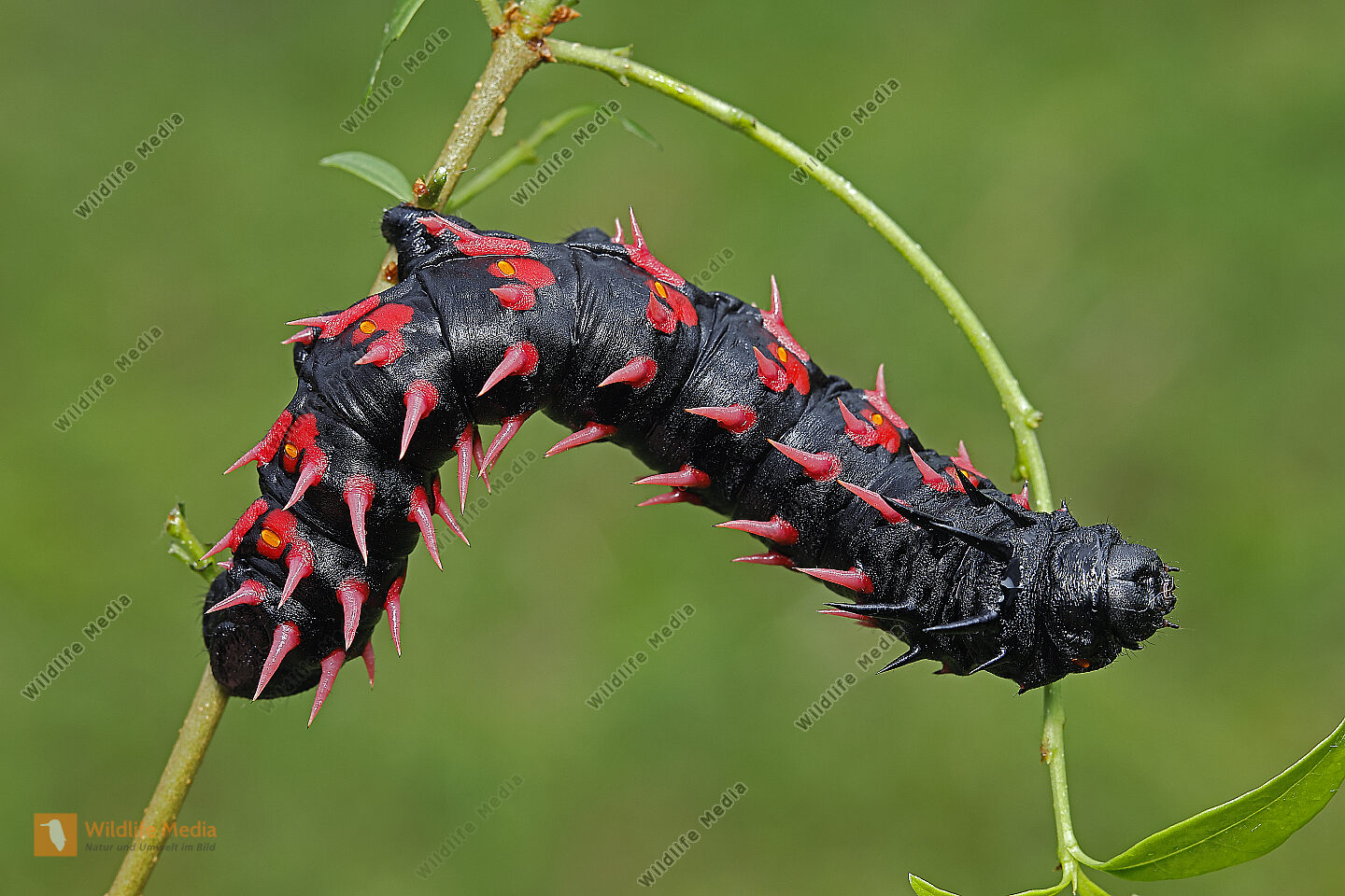 Seidenspinner Bunaea alcione halberwachsene Raupe