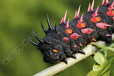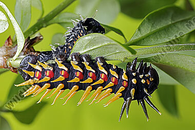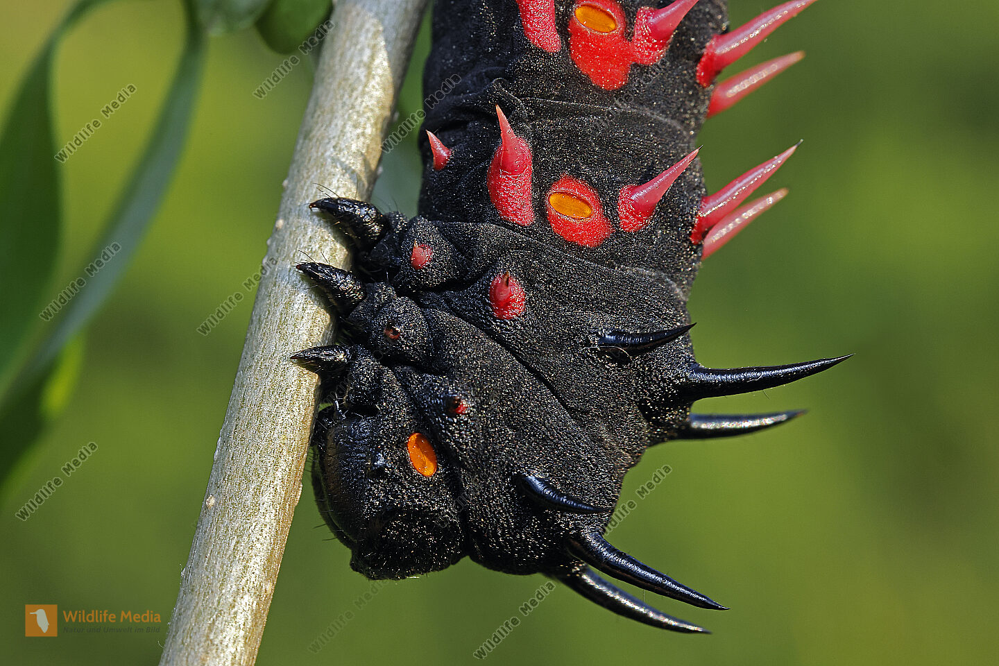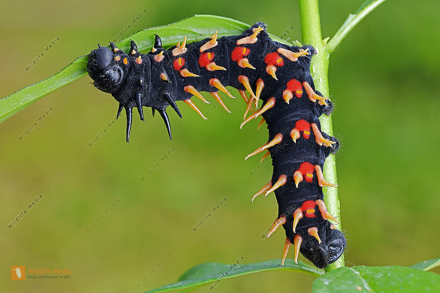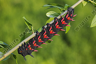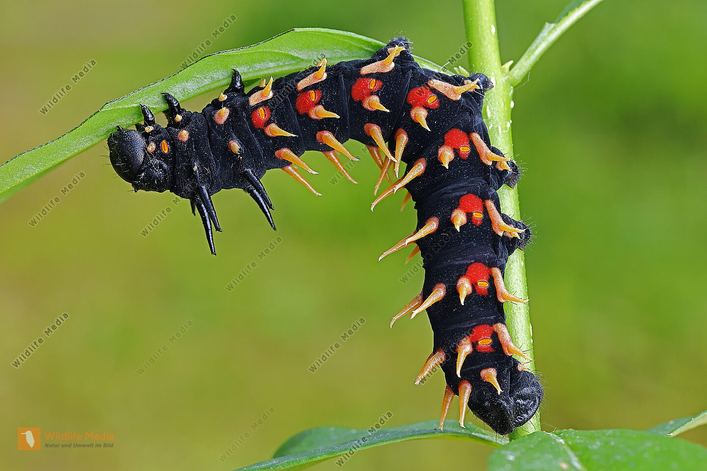Seidenspinner Bunaea alcione halberwachsene Raupe