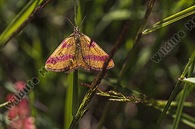 Ampfer-Purpurspanner sitzt an einem Grashalm