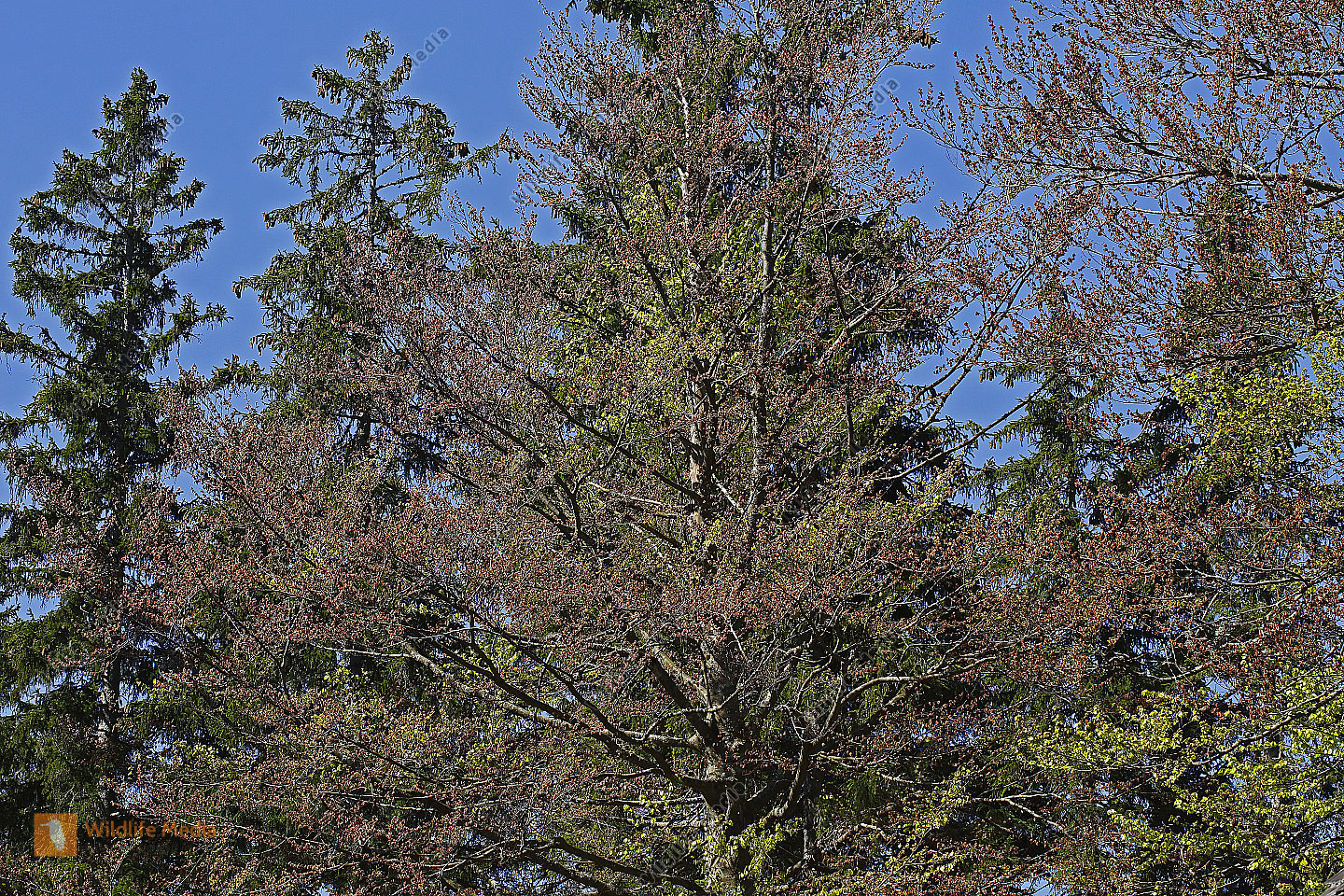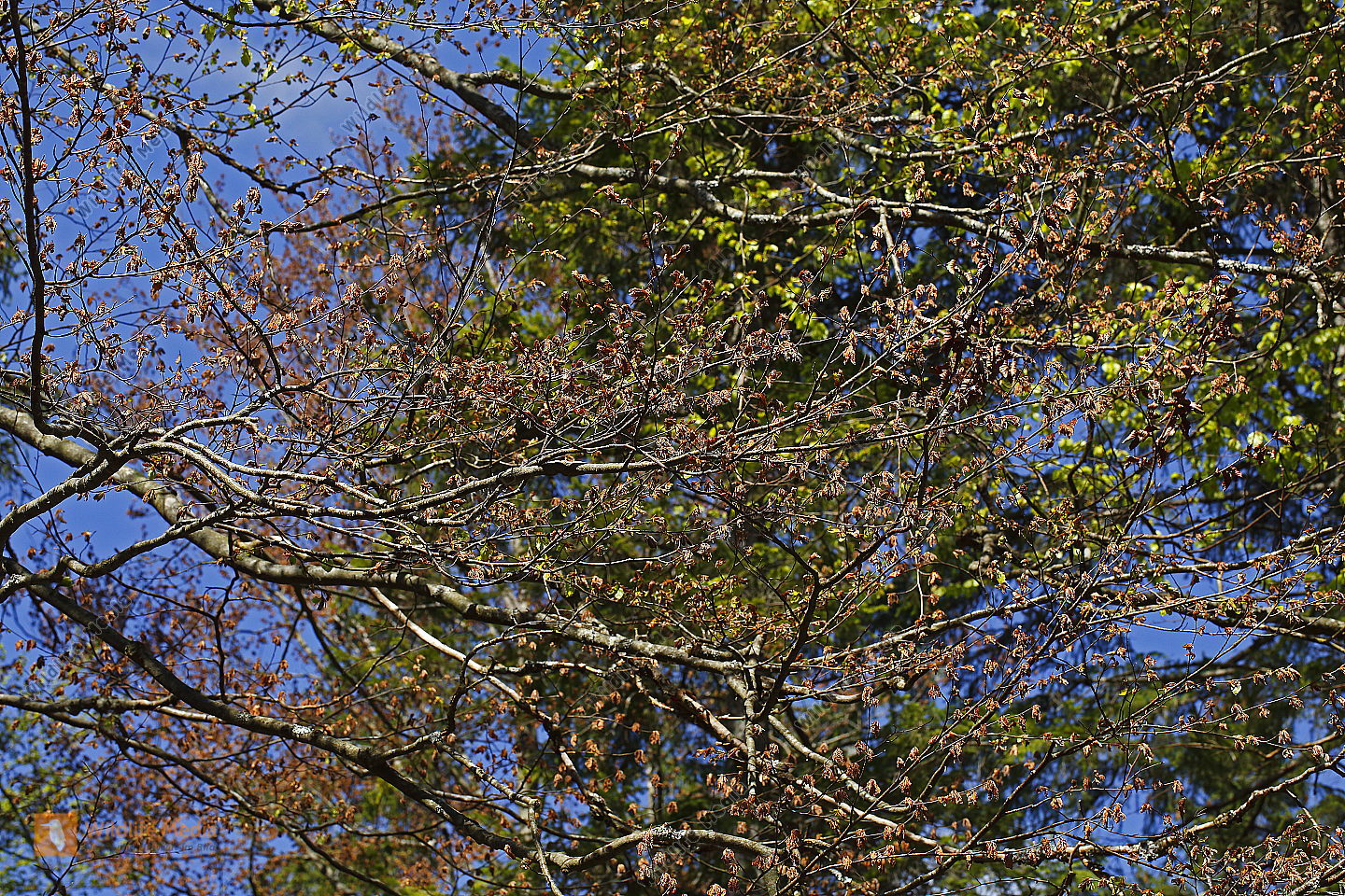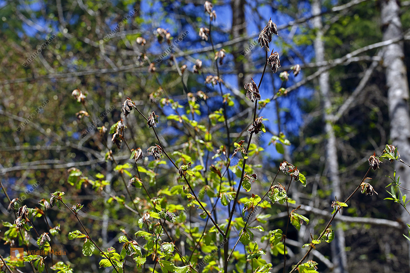 Ein Wintergoldhähnchen auf der Suche nach Nahrung