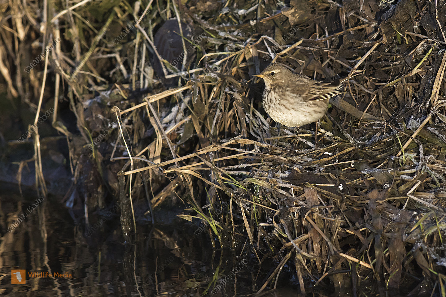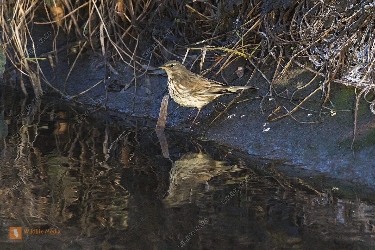 Ein Bergpieper am Bachufer
