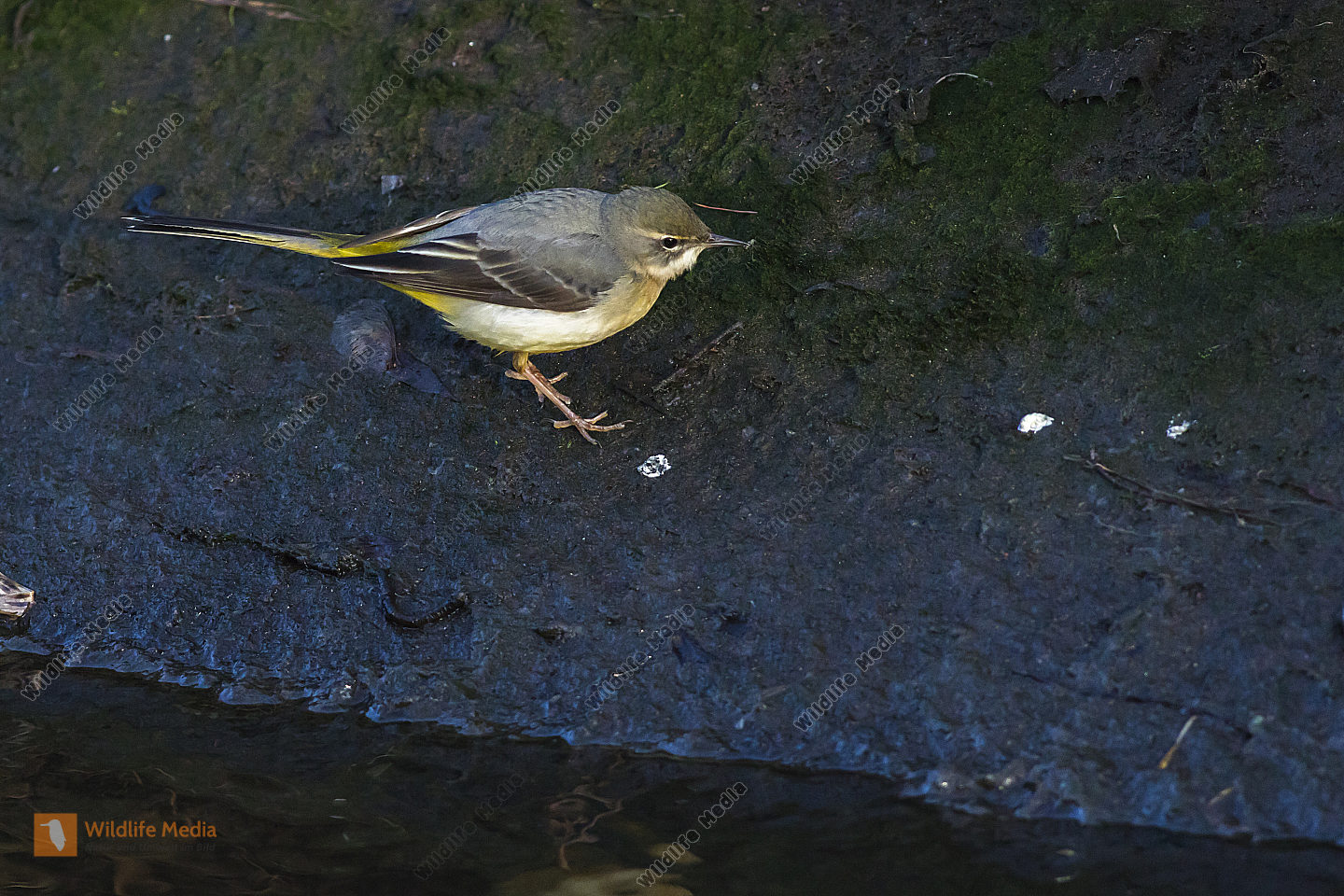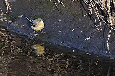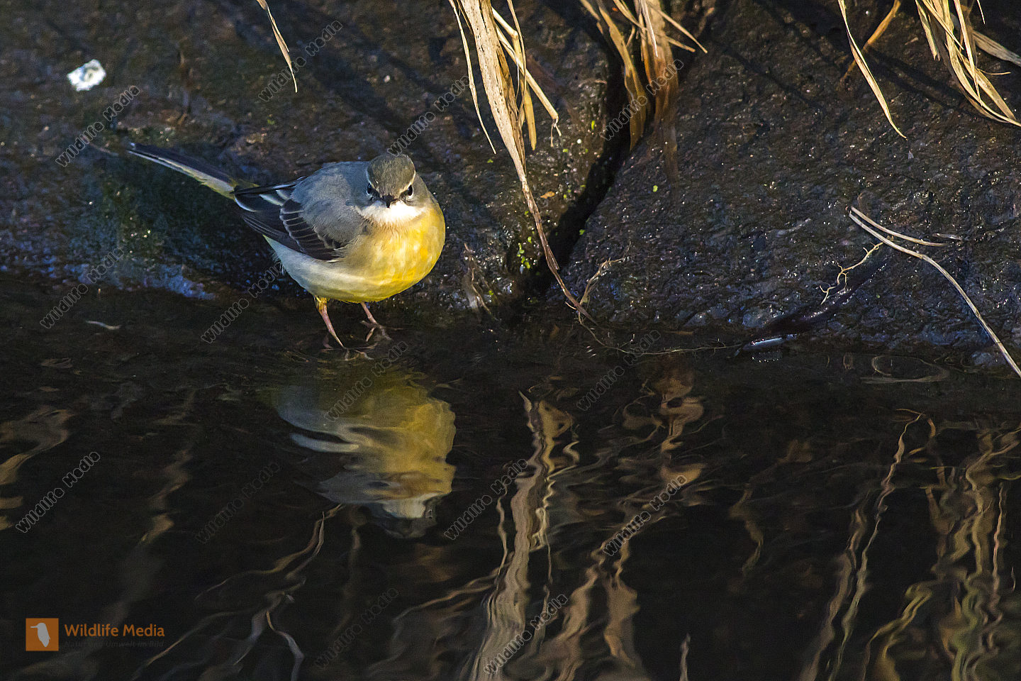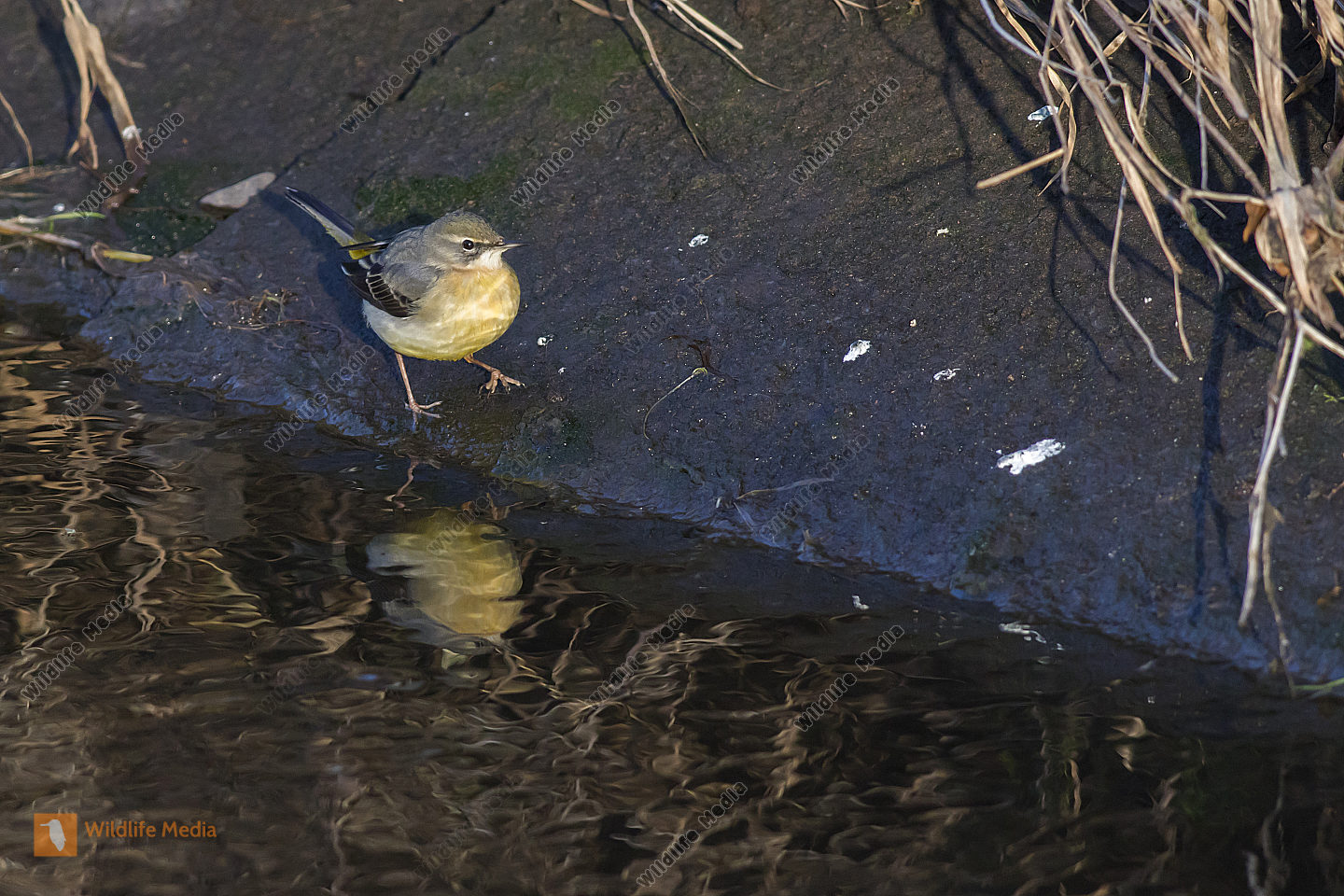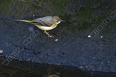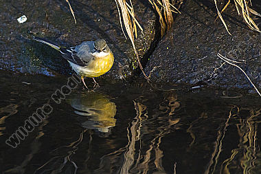 Gebirgsstelze Männchen Motacilla cinerea am Bachufer