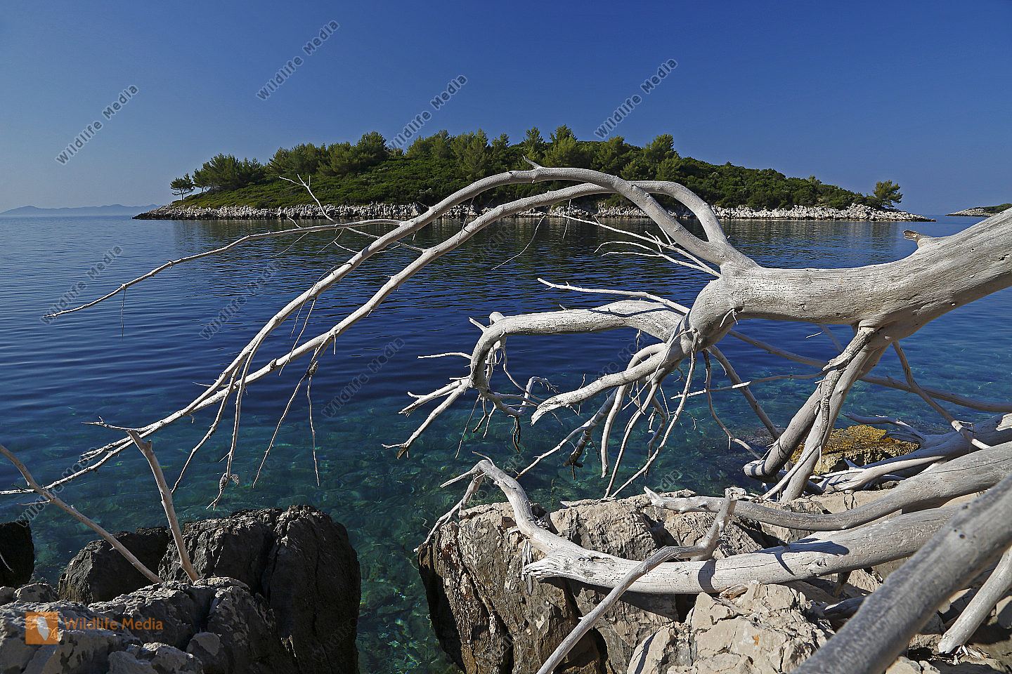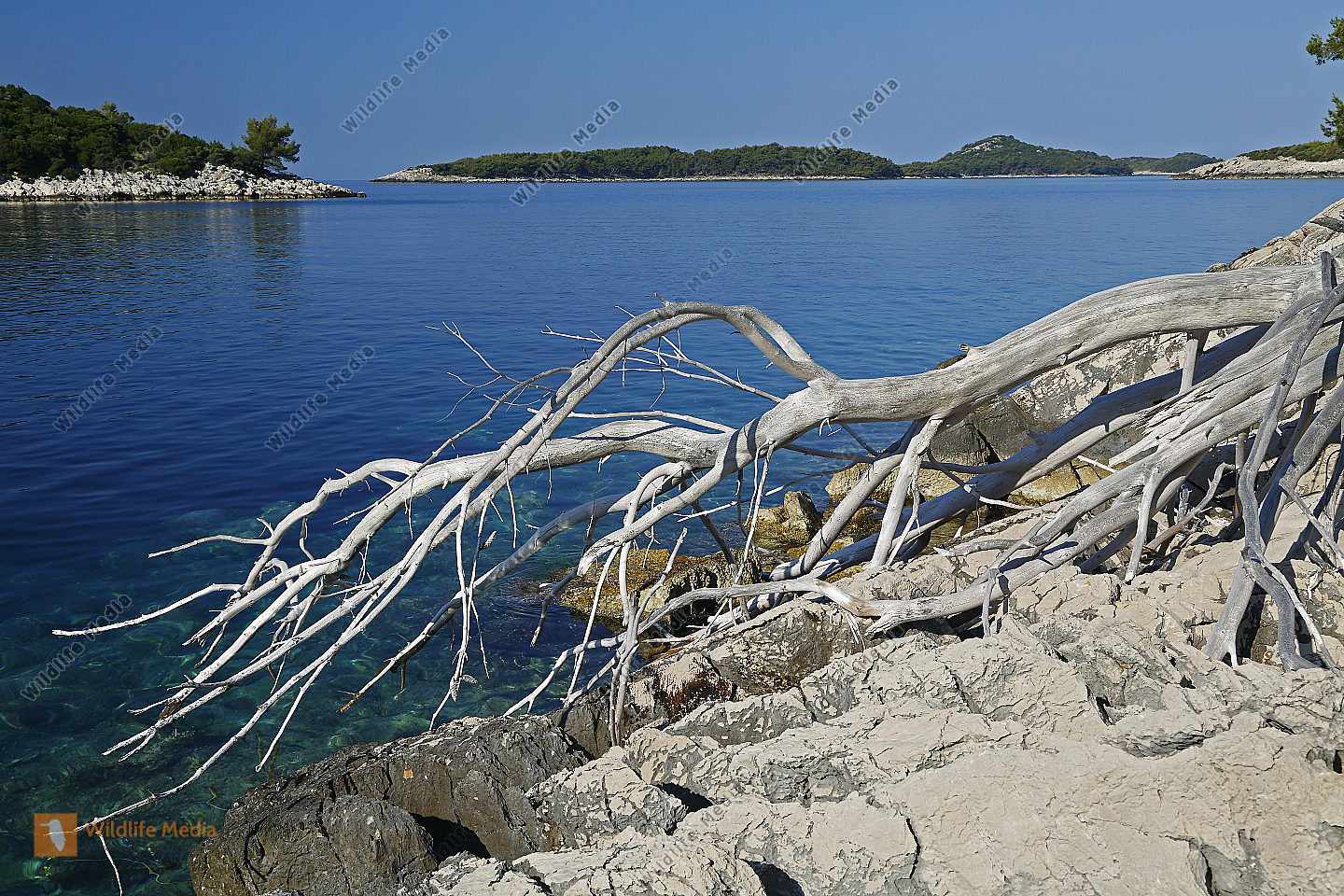 Sechs Silberreiher im Baum halten gemeinsam nach Nahrung Ausschau