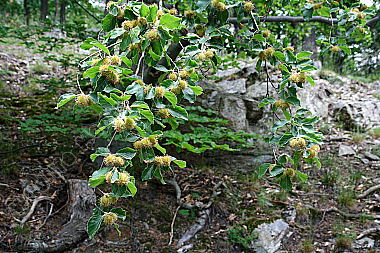 Baummarder Martes martes blickt aus einer Baumhöhle