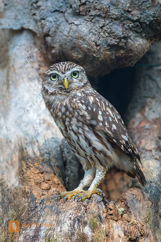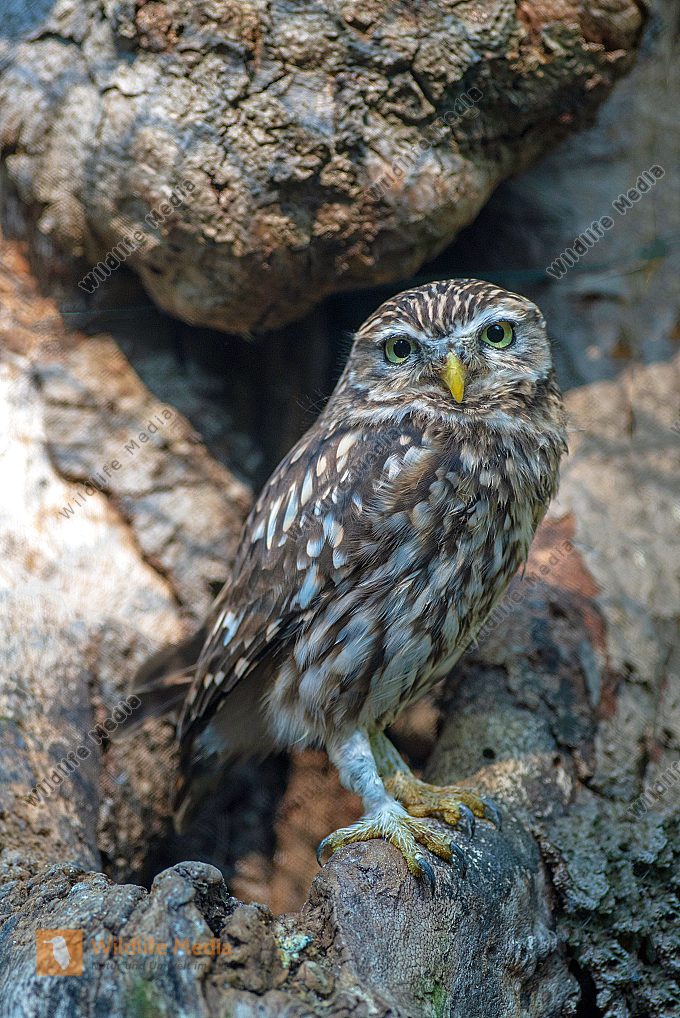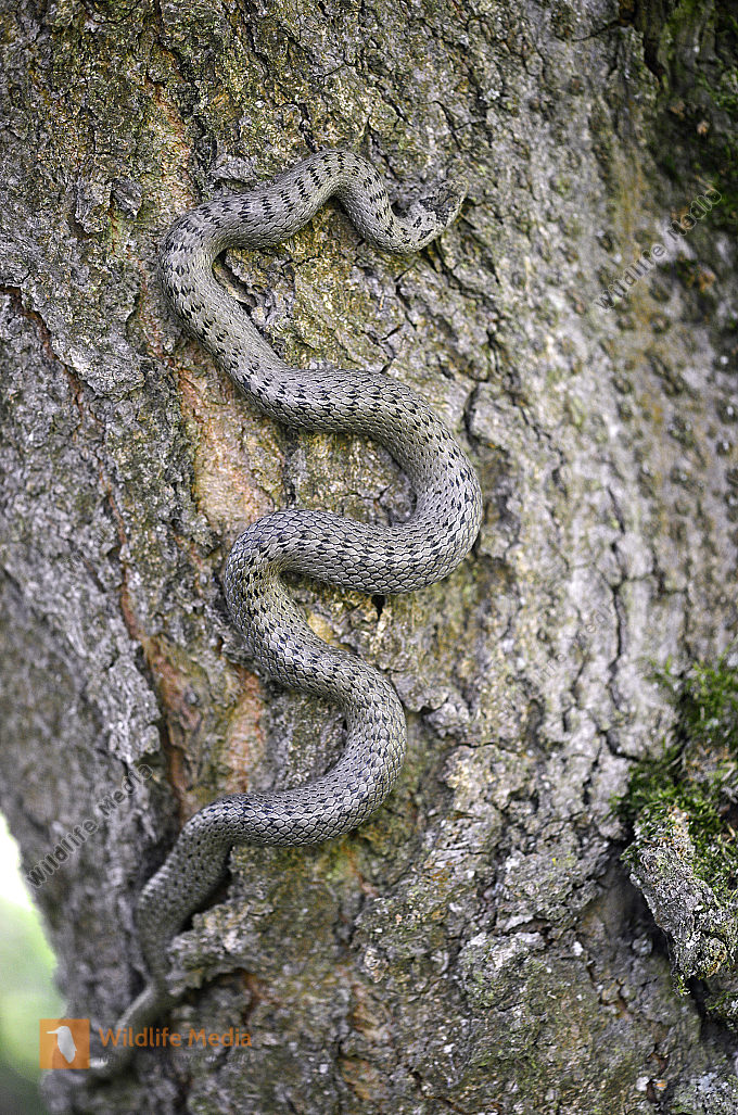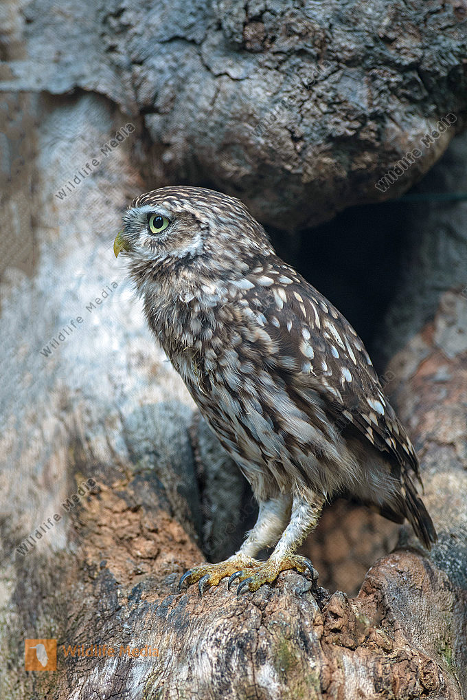 Ein Gartenbaumläufer auf Futtersuche am Baumstamm