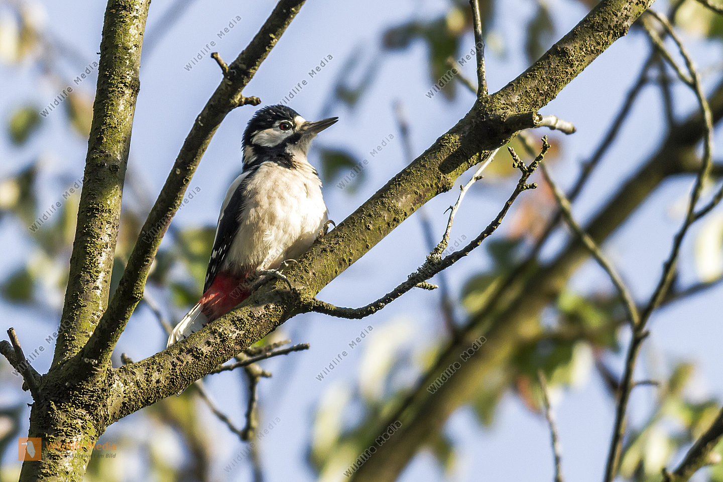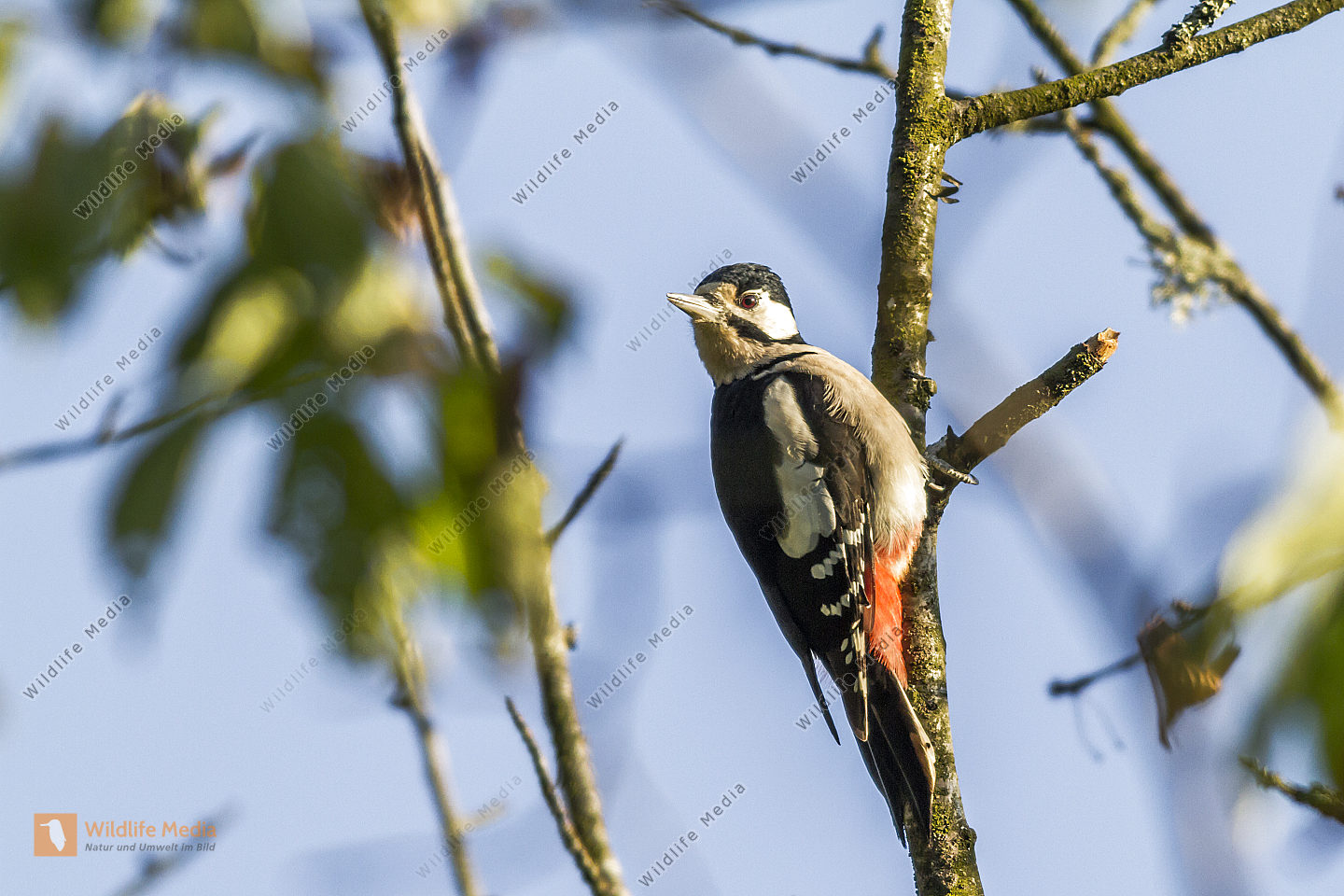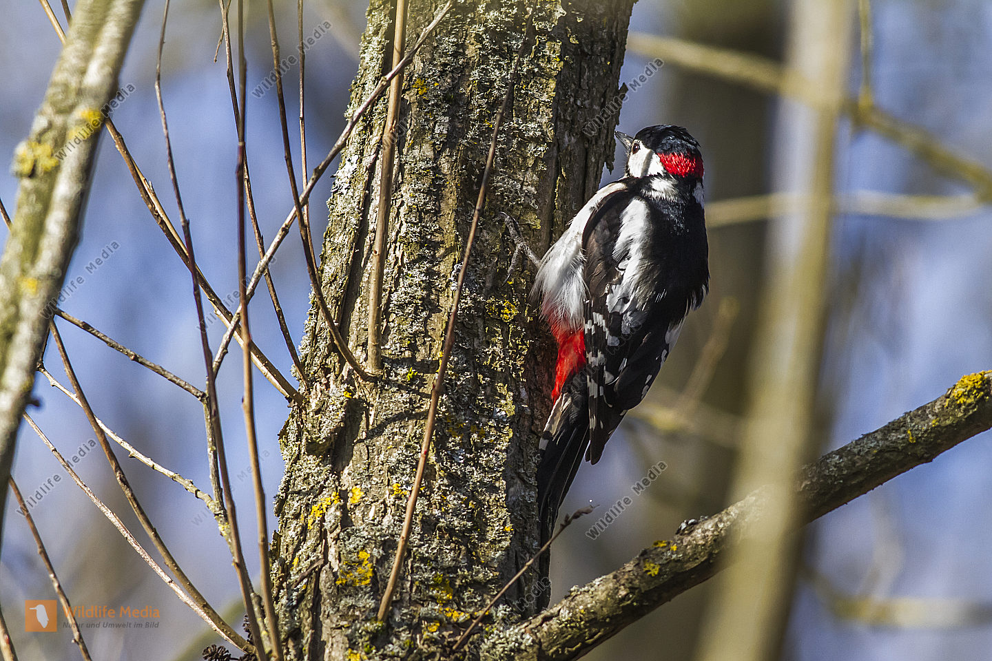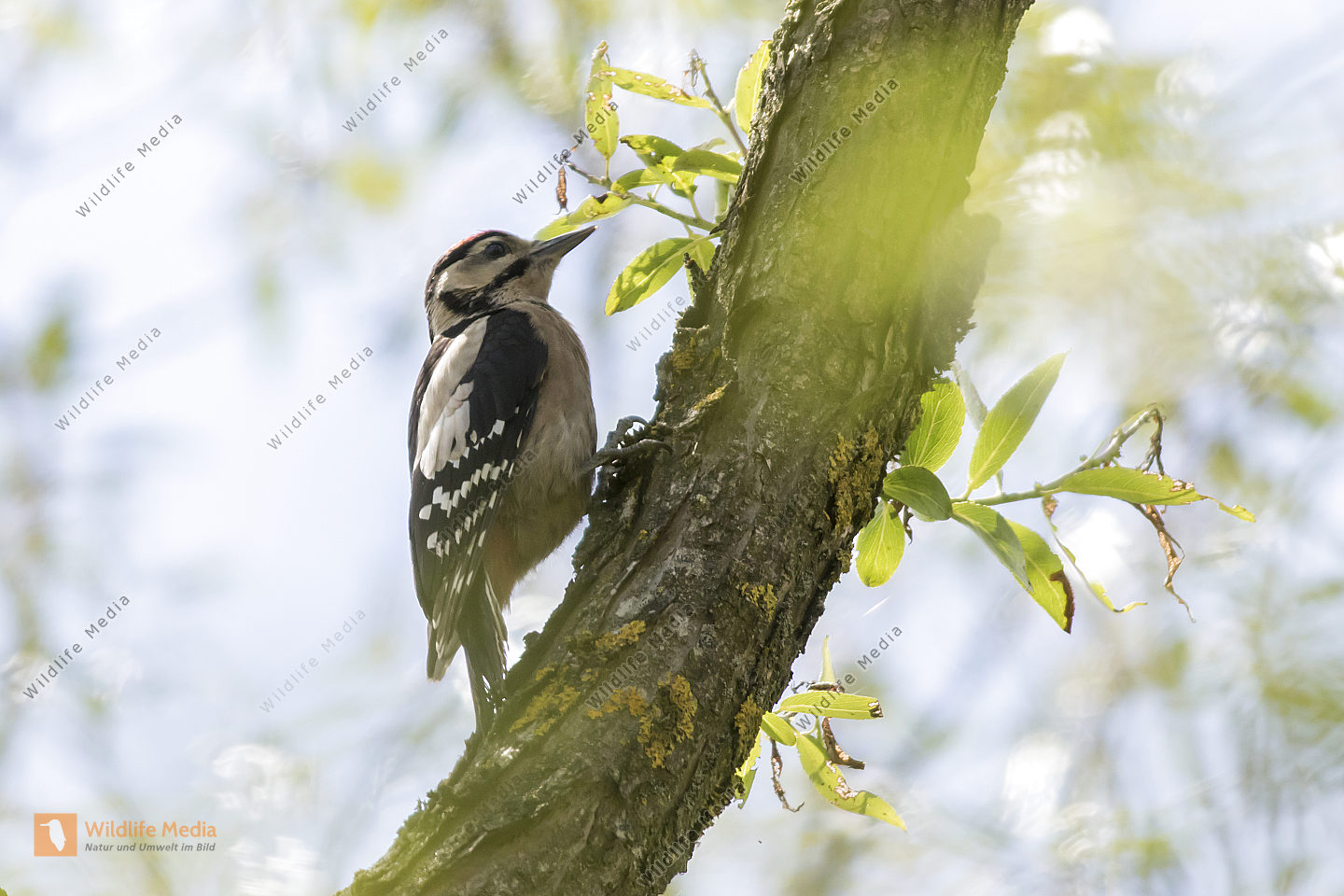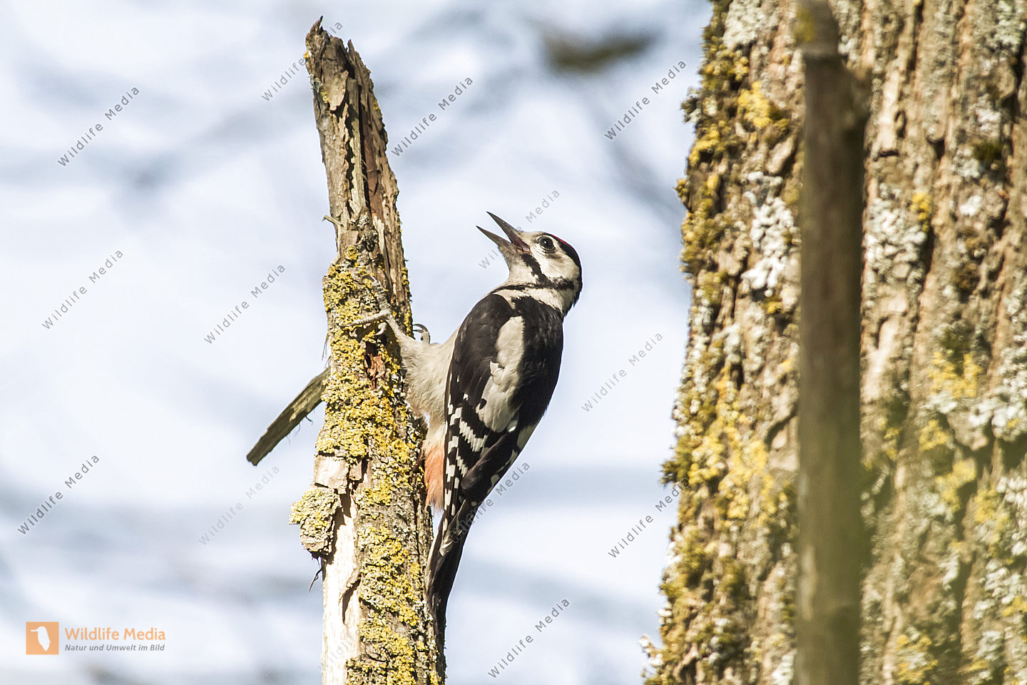 Zwei rivalisierende Buntspechte im Baumgeäst
