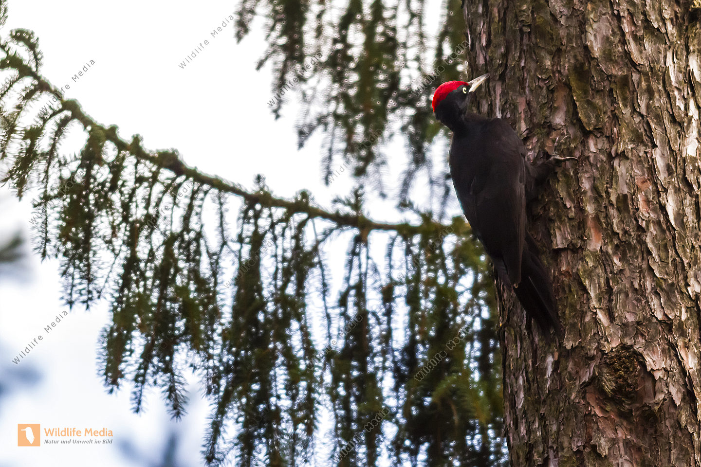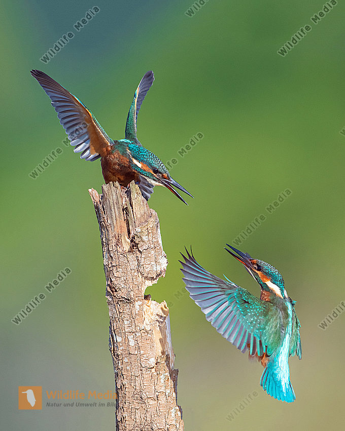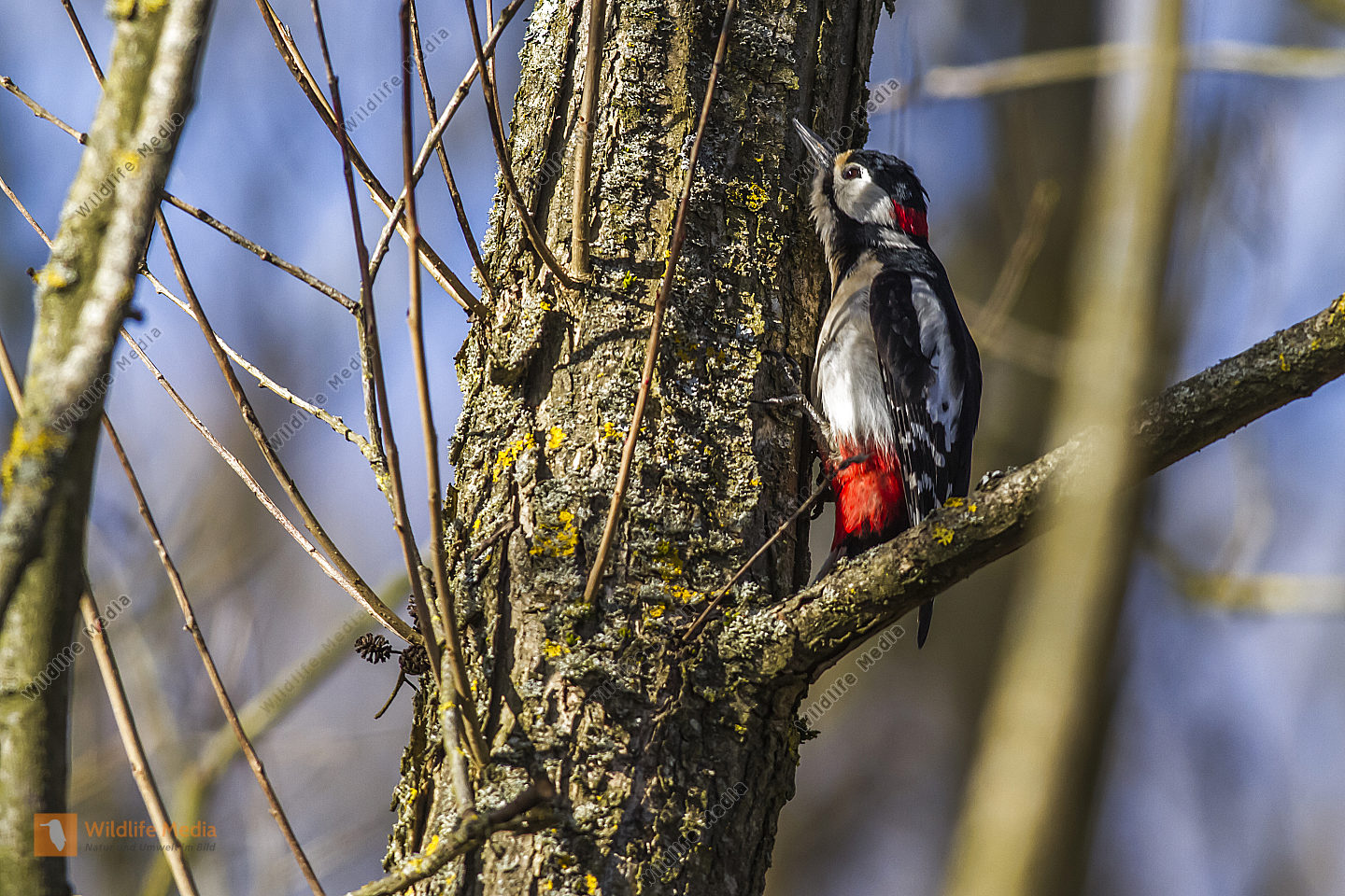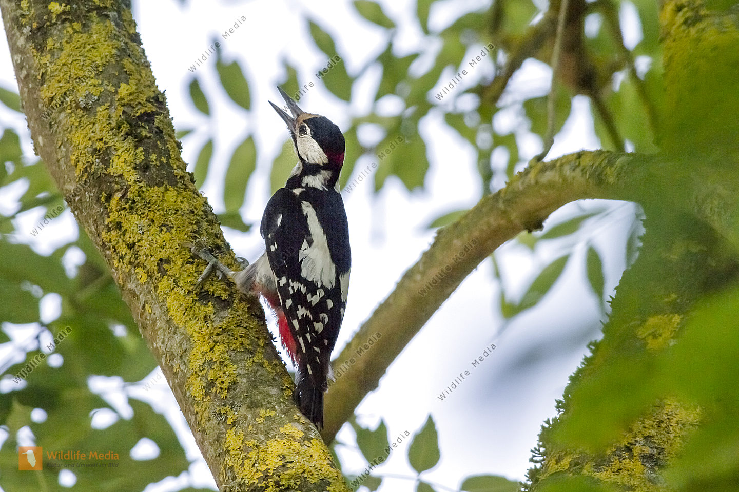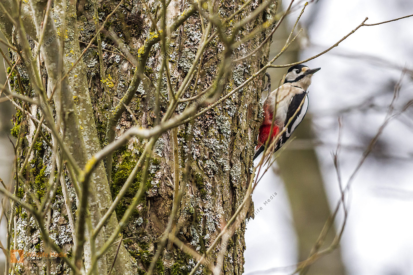 Zwei rivalisierende Buntspechte im Baumgeäst
