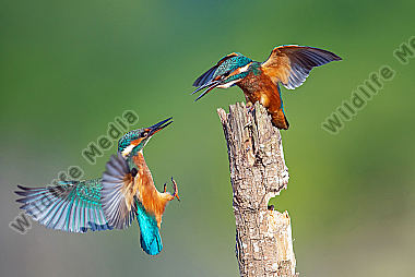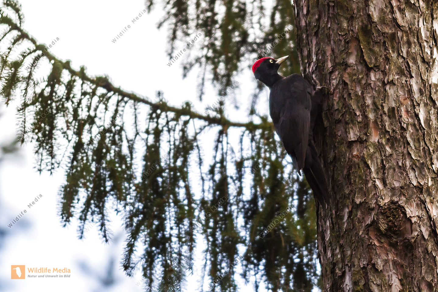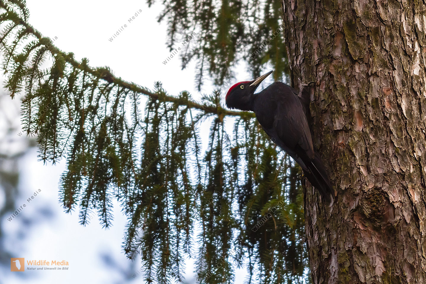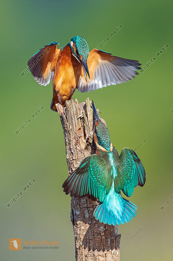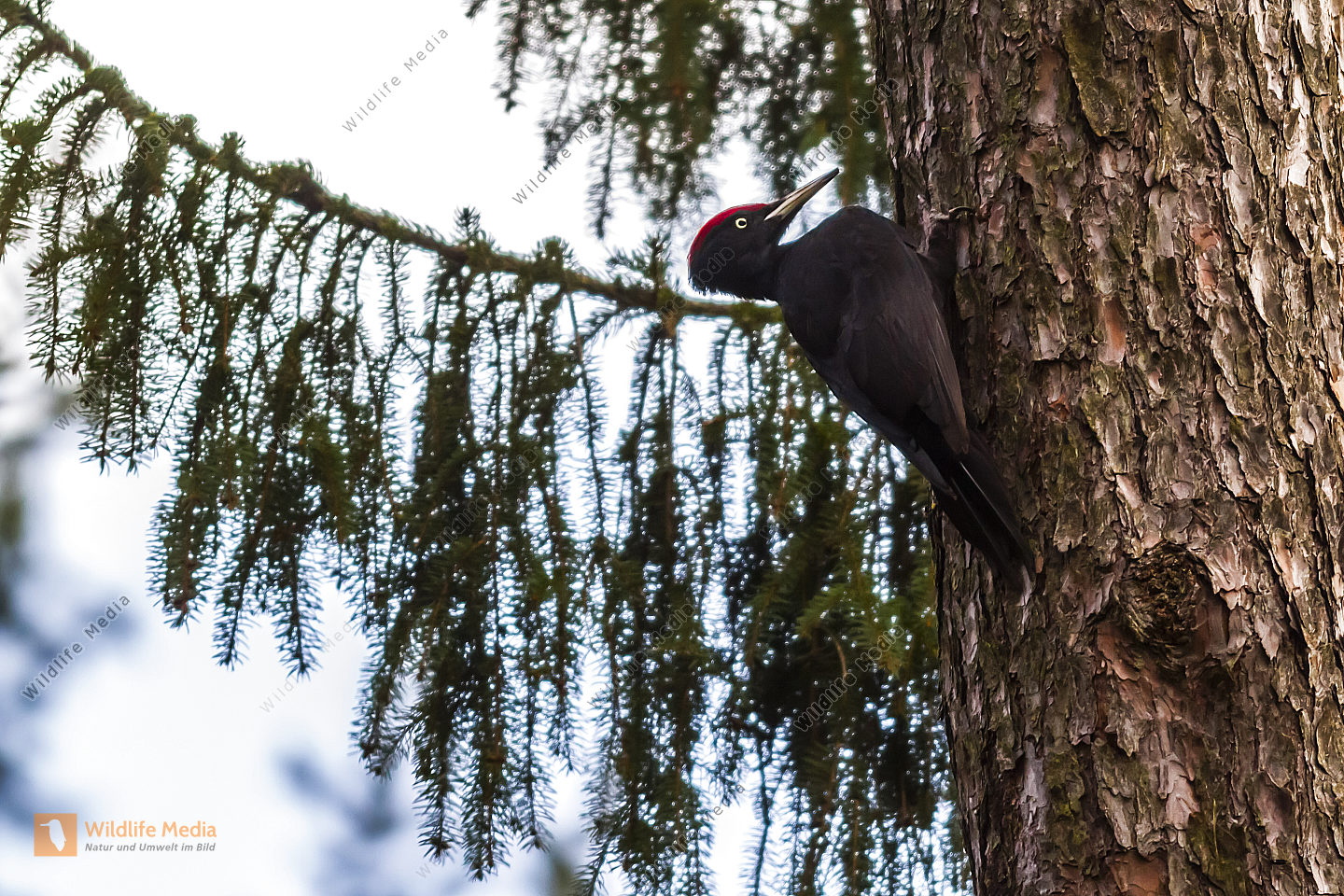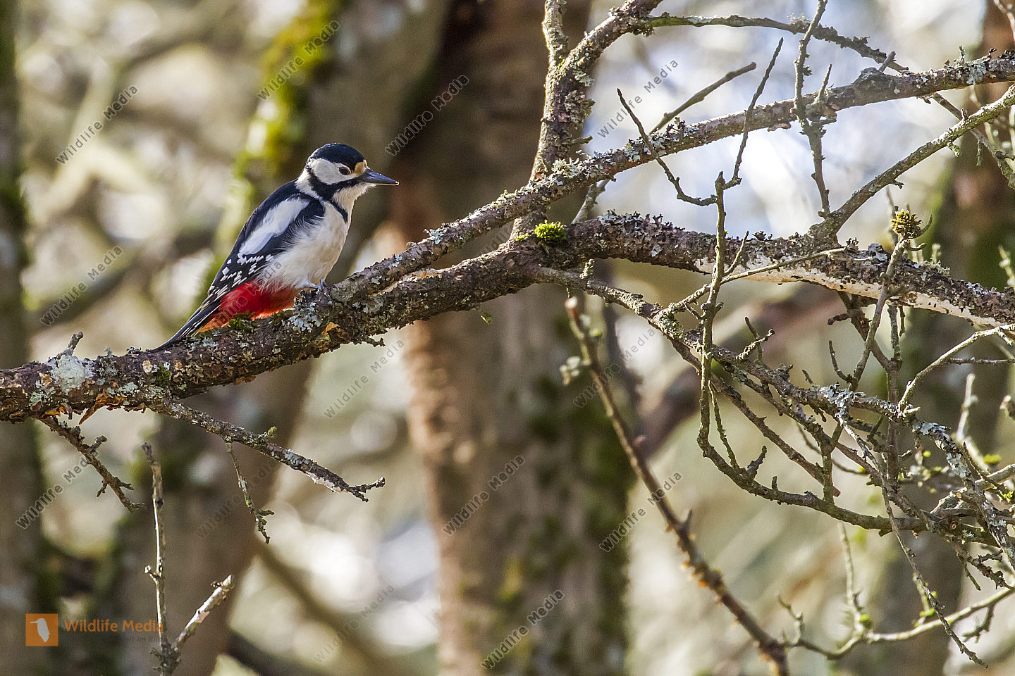 Zwei rivalisierende Buntspechte im Baumgeäst