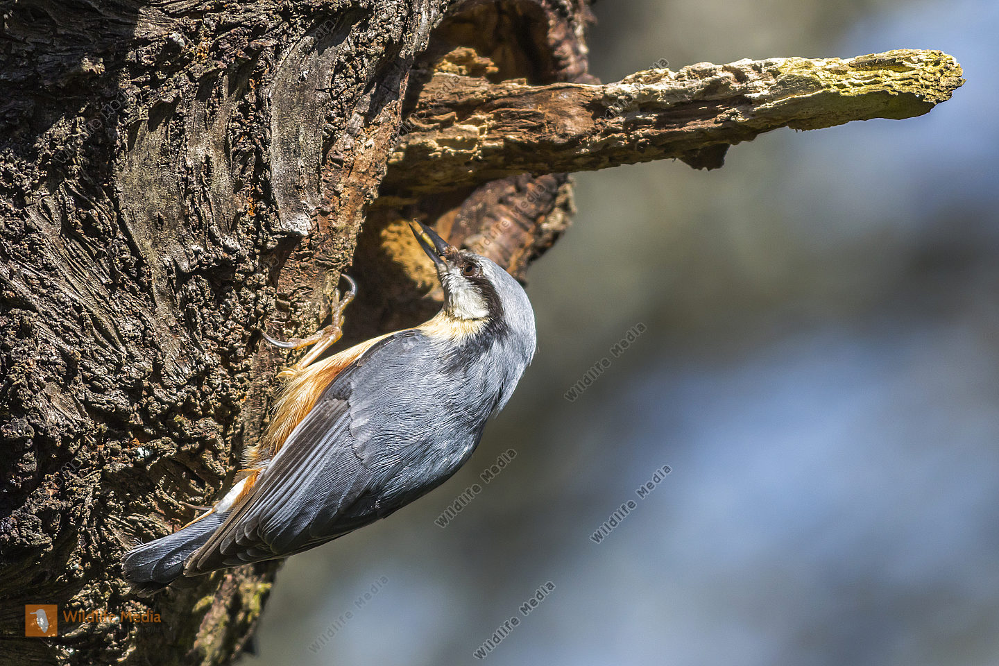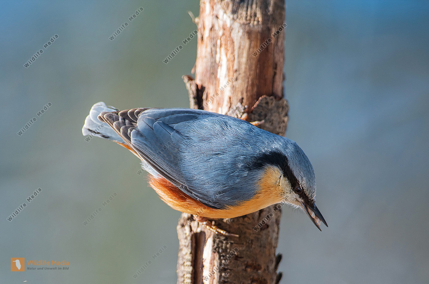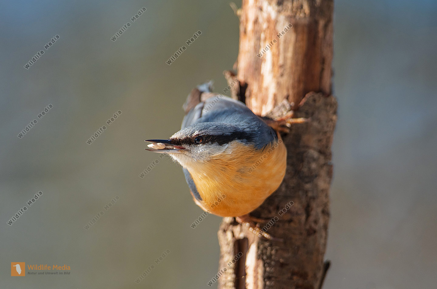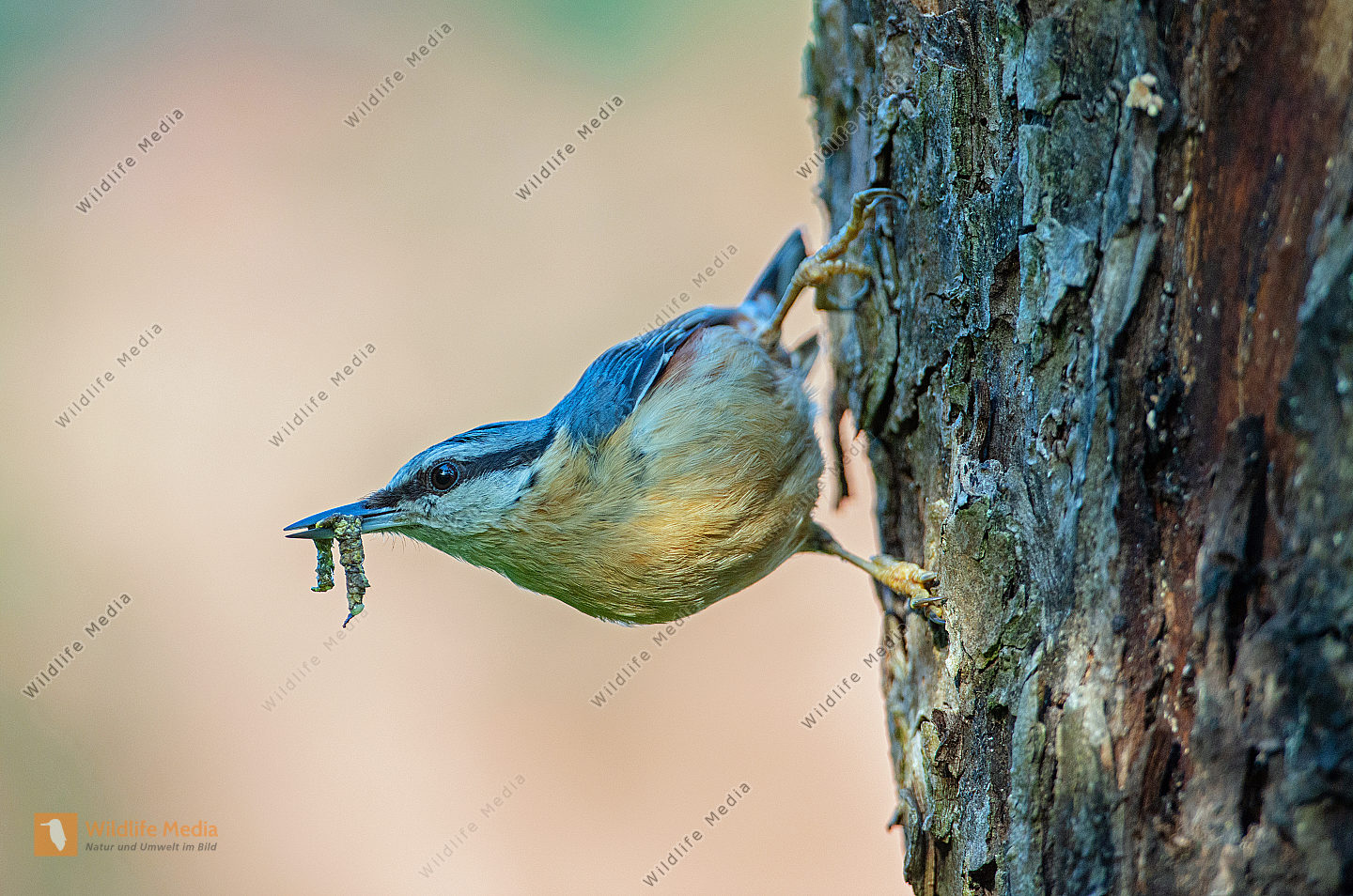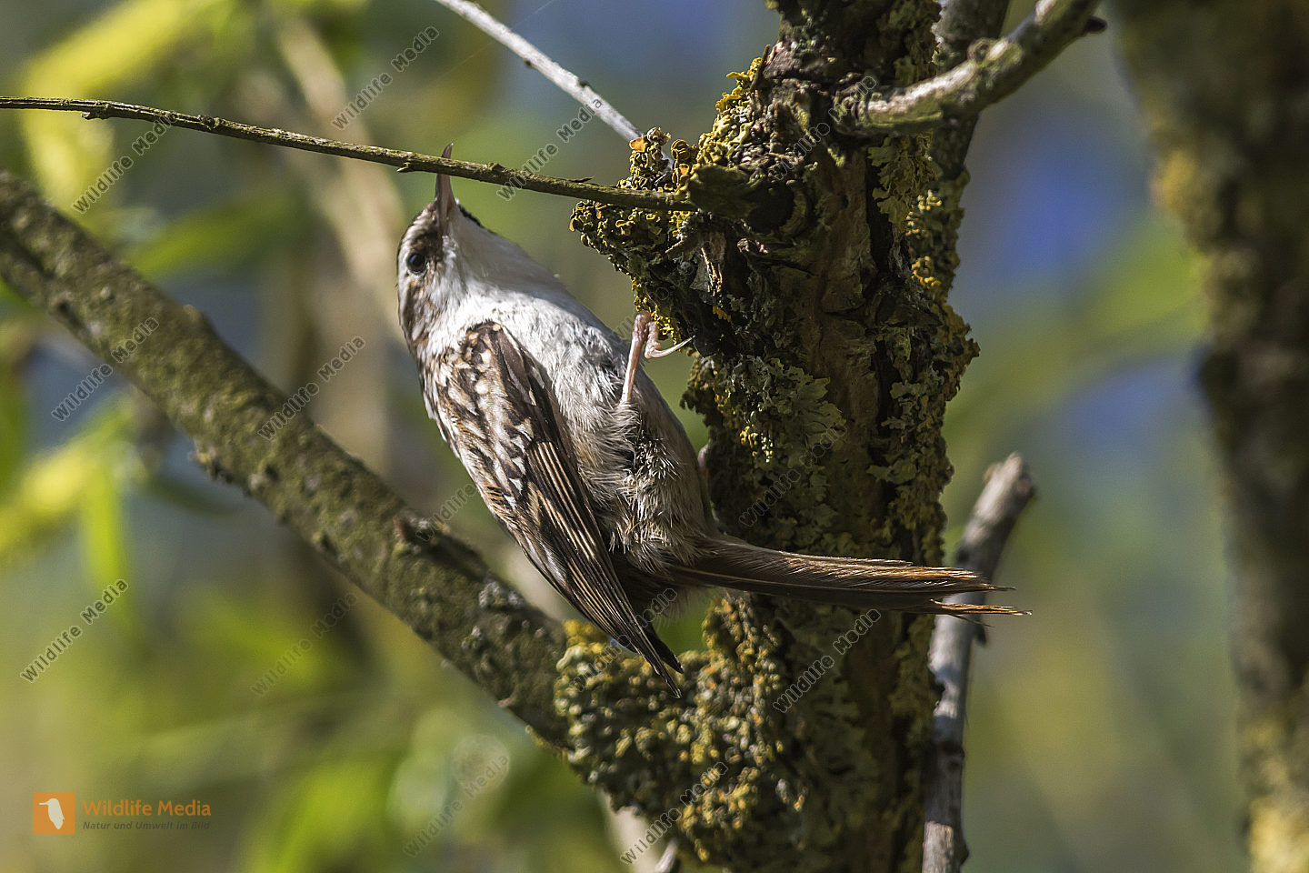 Ein Waldbaumläufer am Baumstamm auf Futtersuche