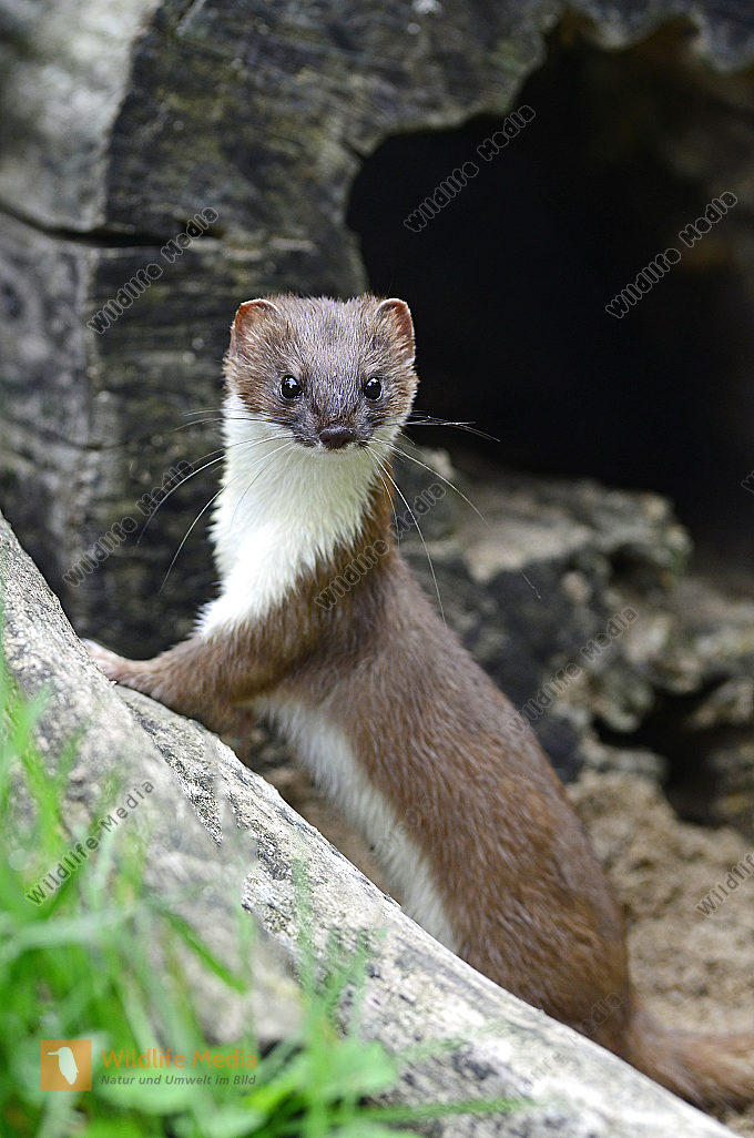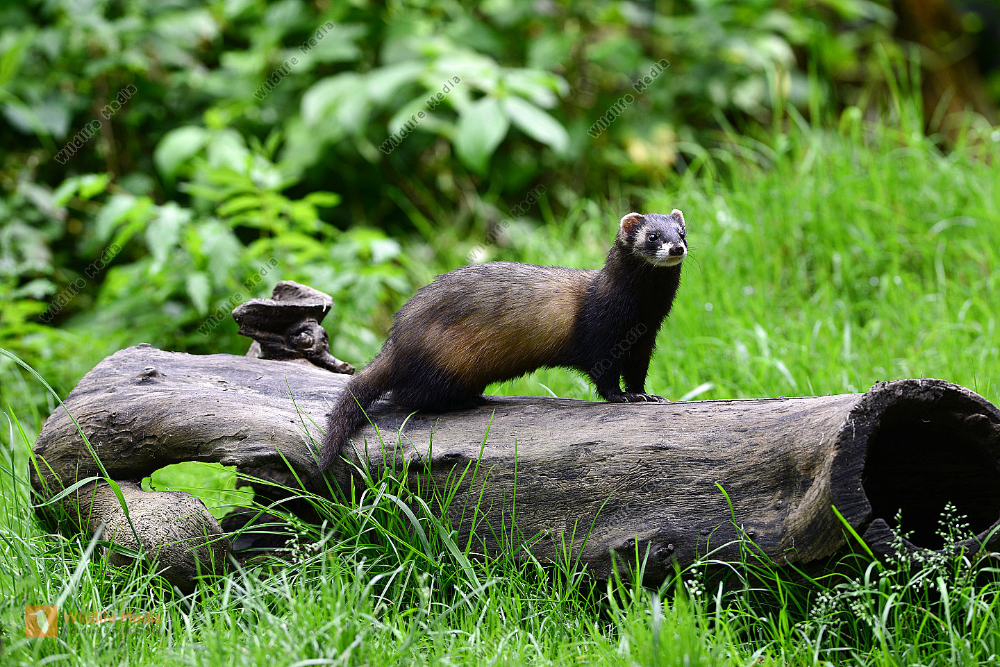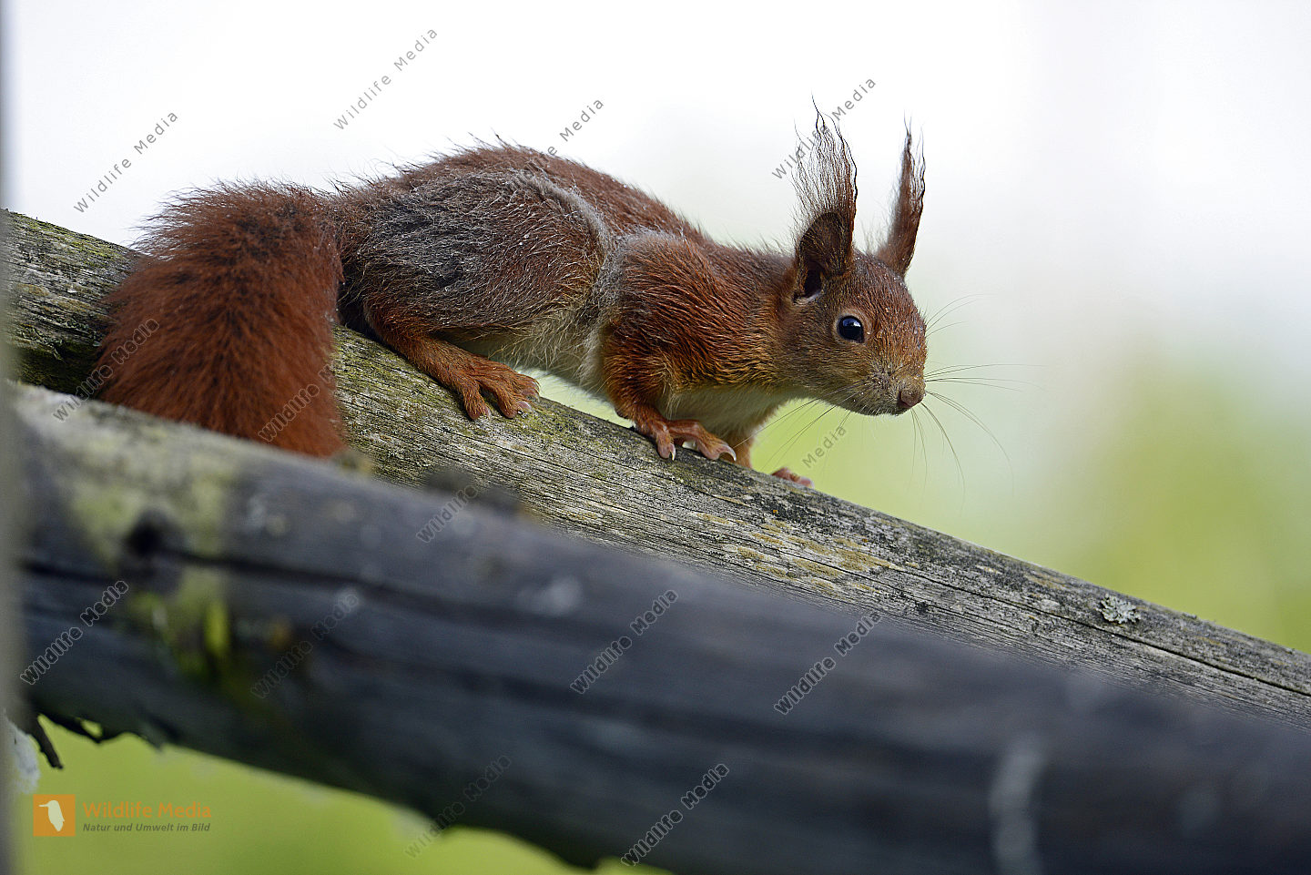Fuchs Vulpes vulpes auf einem Baumstamm