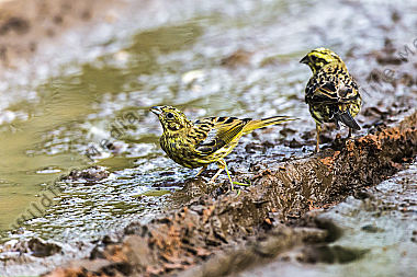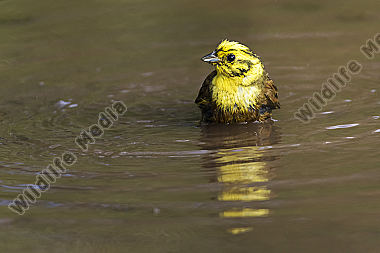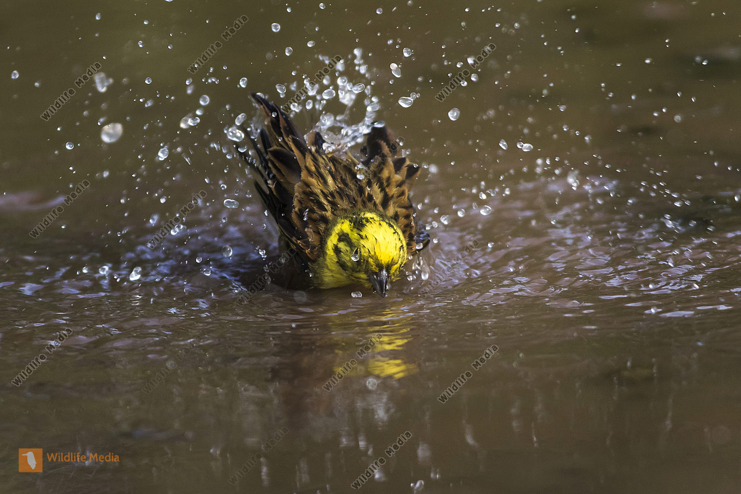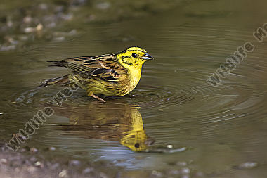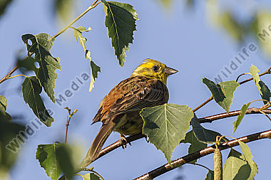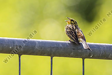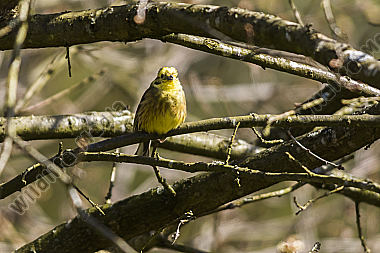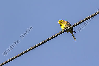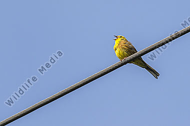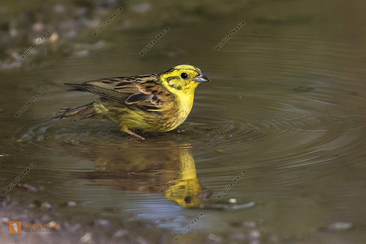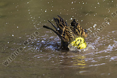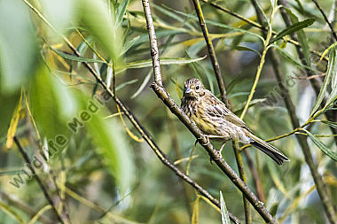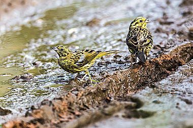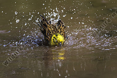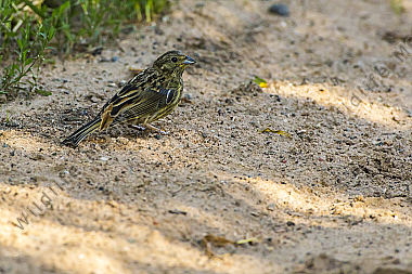 Eine Goldammer sucht auf einem Acker nach Nahrung