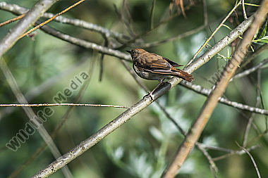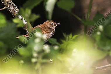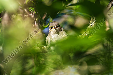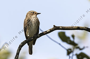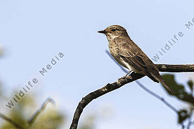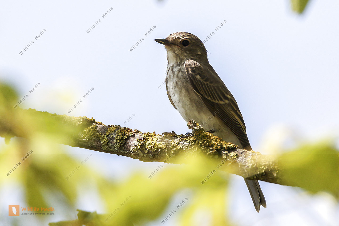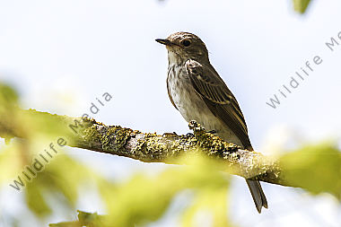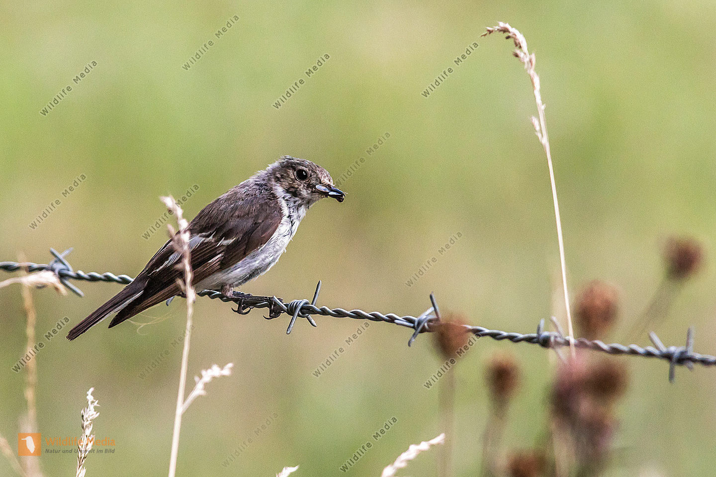 Ein Trauerschnäpper auf Nahrungssuche am Rand einer Wiese
