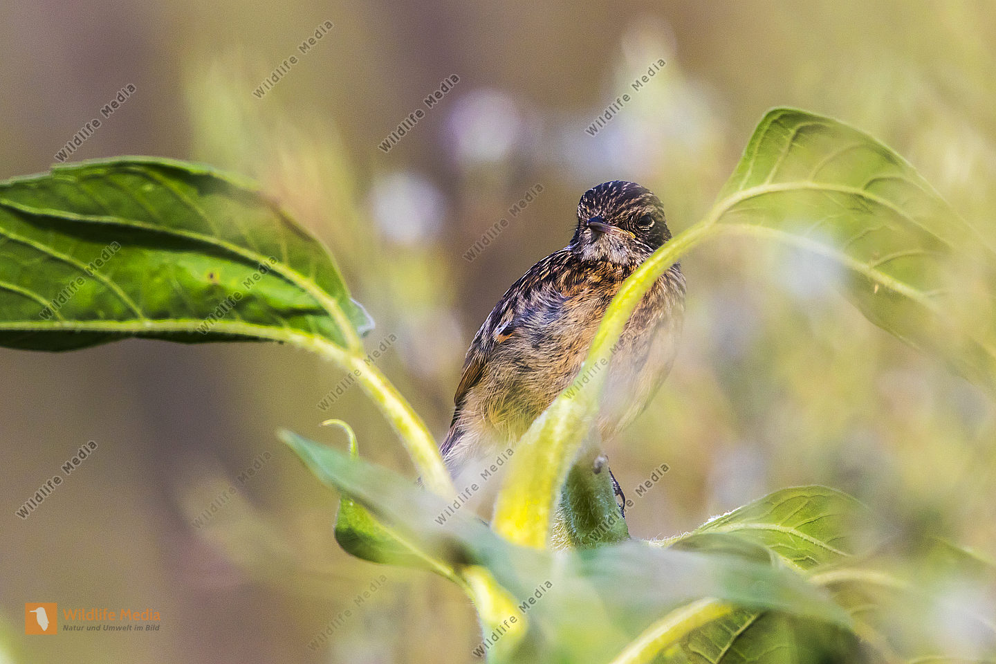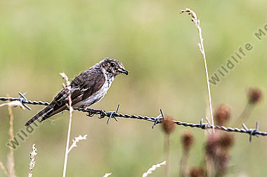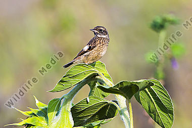 Ein Schwarzkehlchen auf seiner Sitzwarte