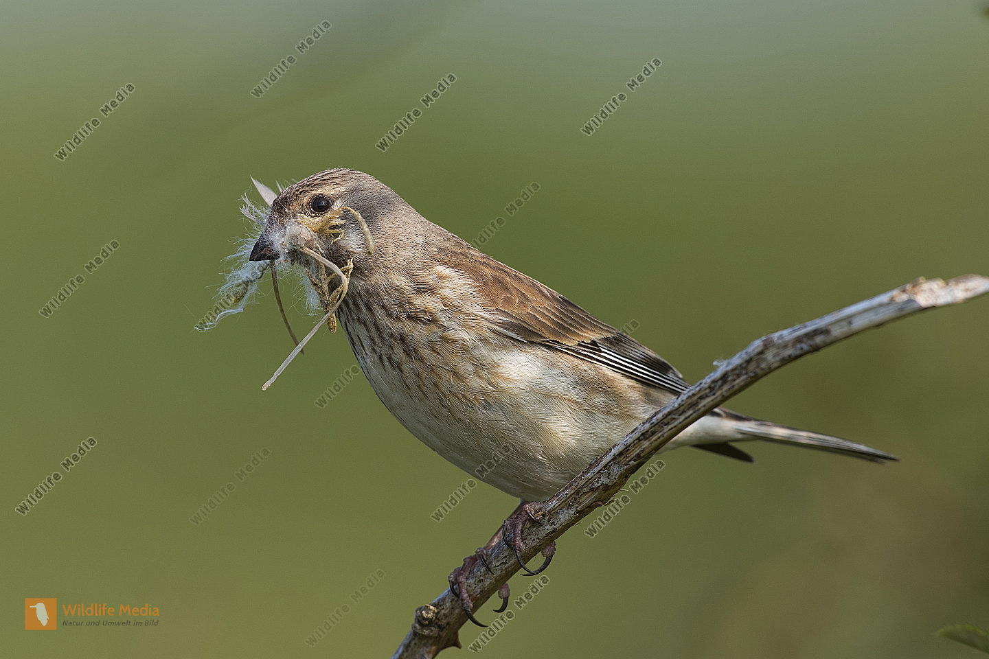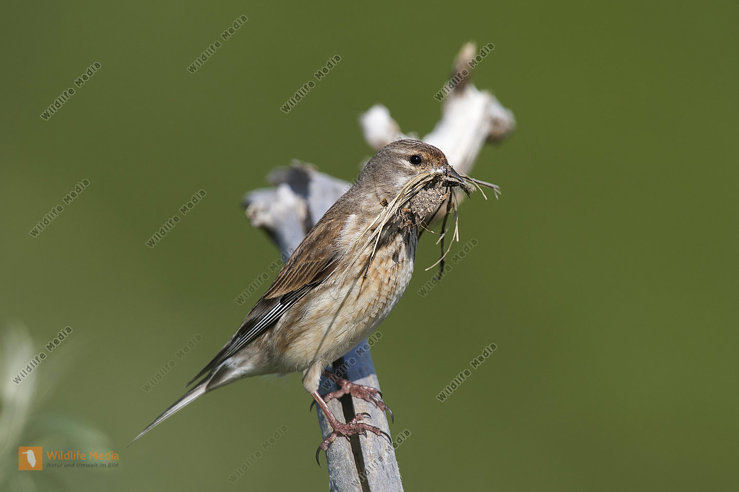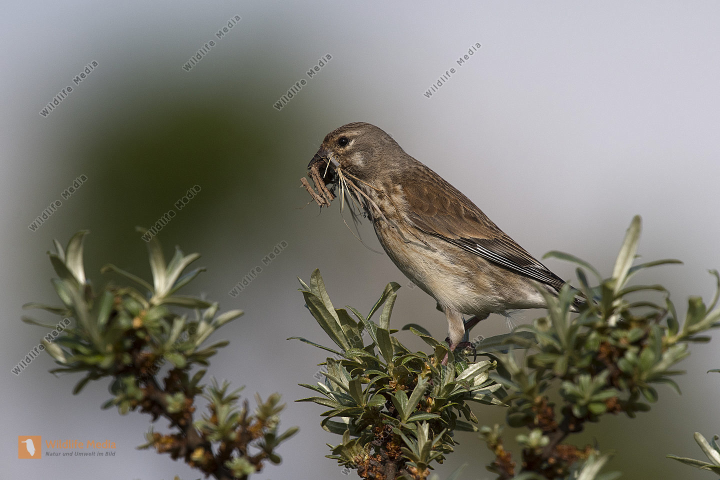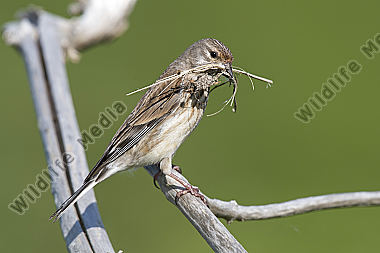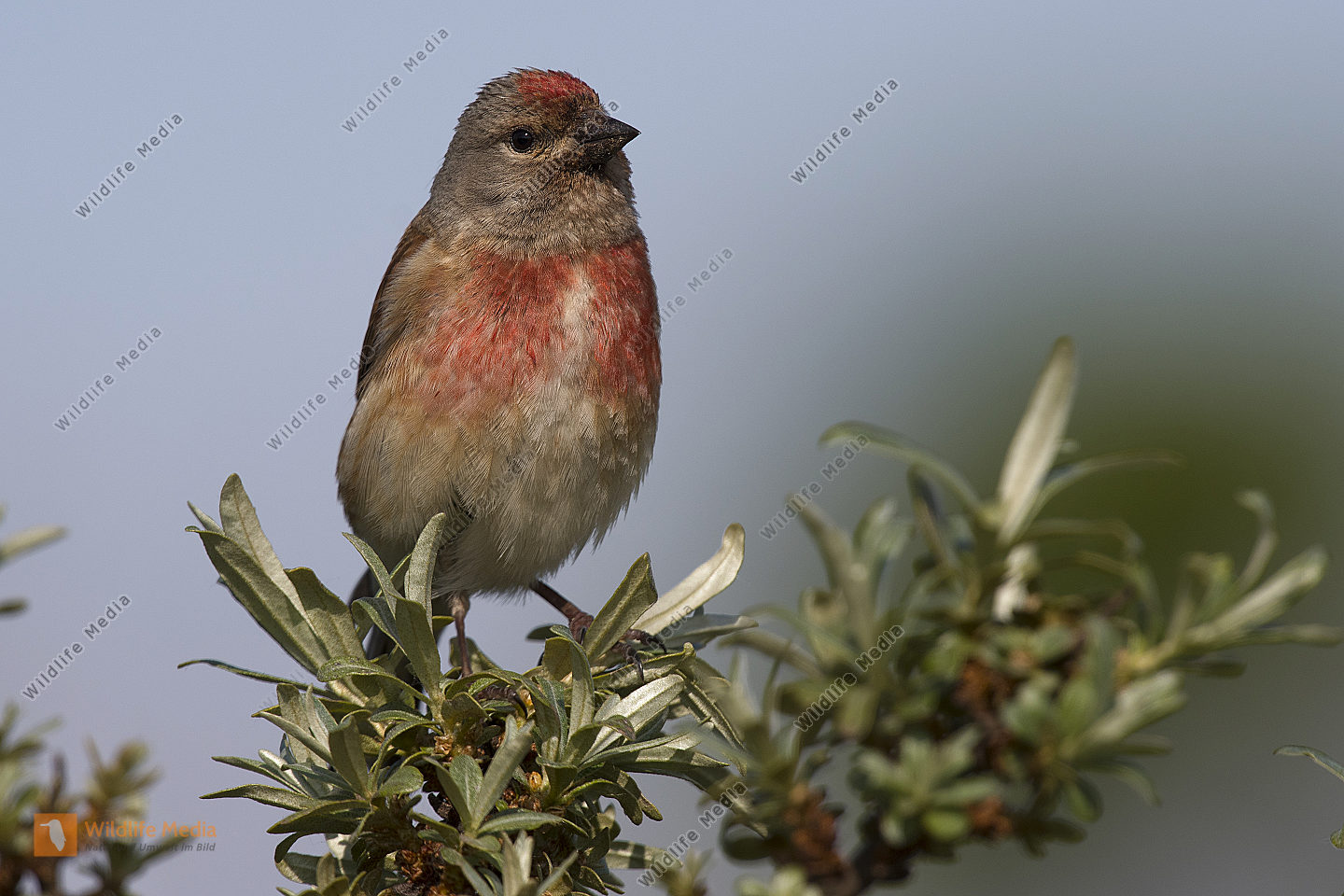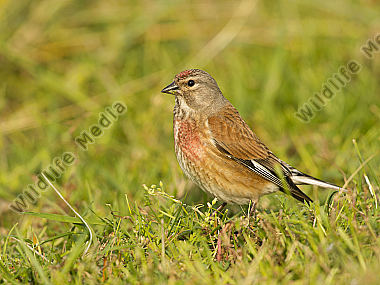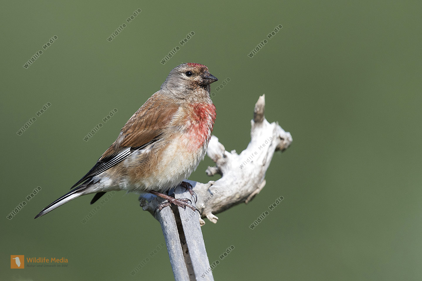 Ein Bluthänfling auf einem Getreidefeld bei Utweiler