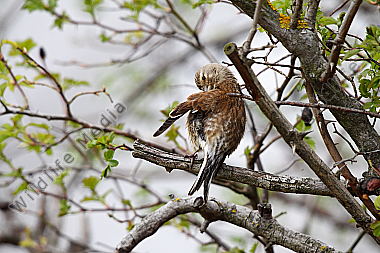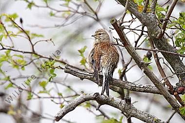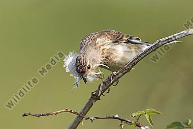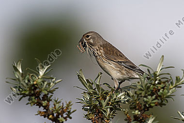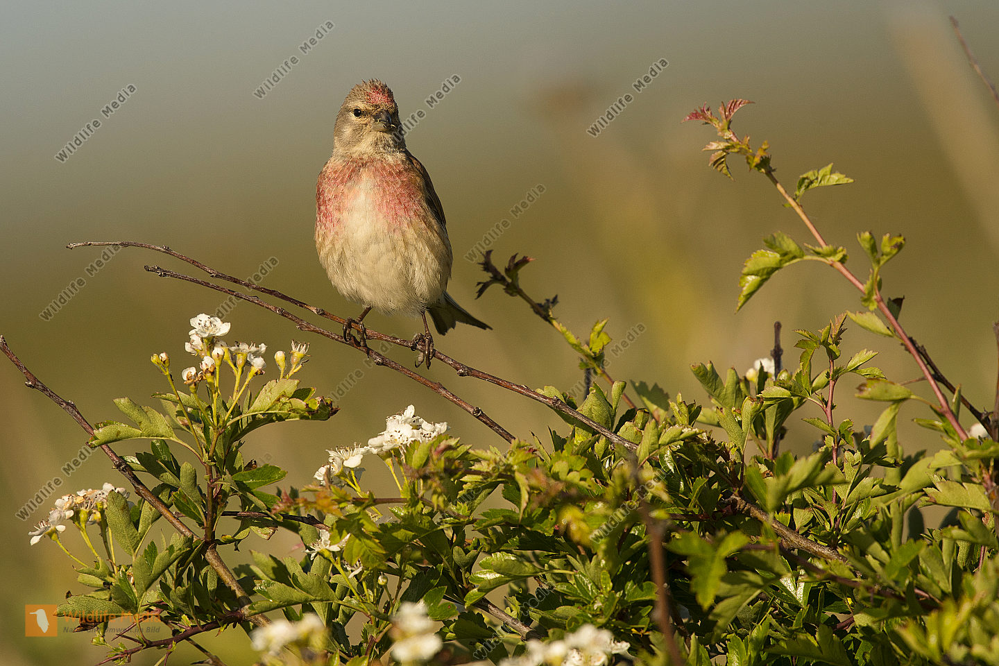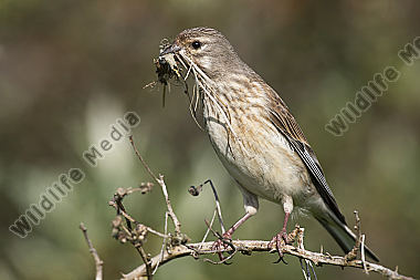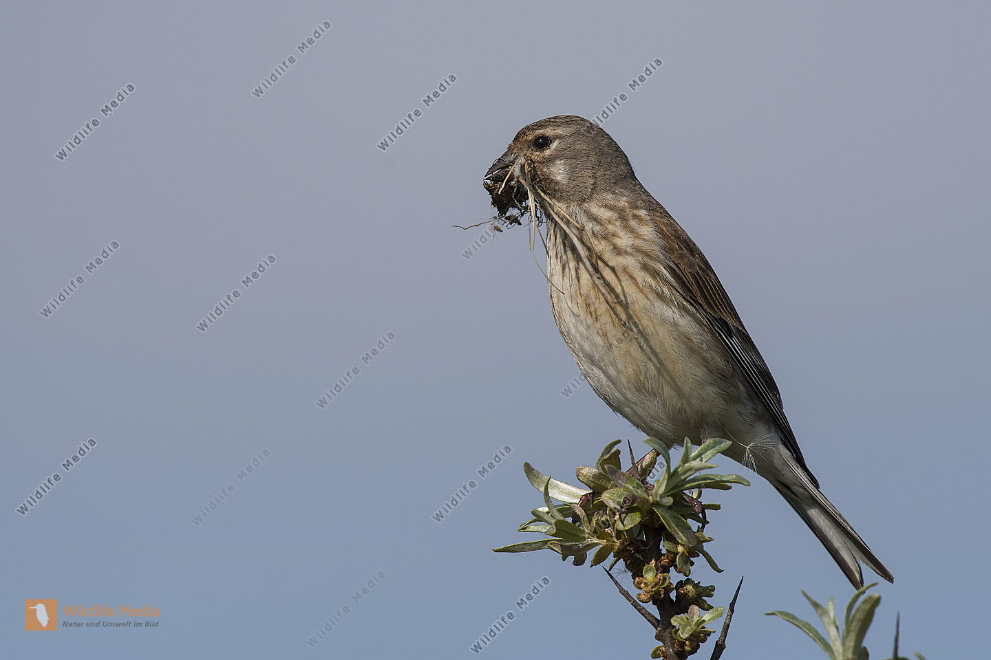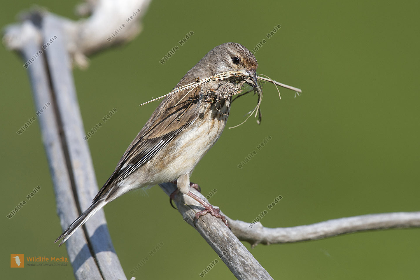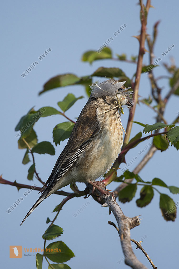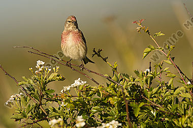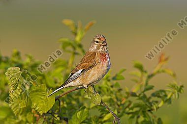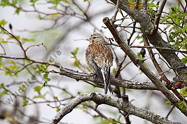 Ein Bluthänfling auf einem Getreidefeld bei Utweiler