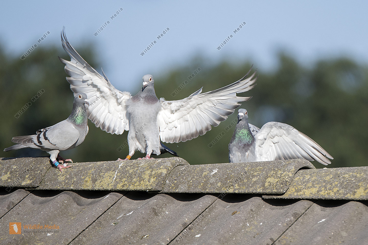 Brieftauben auf einem Dach