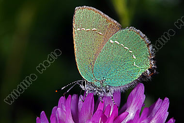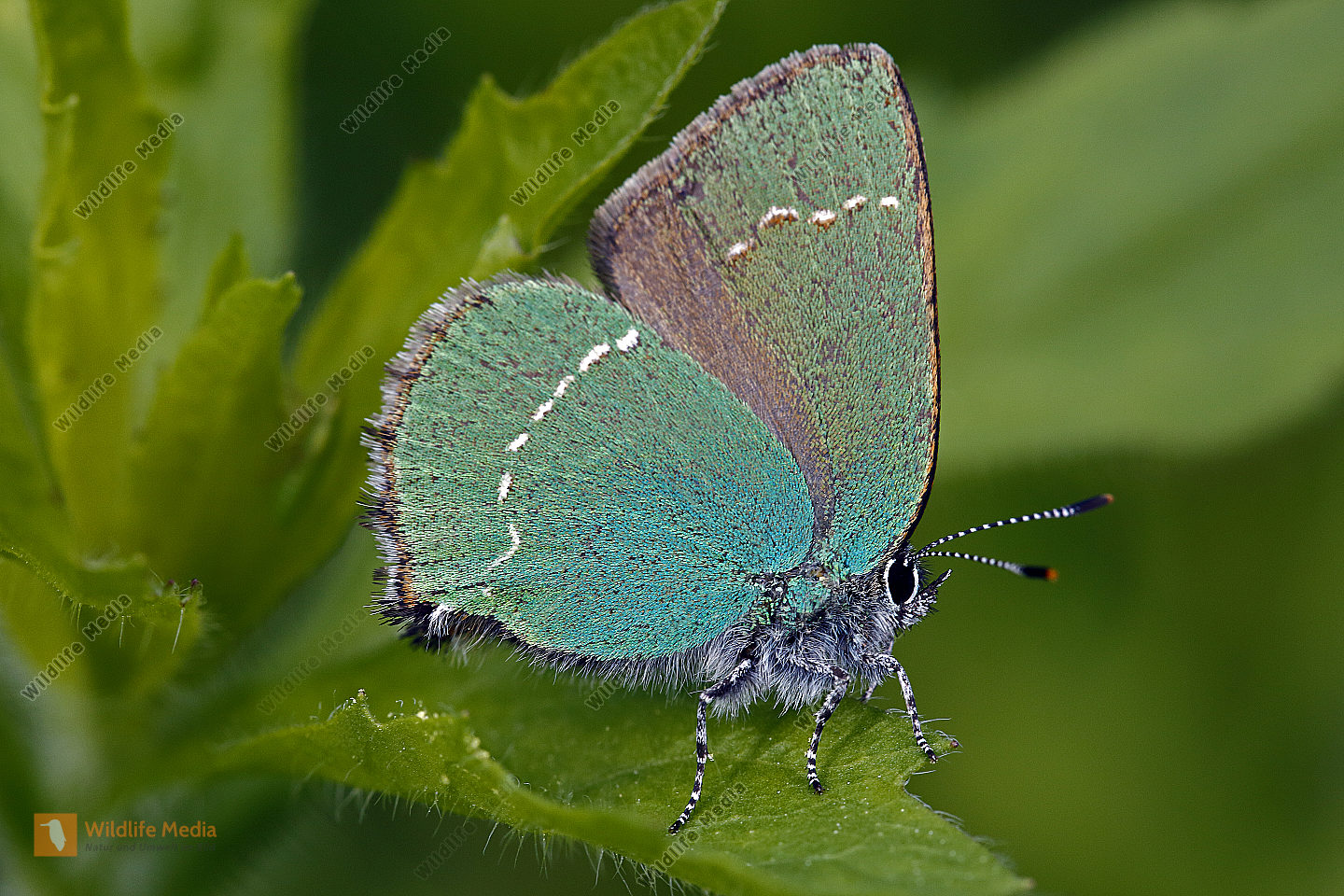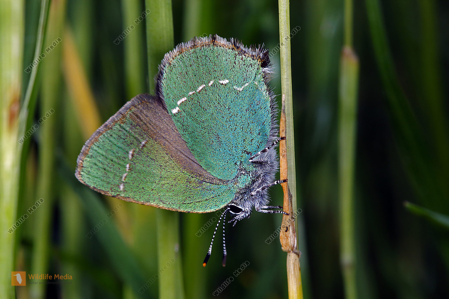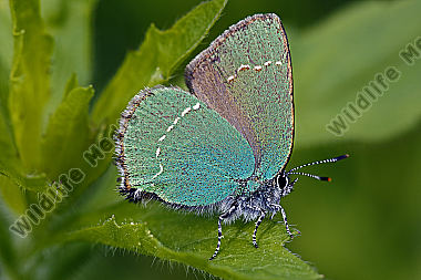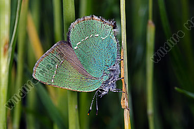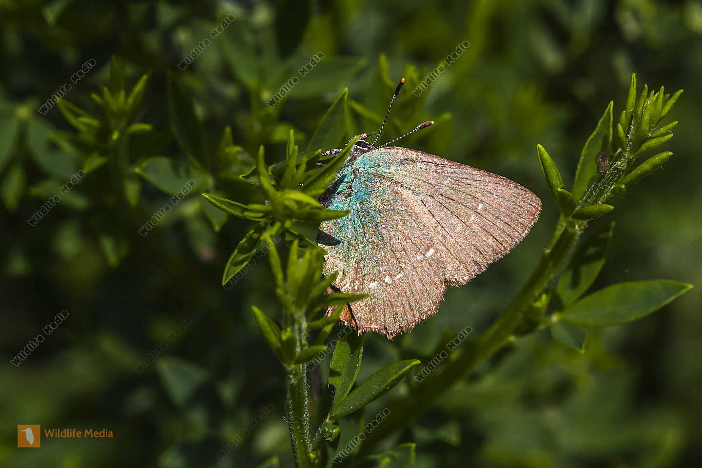 Ein Brombeerzipfelfalter ruht auf einer Hecke