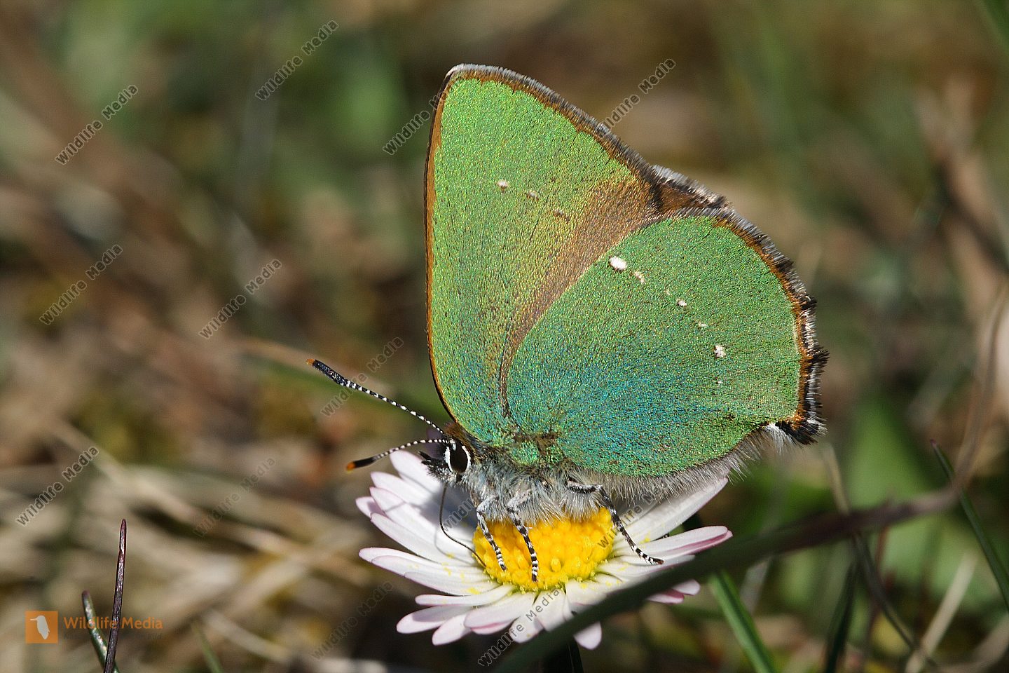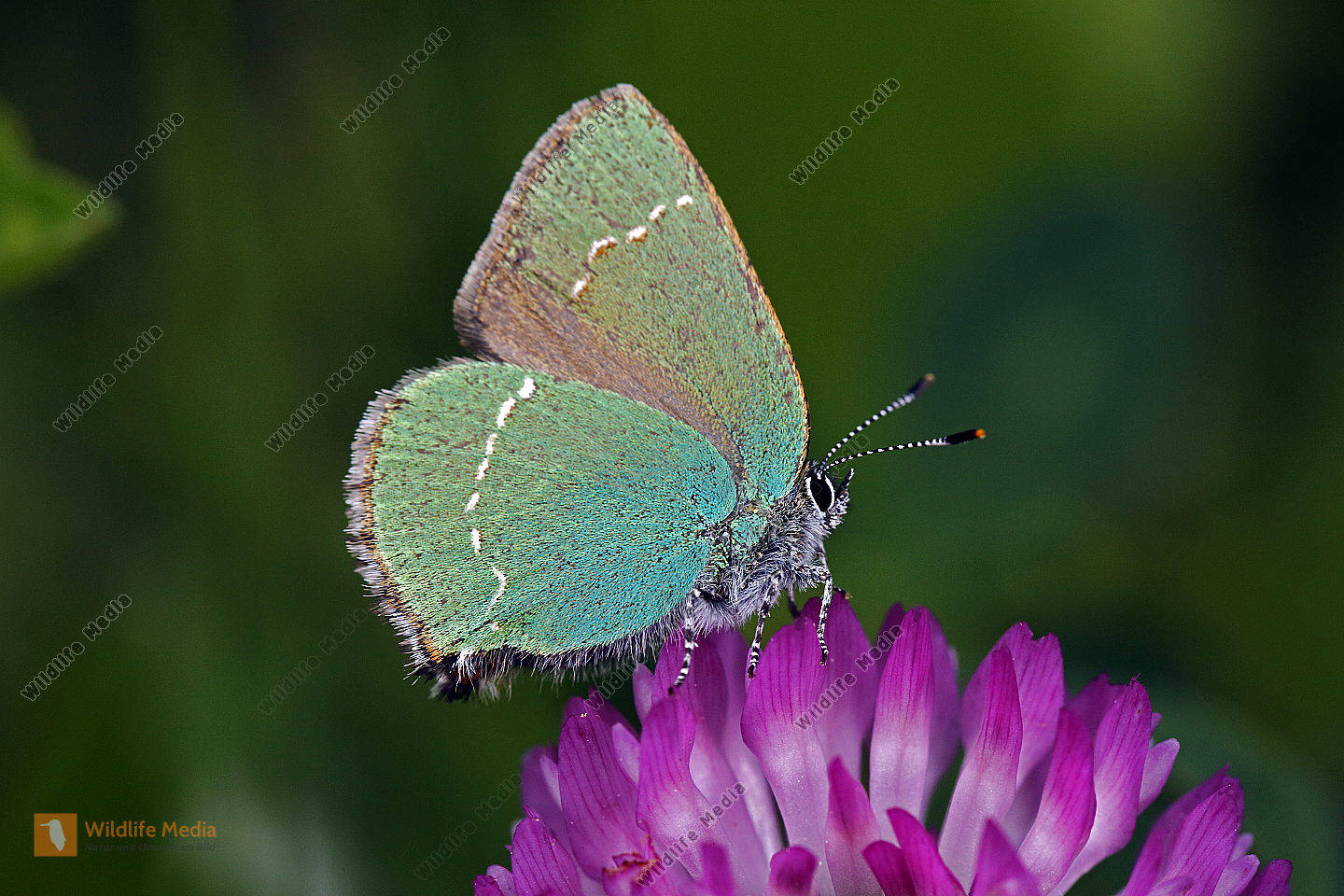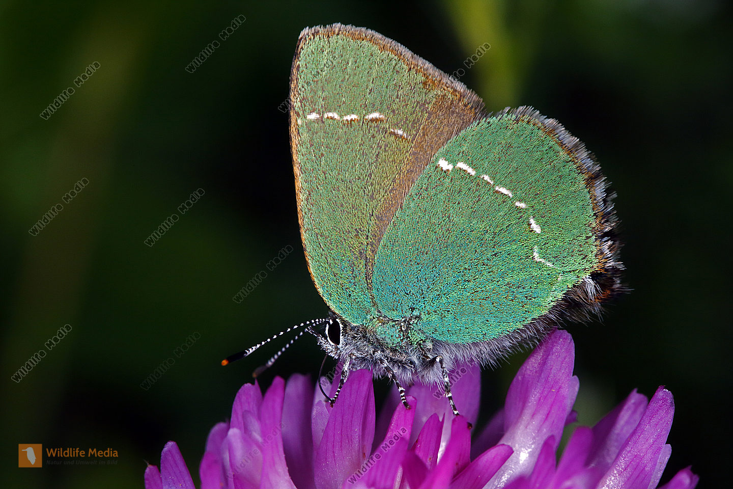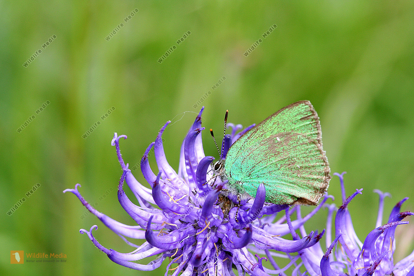 Ein Brombeerzipfelfalter ruht auf einer Hecke