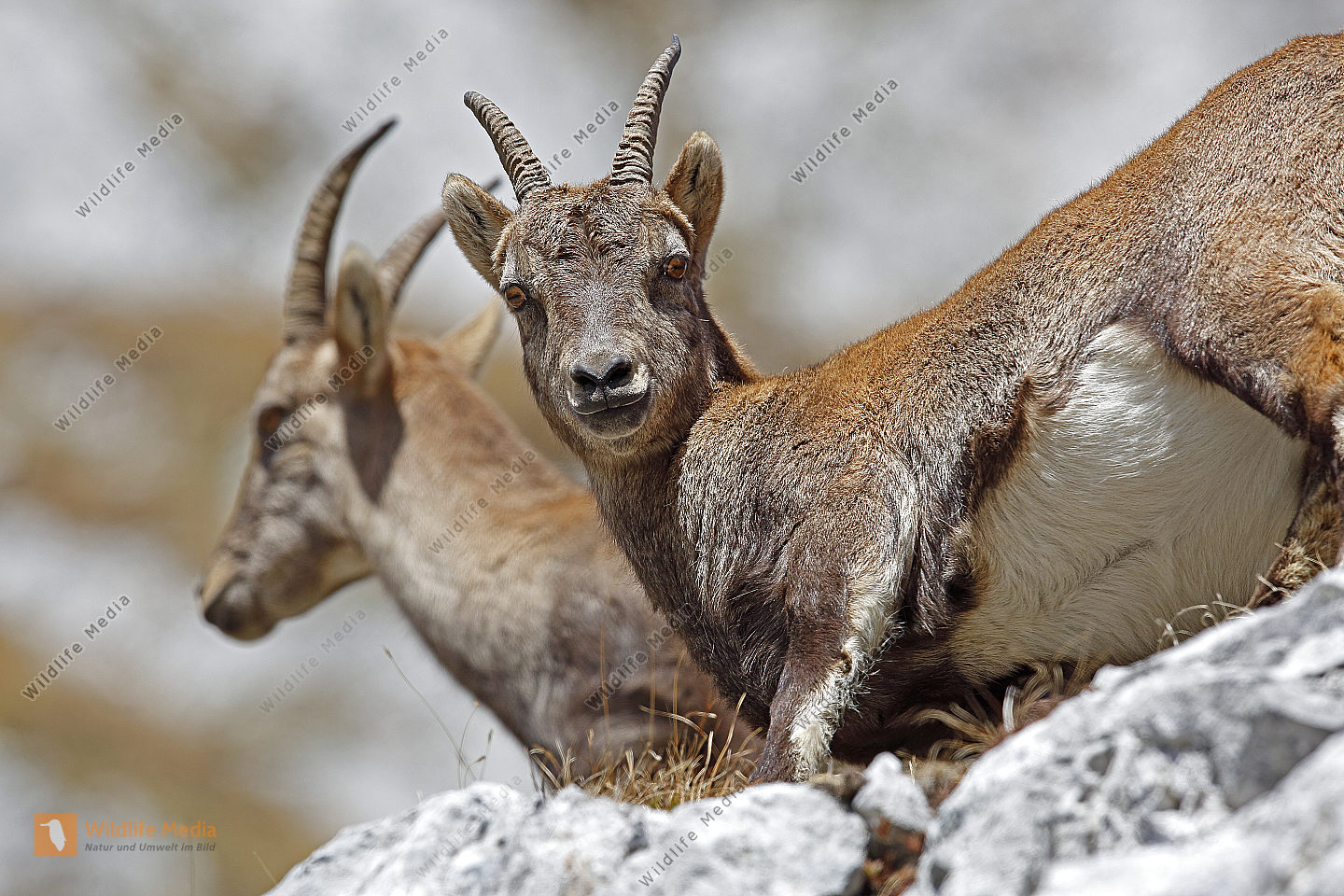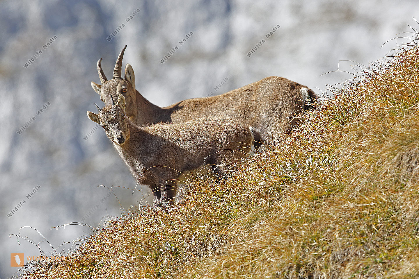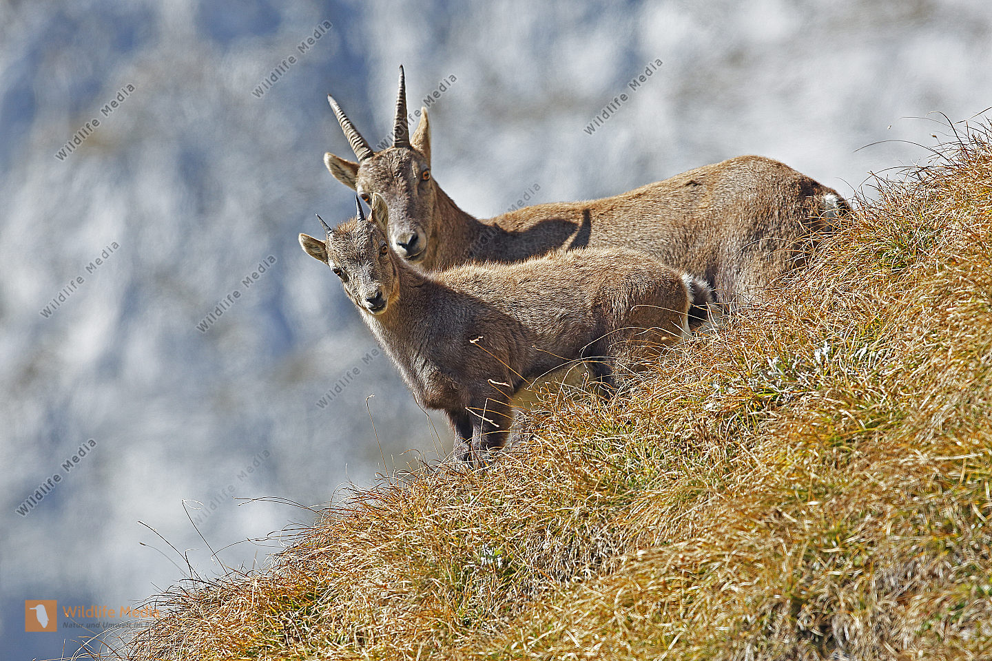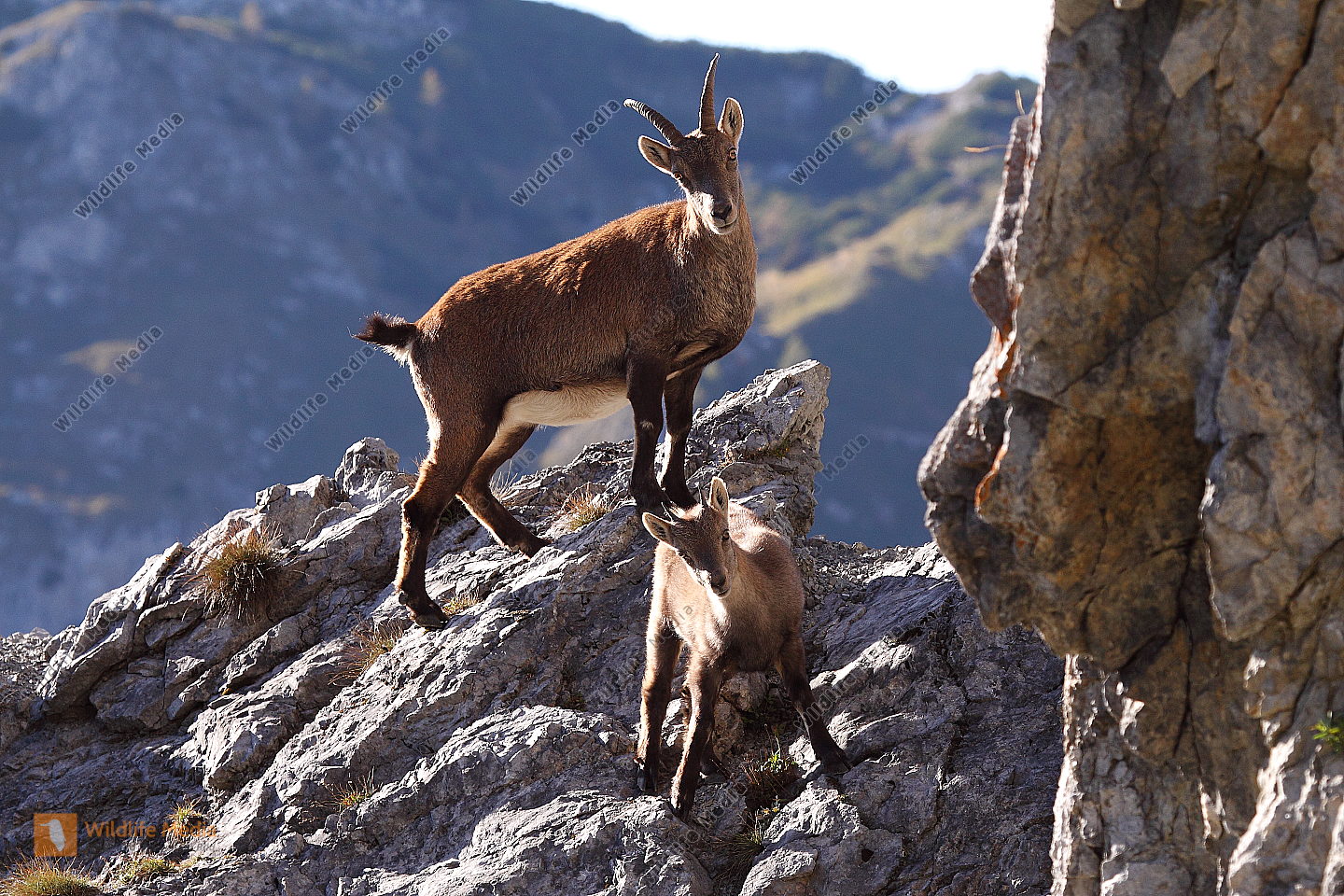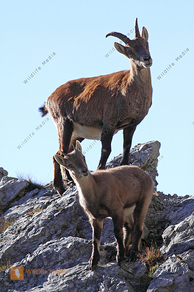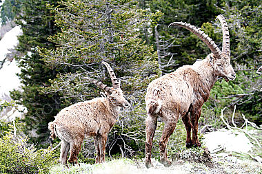 Alpensteinbock Weibchen mit Jungtier
