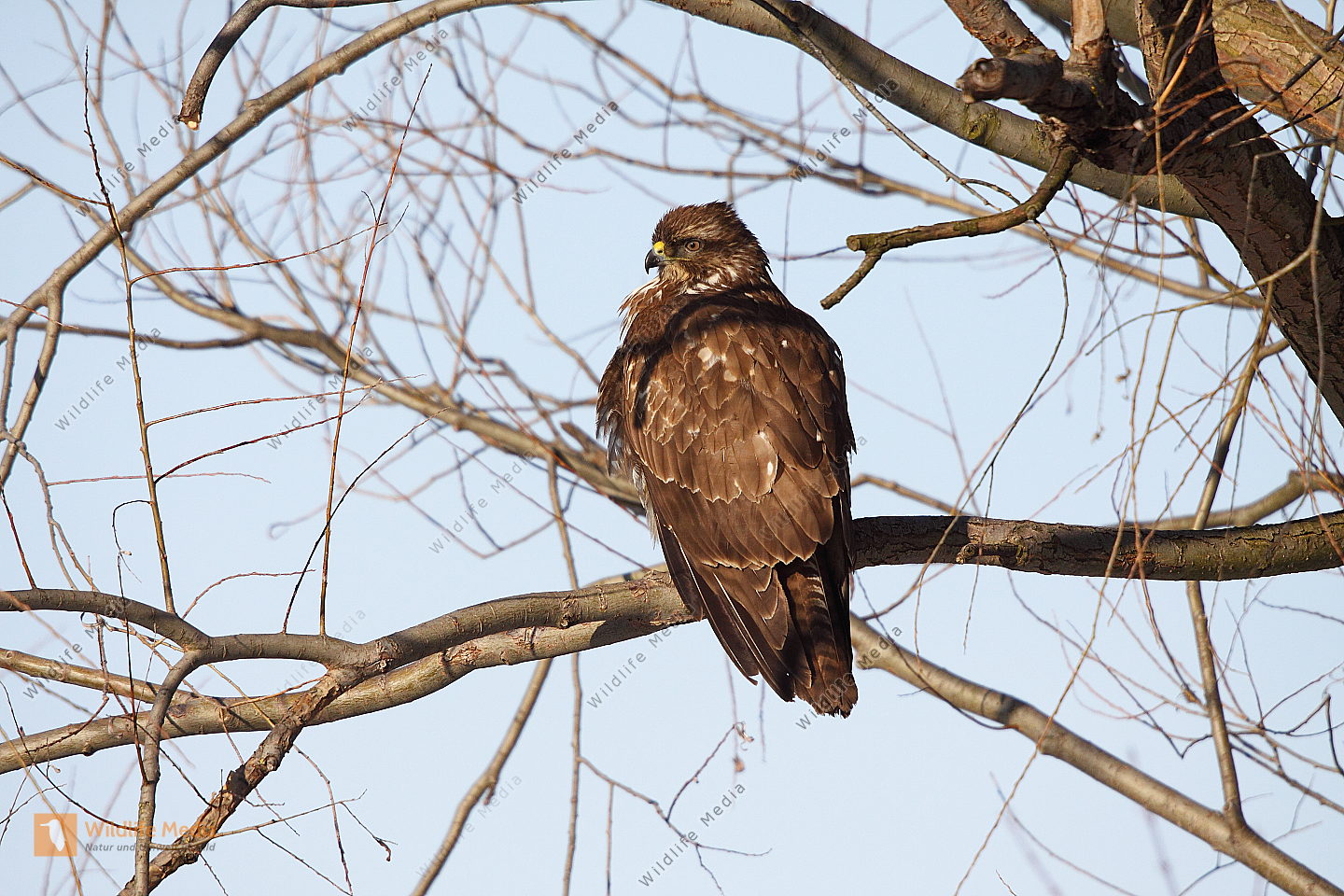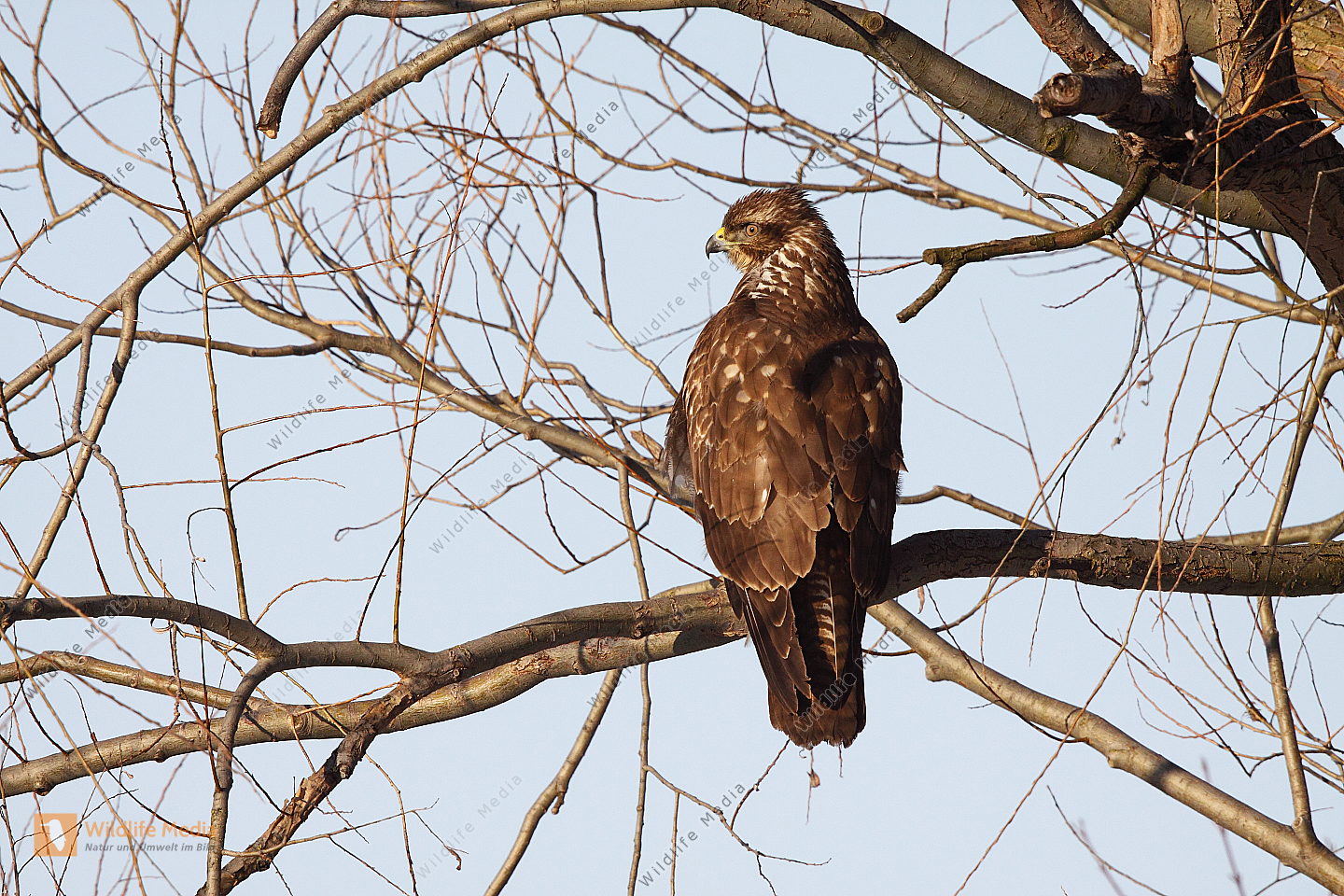 Mäusebussard sitzt auf Ast