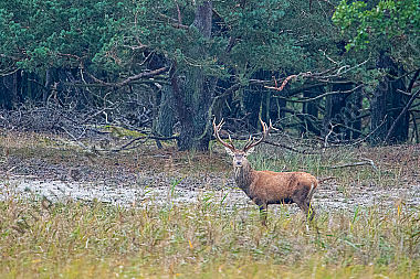 Kapitaler Rothirsch Cervus elaphus am Ostseestrand