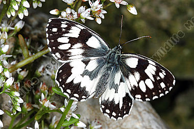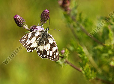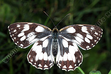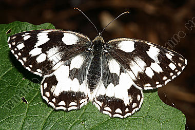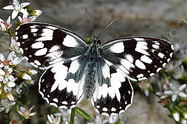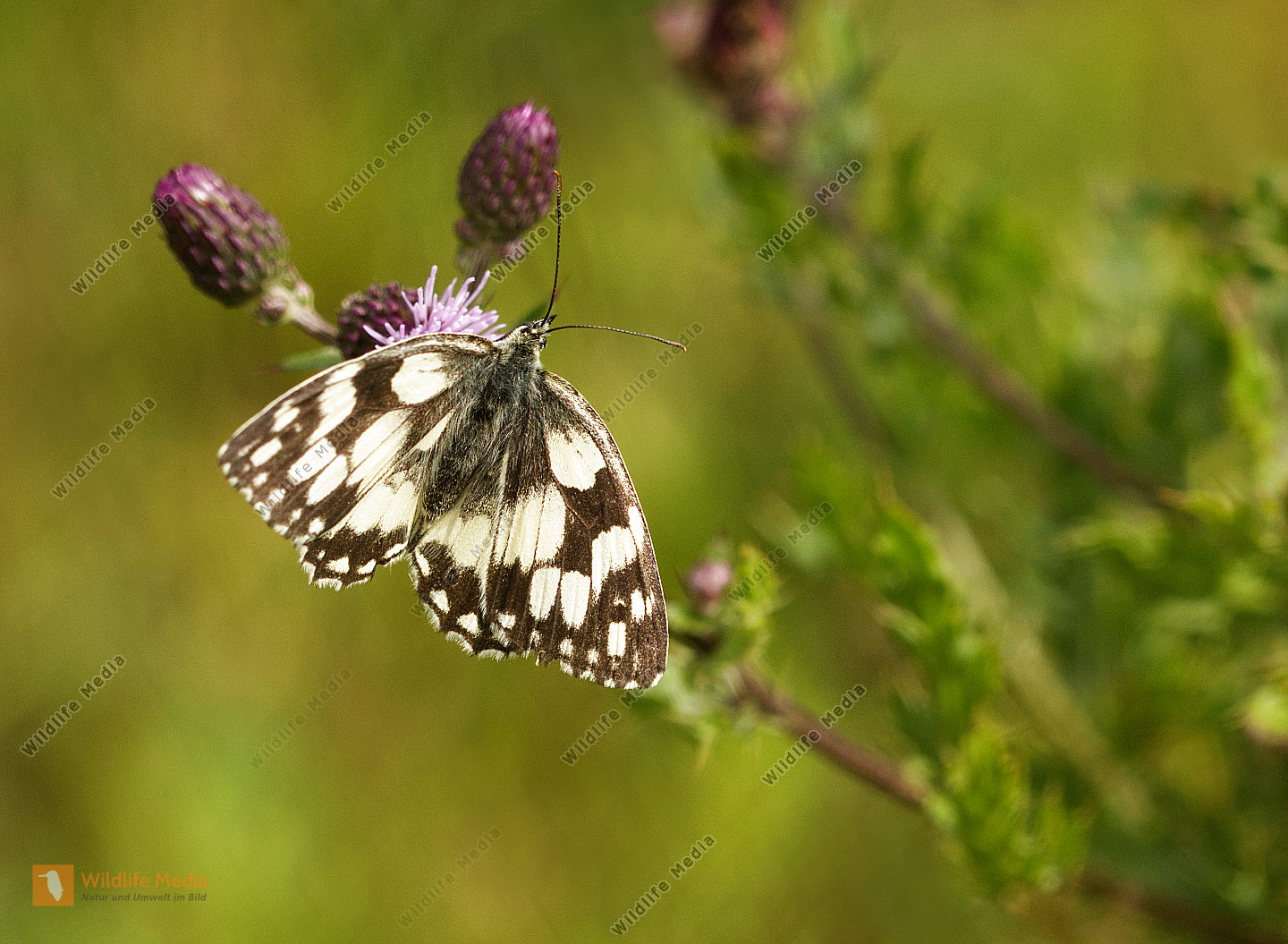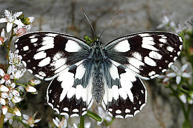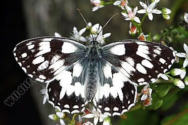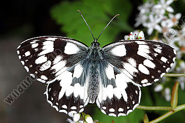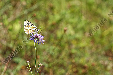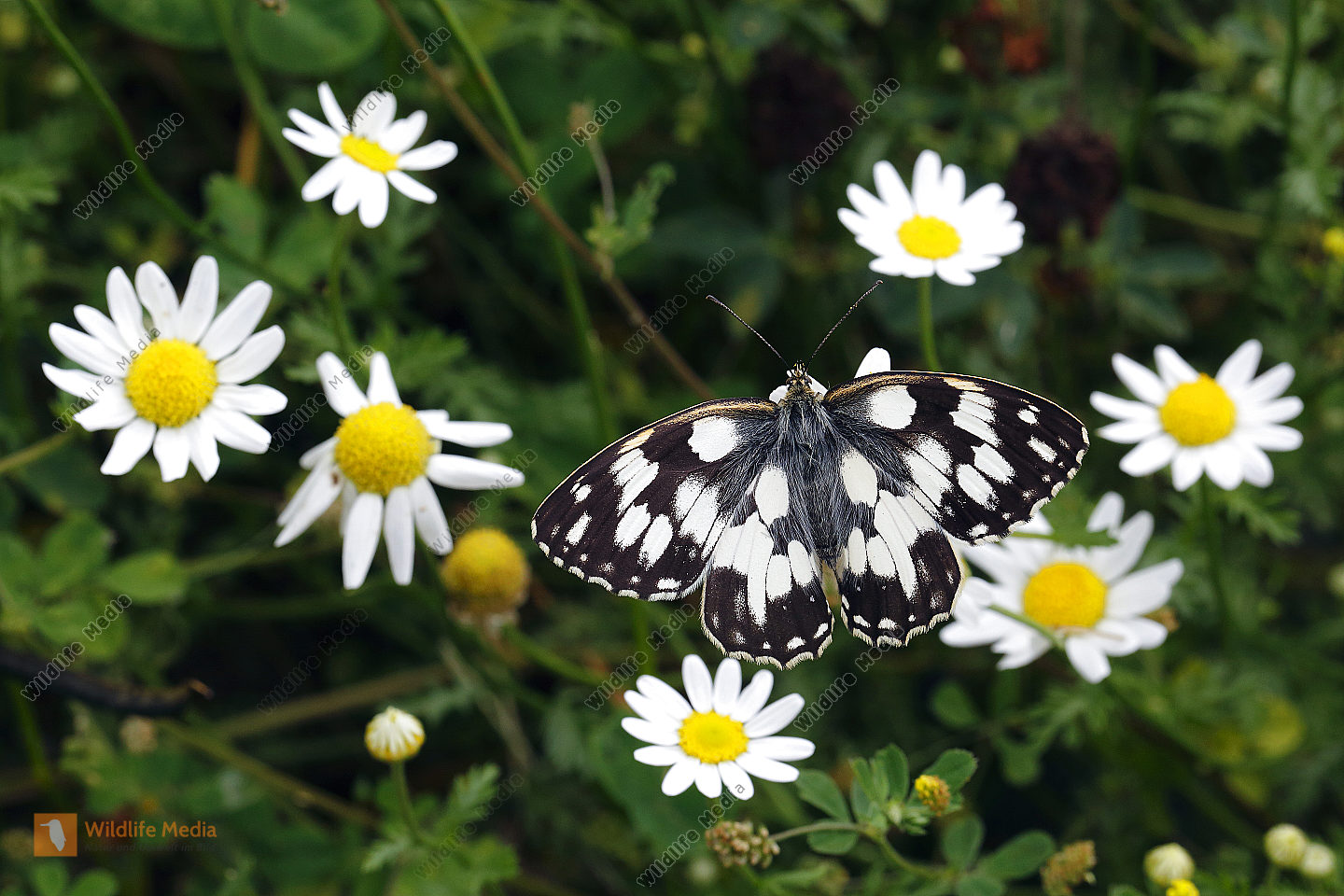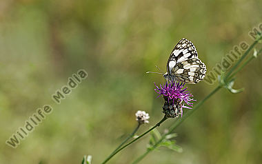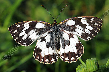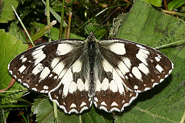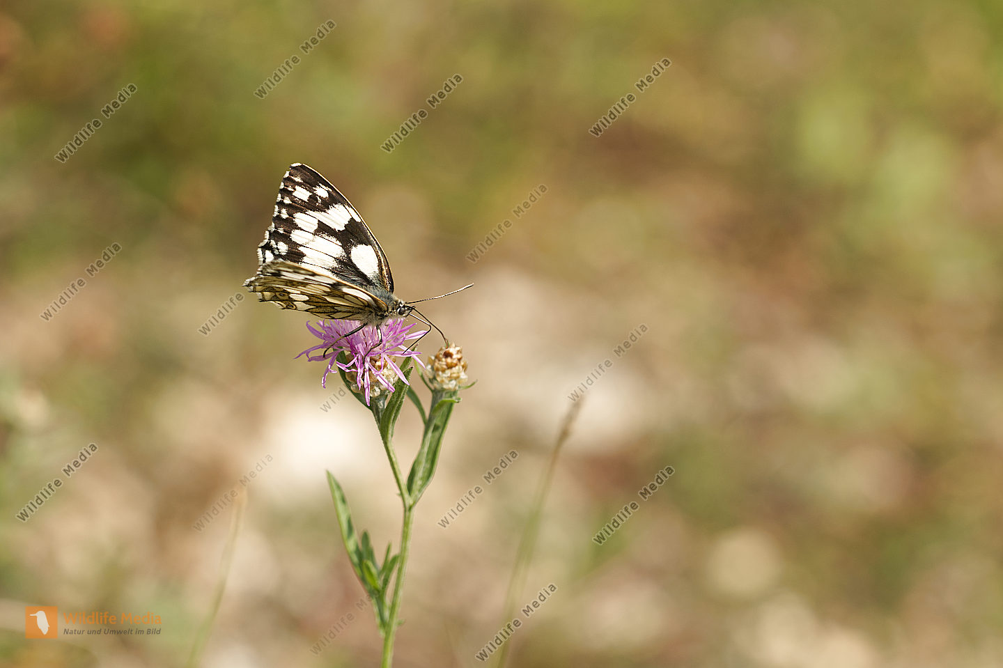 Schachbrettfalter Melanargina galathea auf einer Margerite Tagfalter
