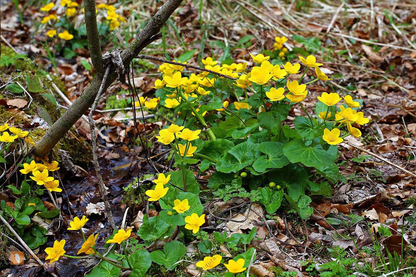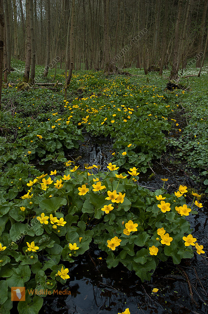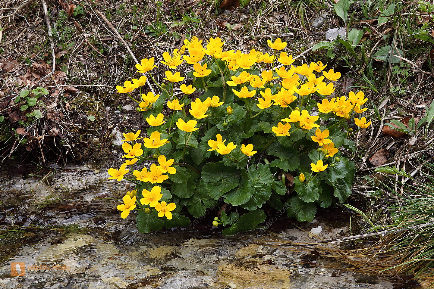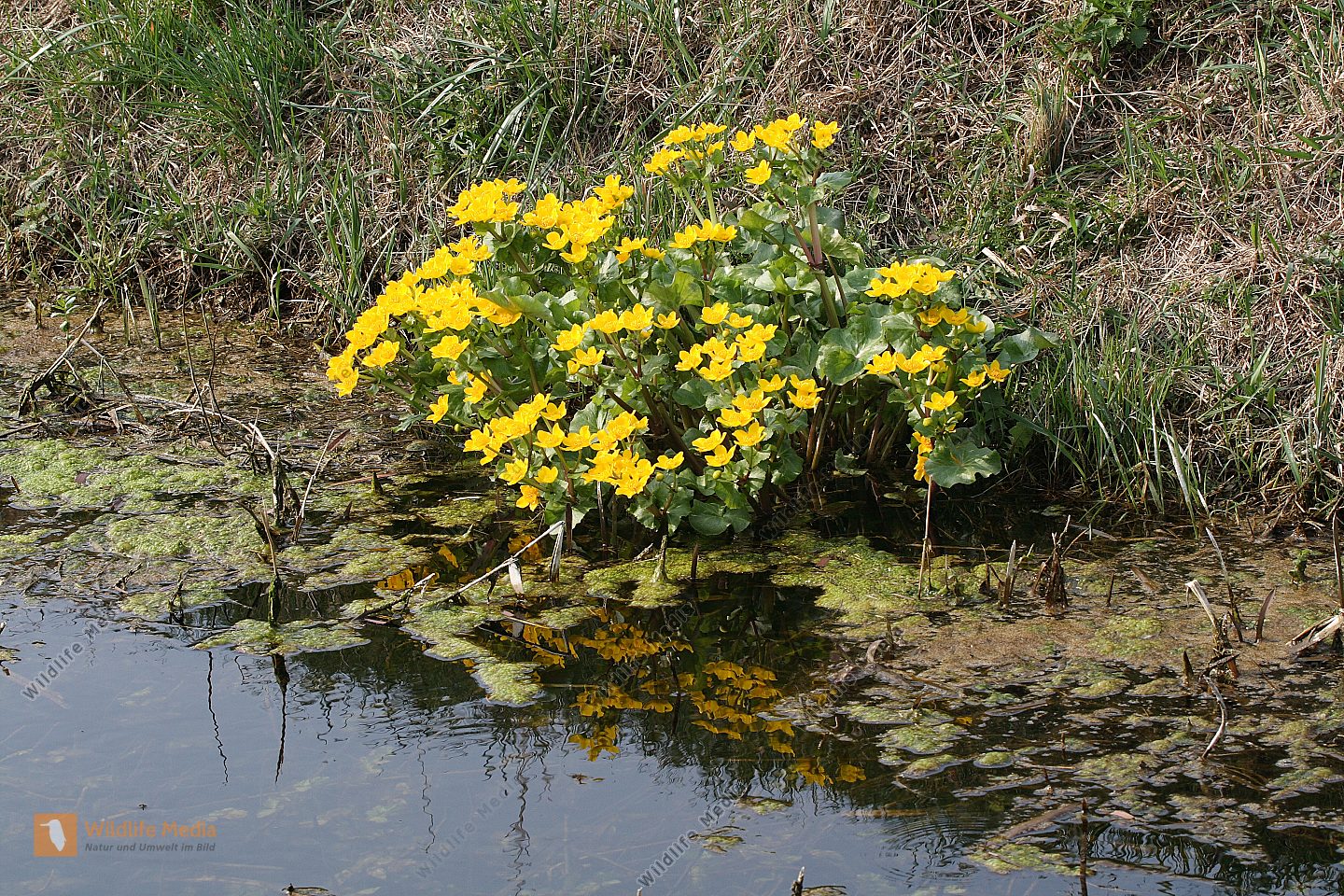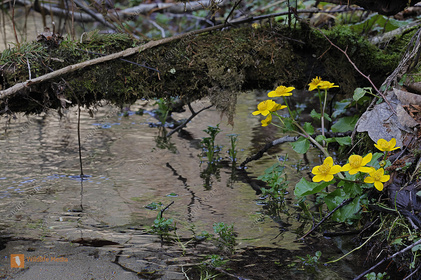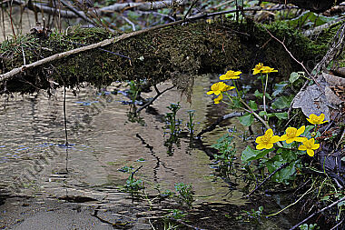Caltha palustris Gewässer Sumpfdotterblume Wald Bach