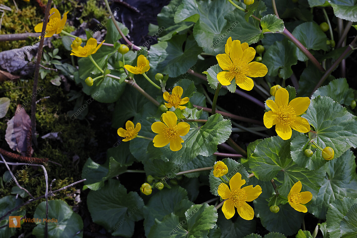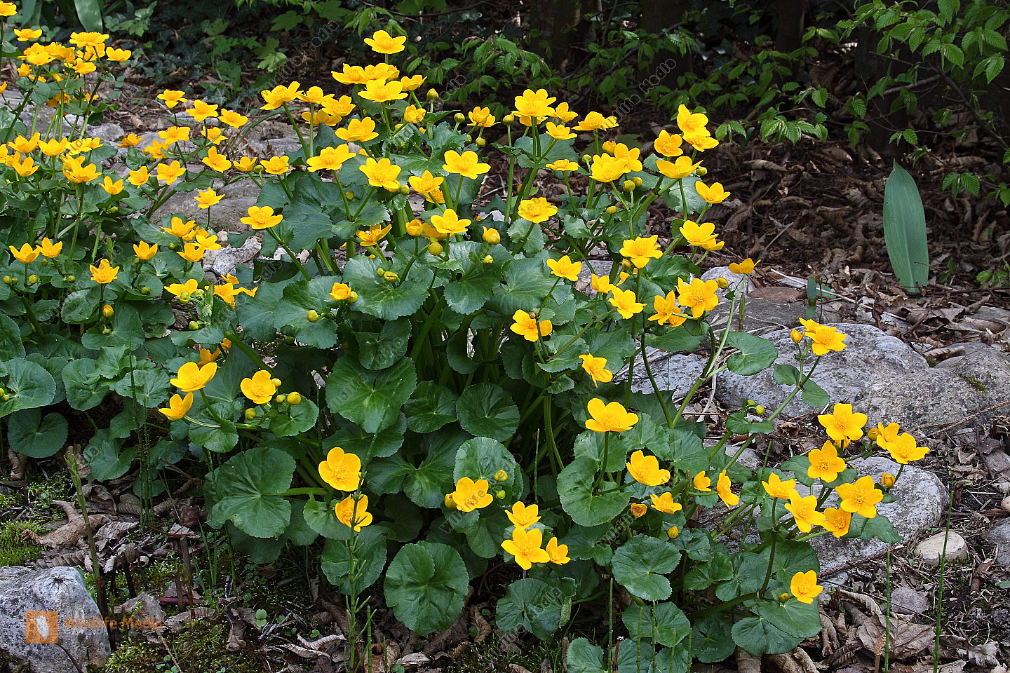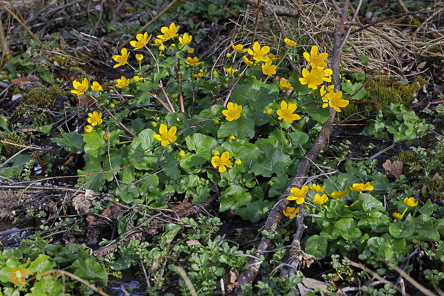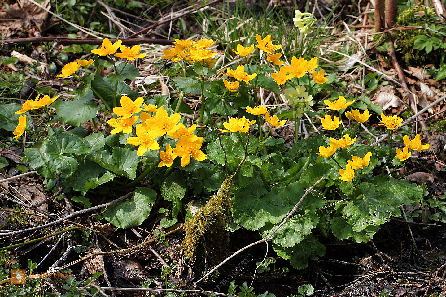 Caltha palustris Gewässer Sumpfdotterblume Wald Bach
