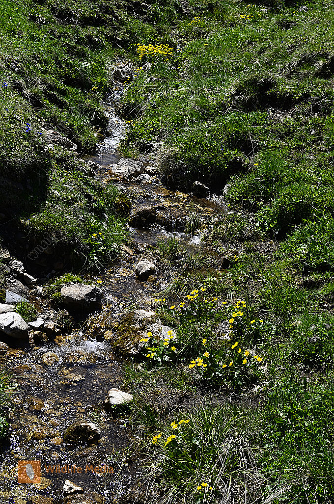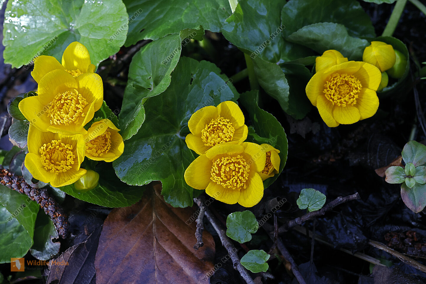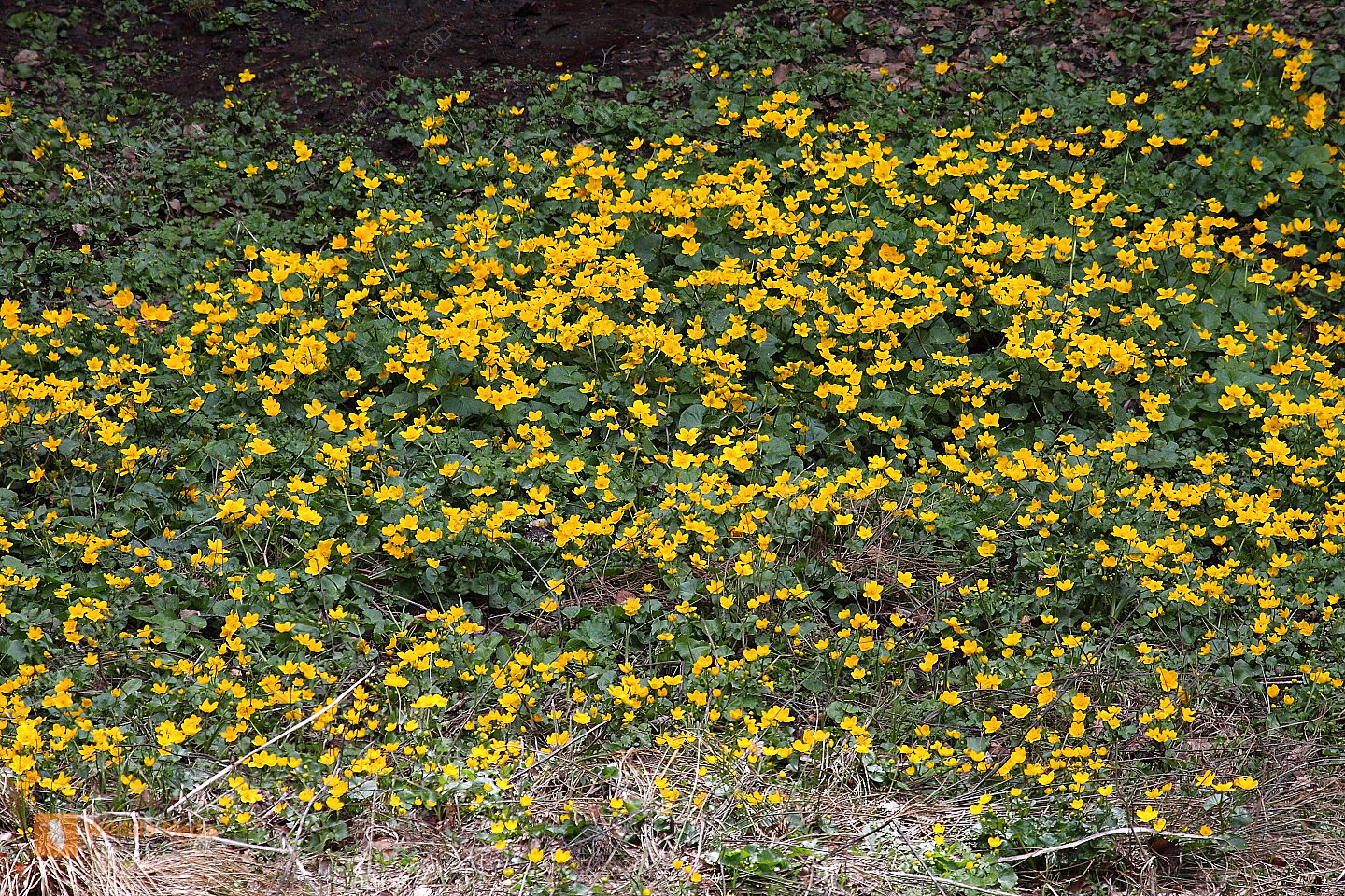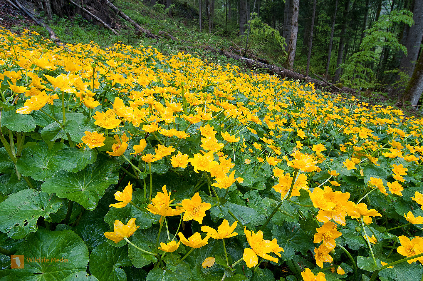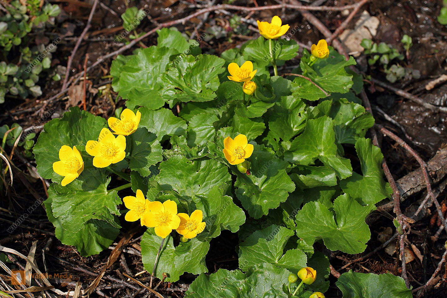 Caltha palustris Gewässer Sumpfdotterblume Wald Bach