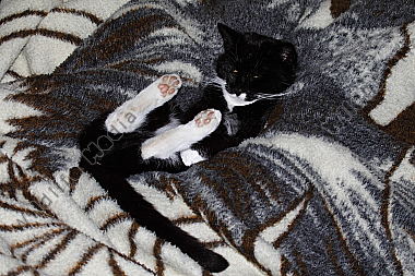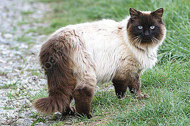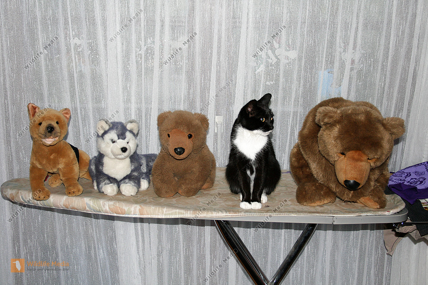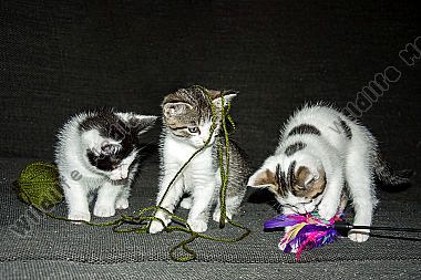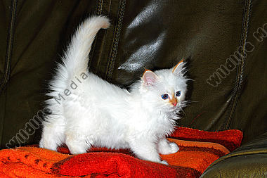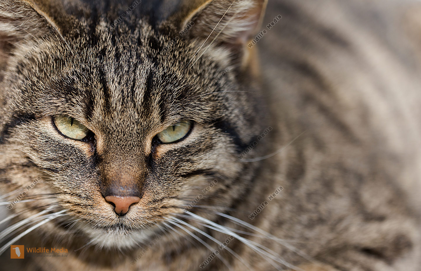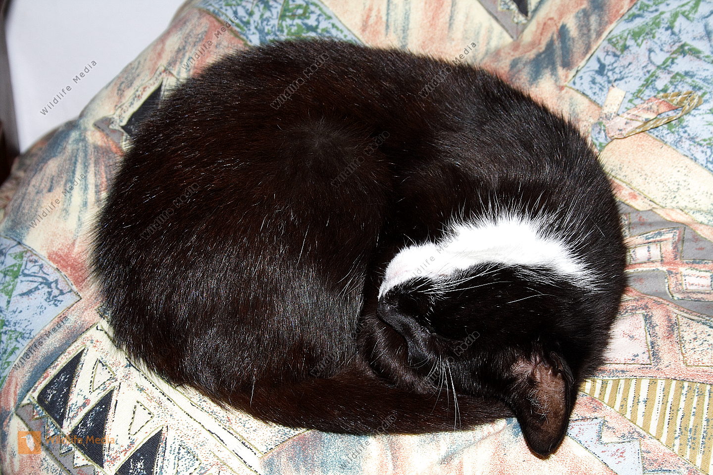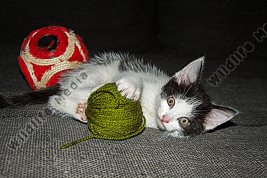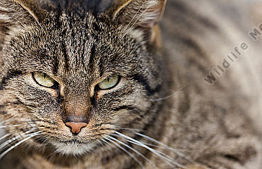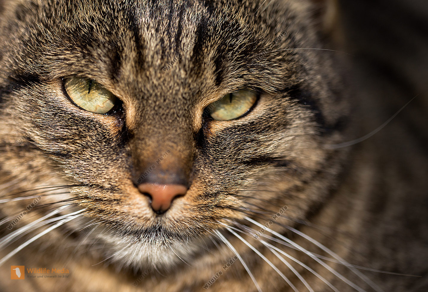 Junge Hauskatze Felis silvestris catus auf Baumstamm