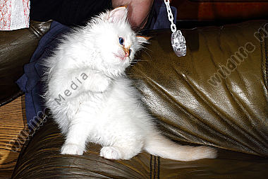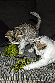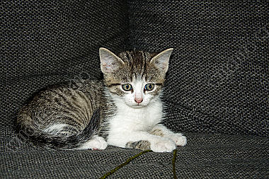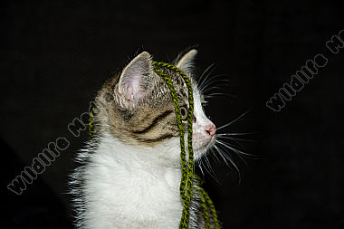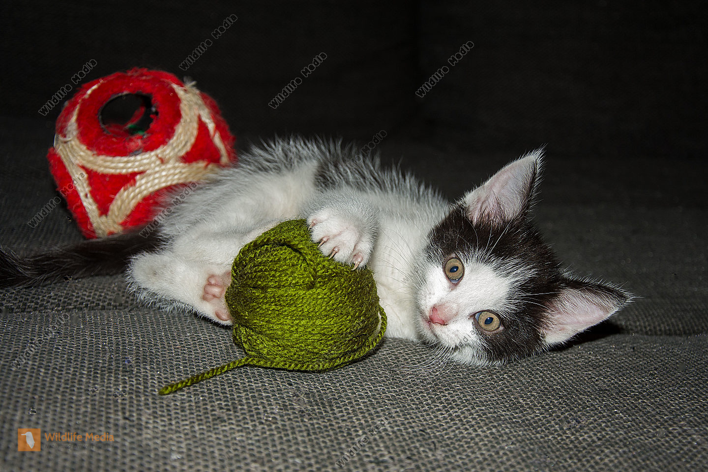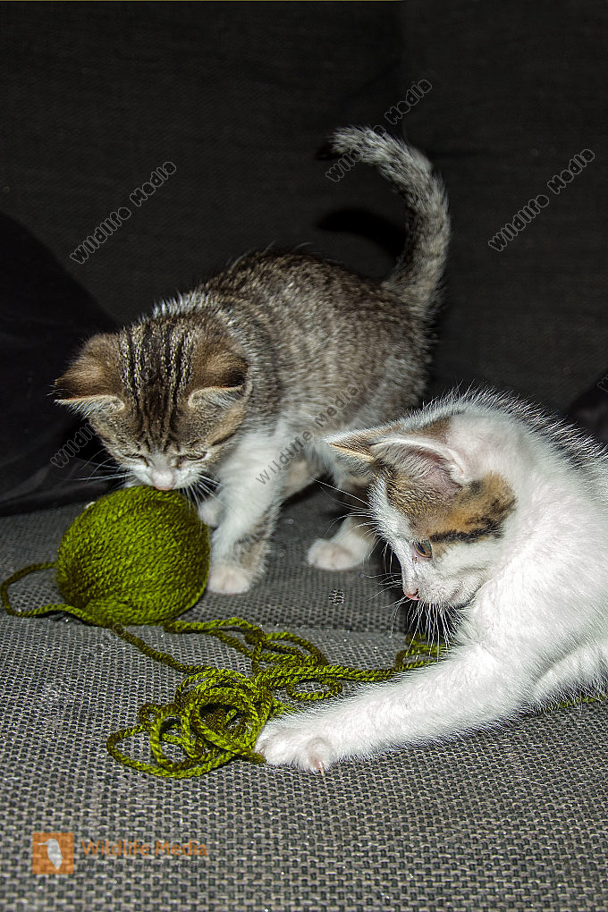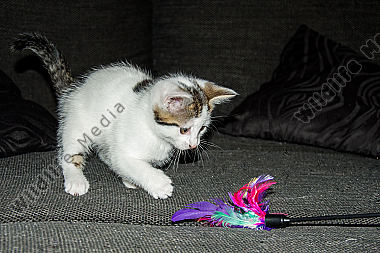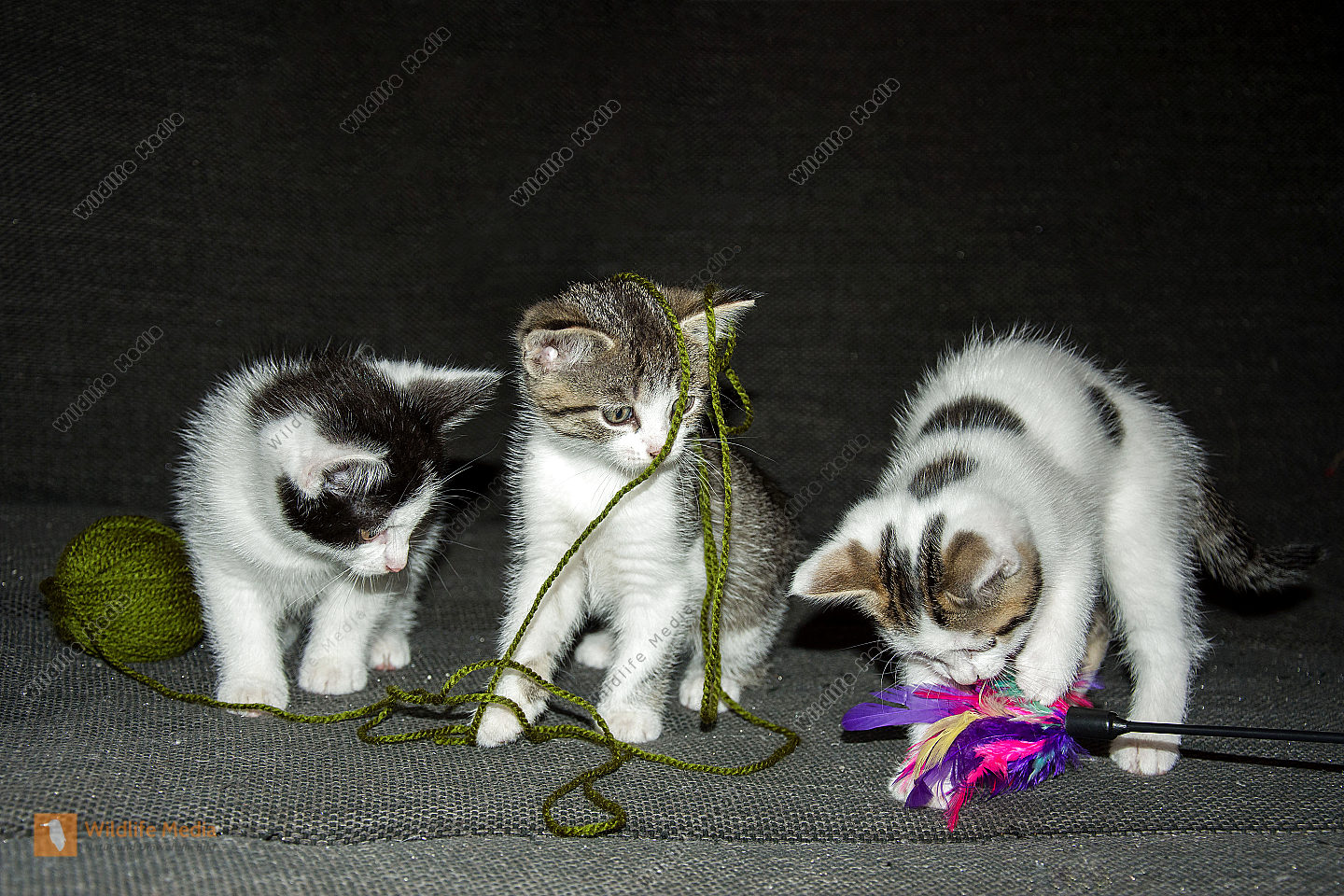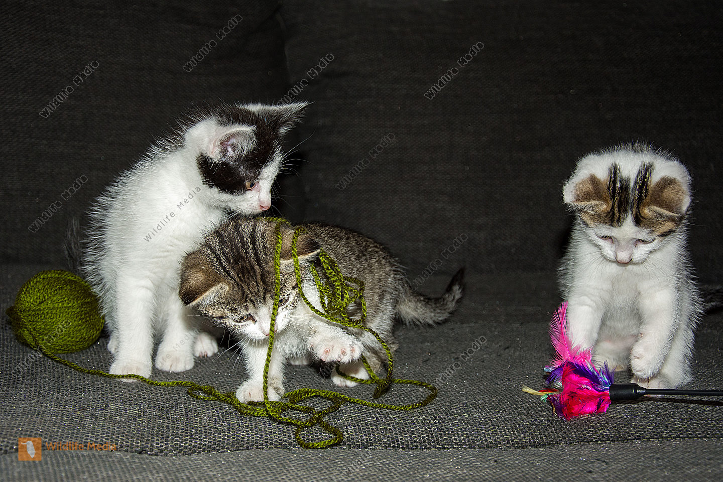Junge Hauskatze (Felis silvestris f. catus) auf einem Ast