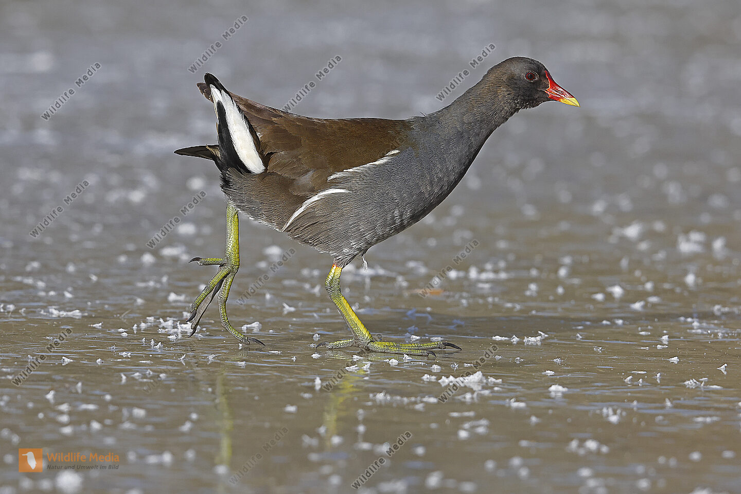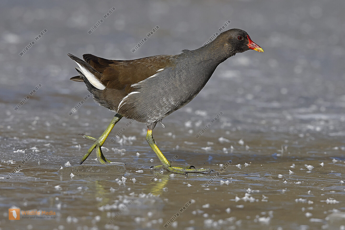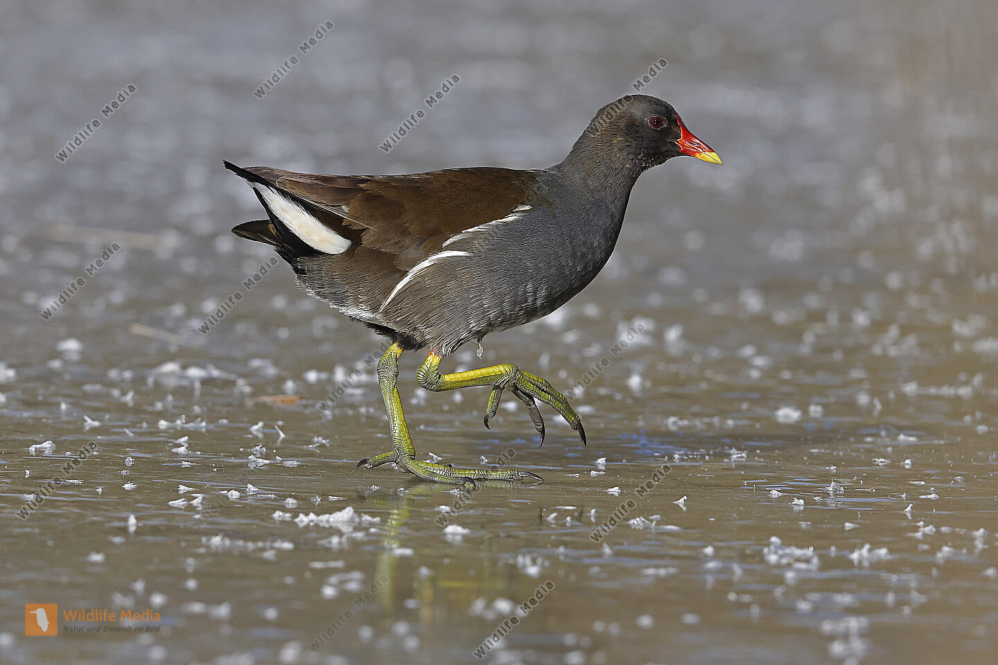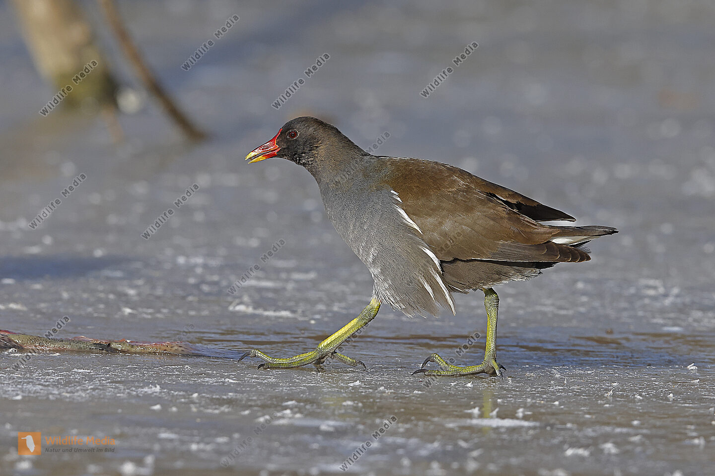 Ein Wintergoldhähnchen auf der Suche nach Nahrung