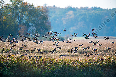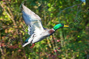 Stockente Anas platyrhynchos Erpel im Flug