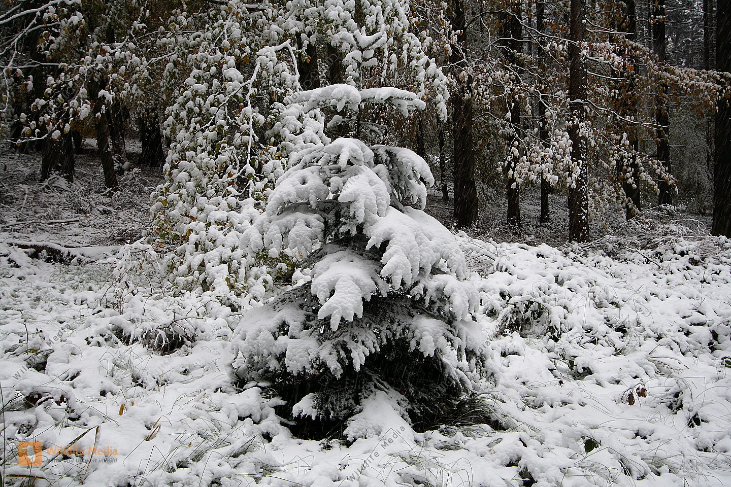 Eiche erster Schnee Fichte Herbst Laubwald Mischwald Rotbuche Winter