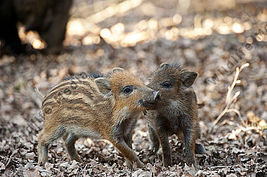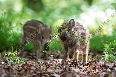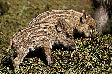 Zoom Zwei Frischlinge auf Nahrungssuche