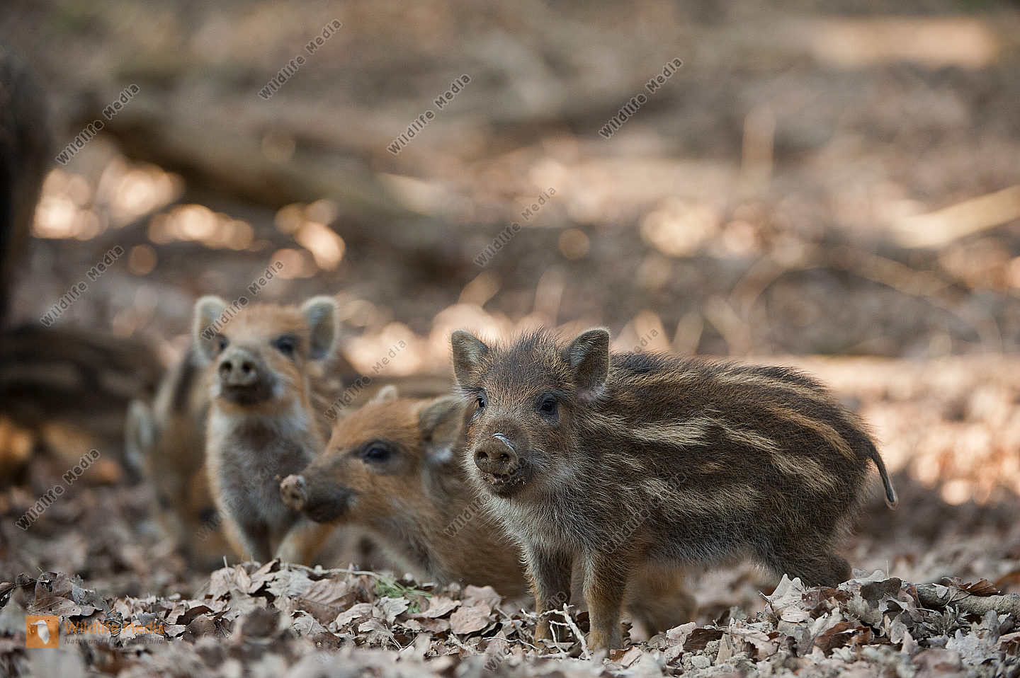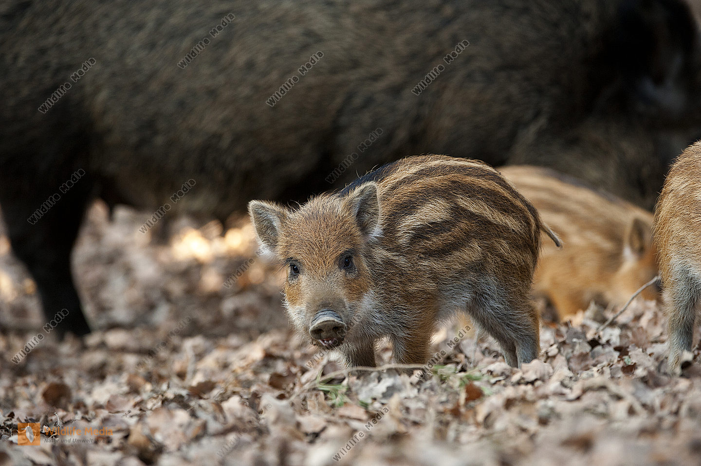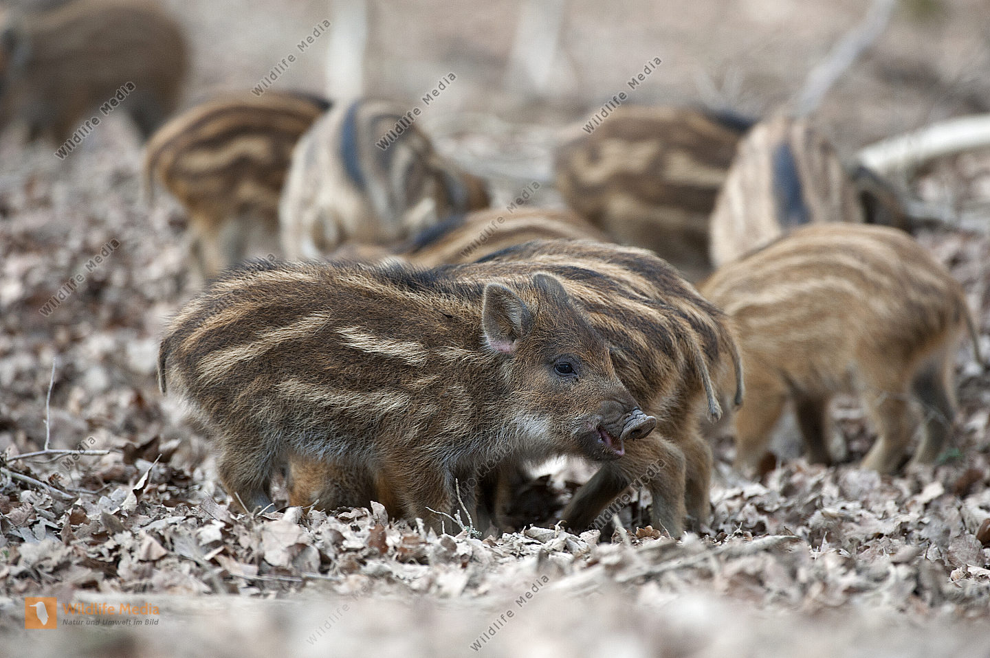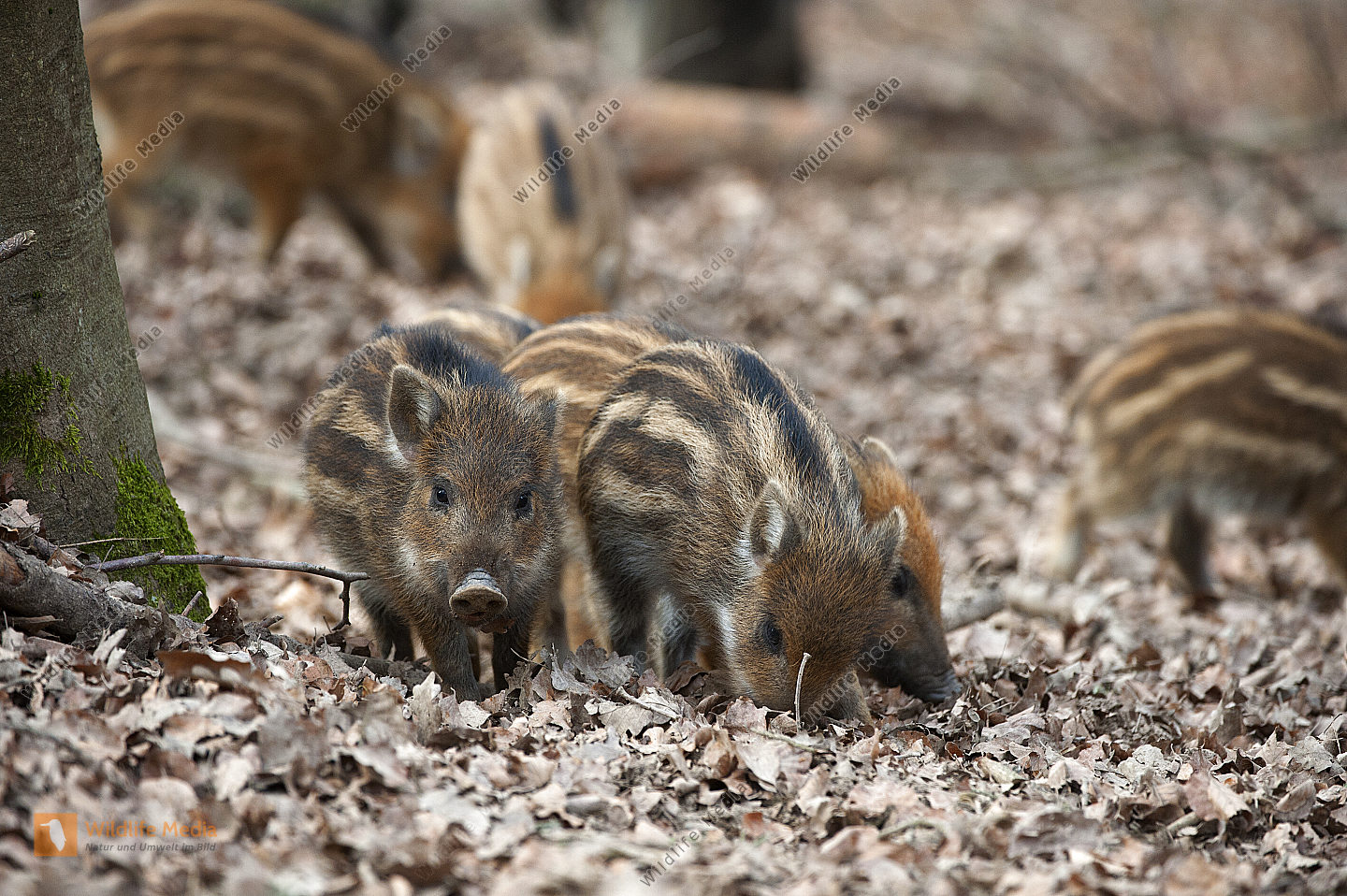 Wildschwein Sus scrofa Jungtiere im Kessel Tarnung