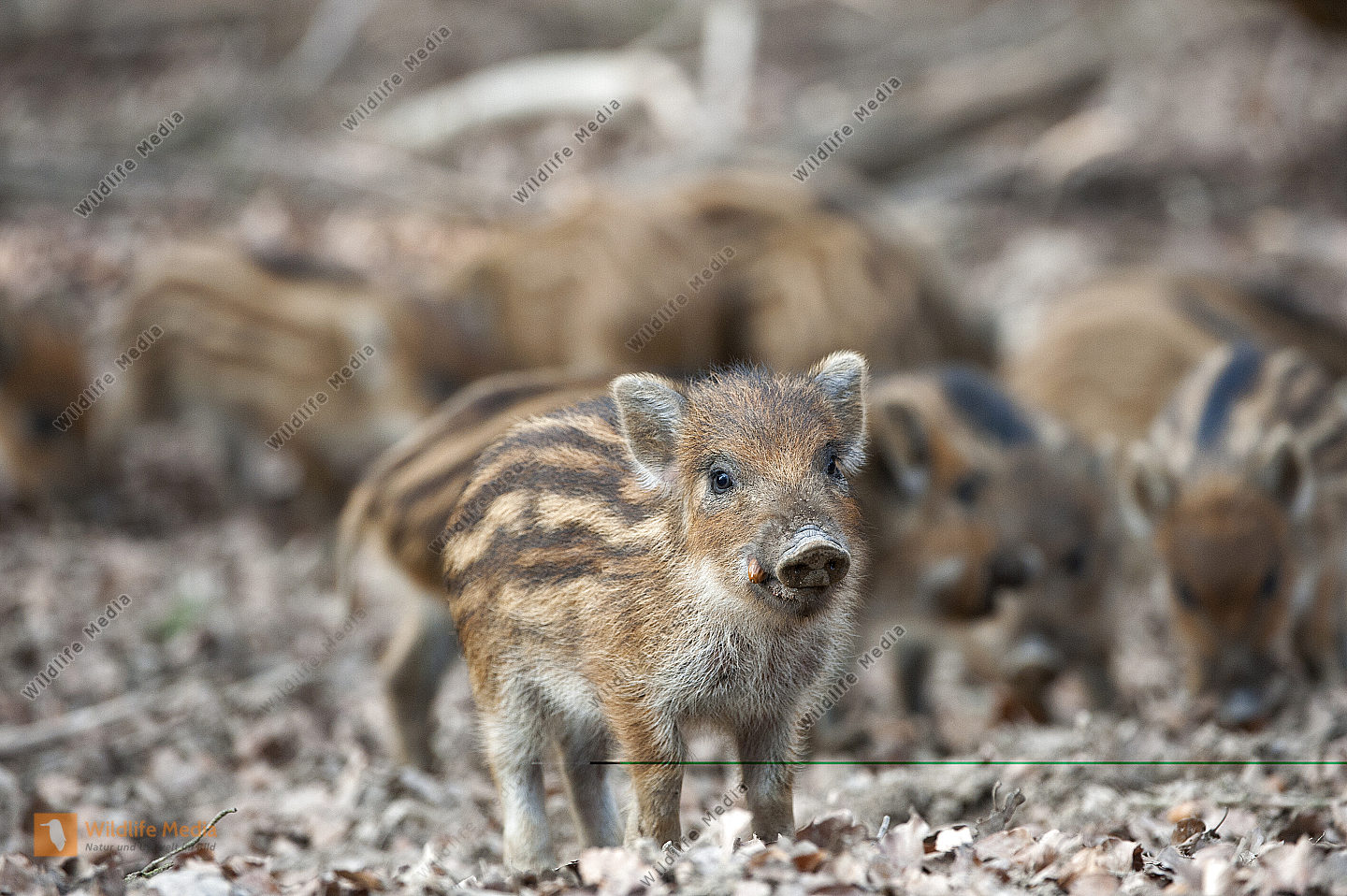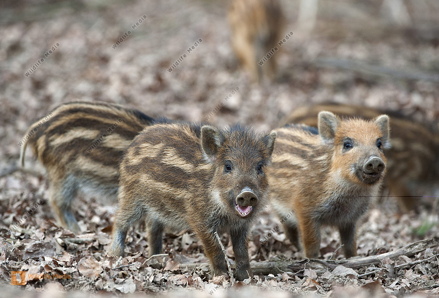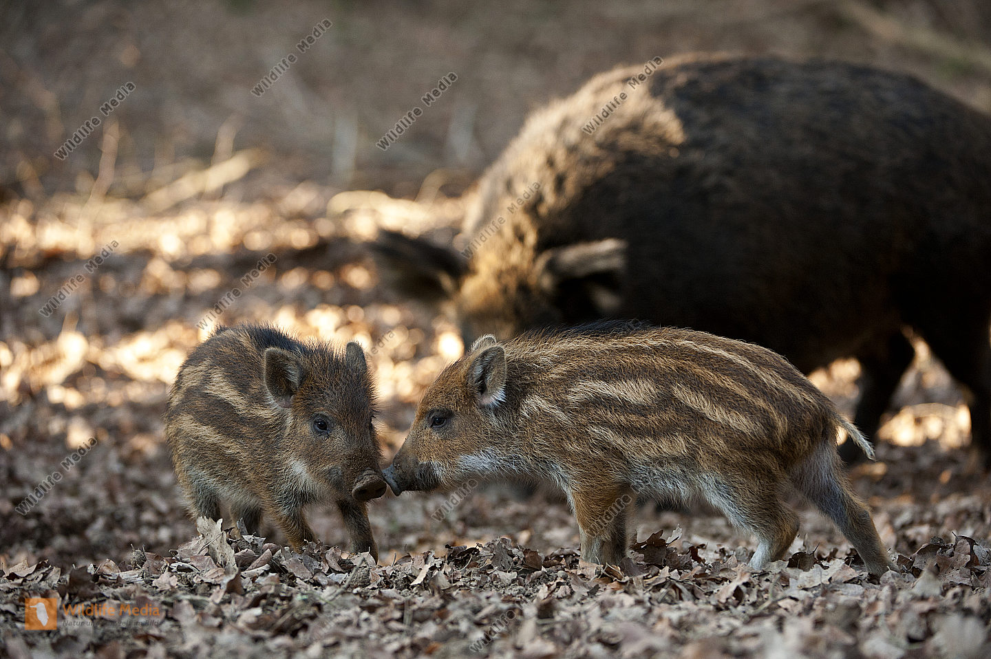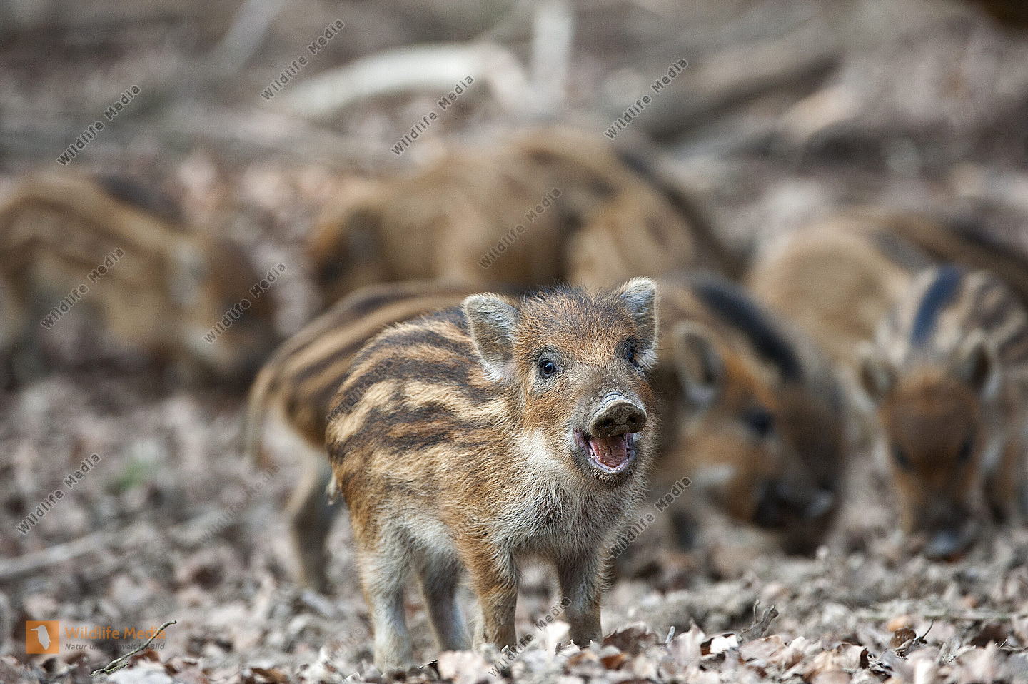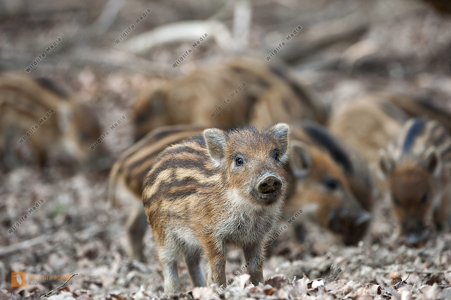 Wildschwein Sus scrofa Jungtiere im Kessel Tarnung
