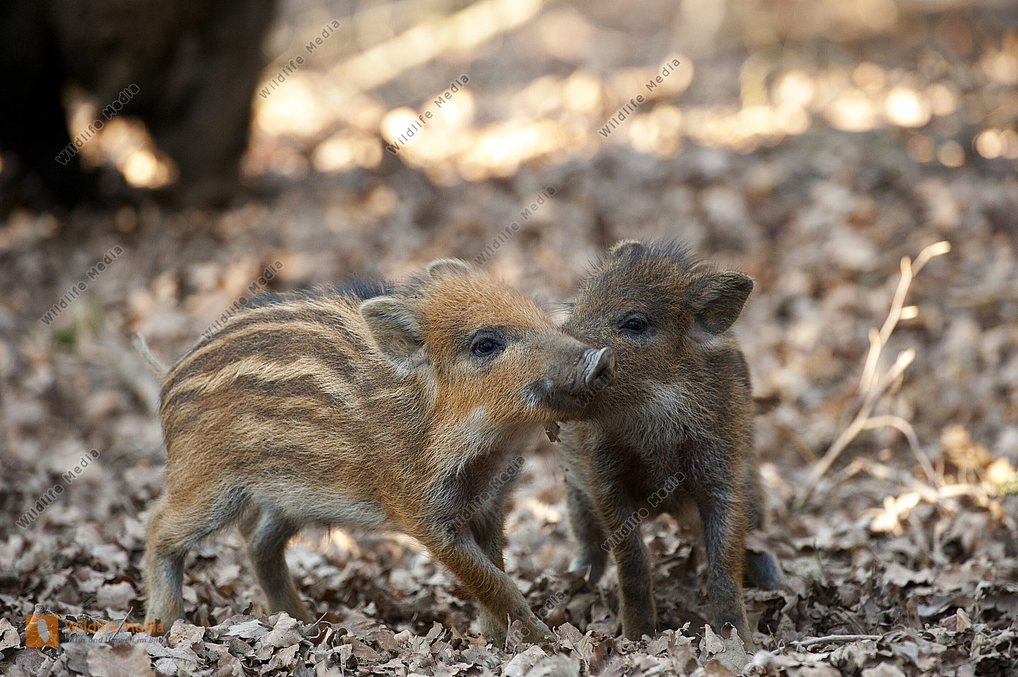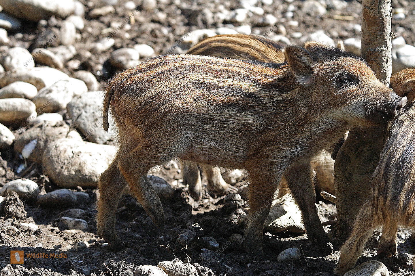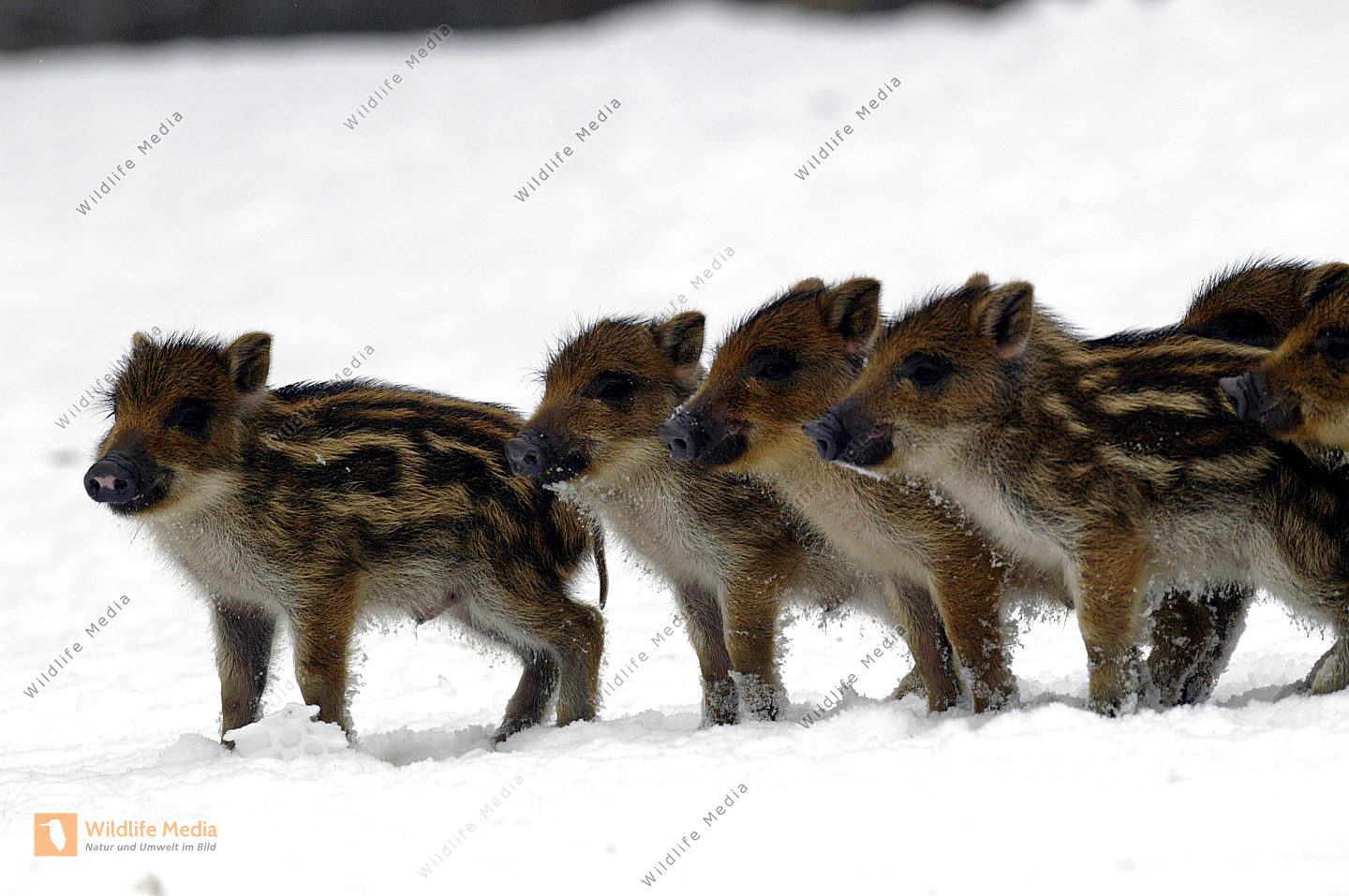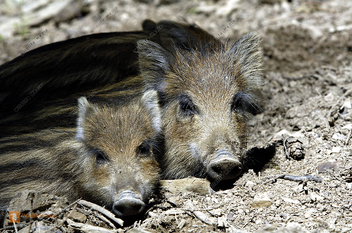Wildschwein Sus scrofa Jungtiere im Kessel Tarnung