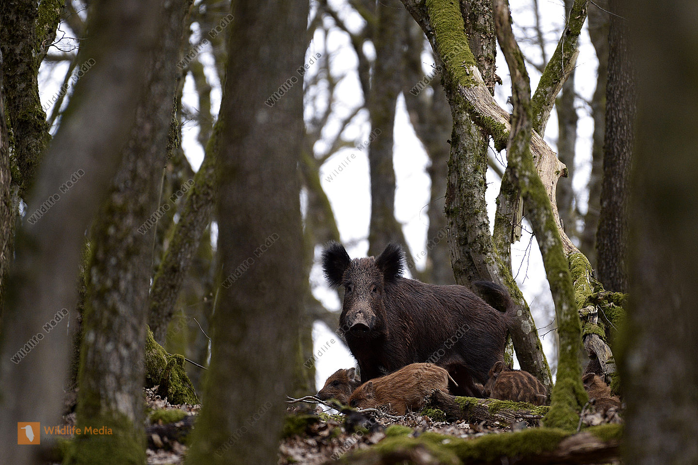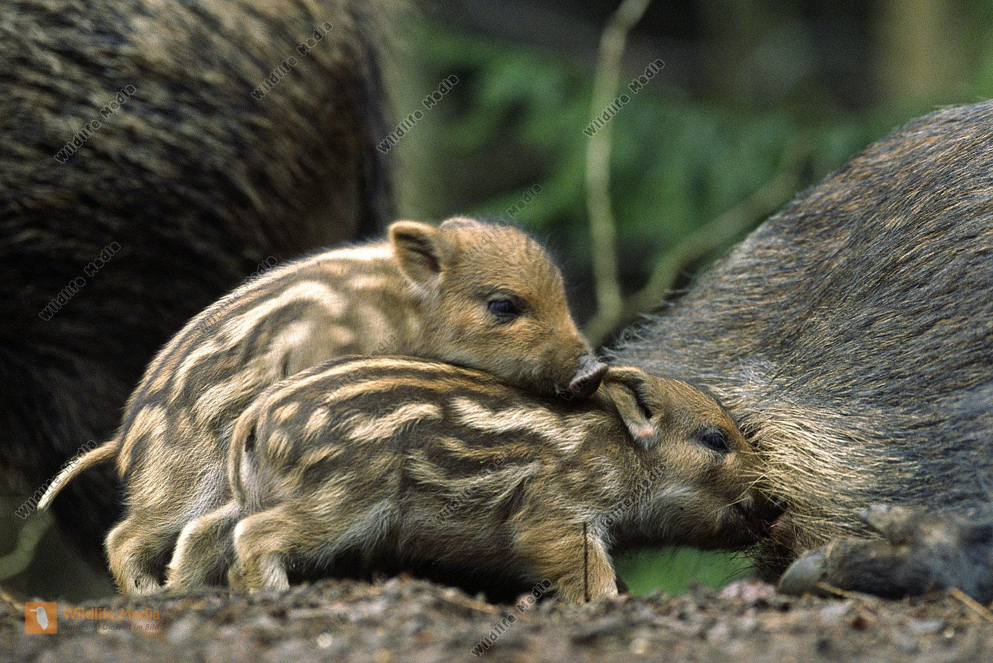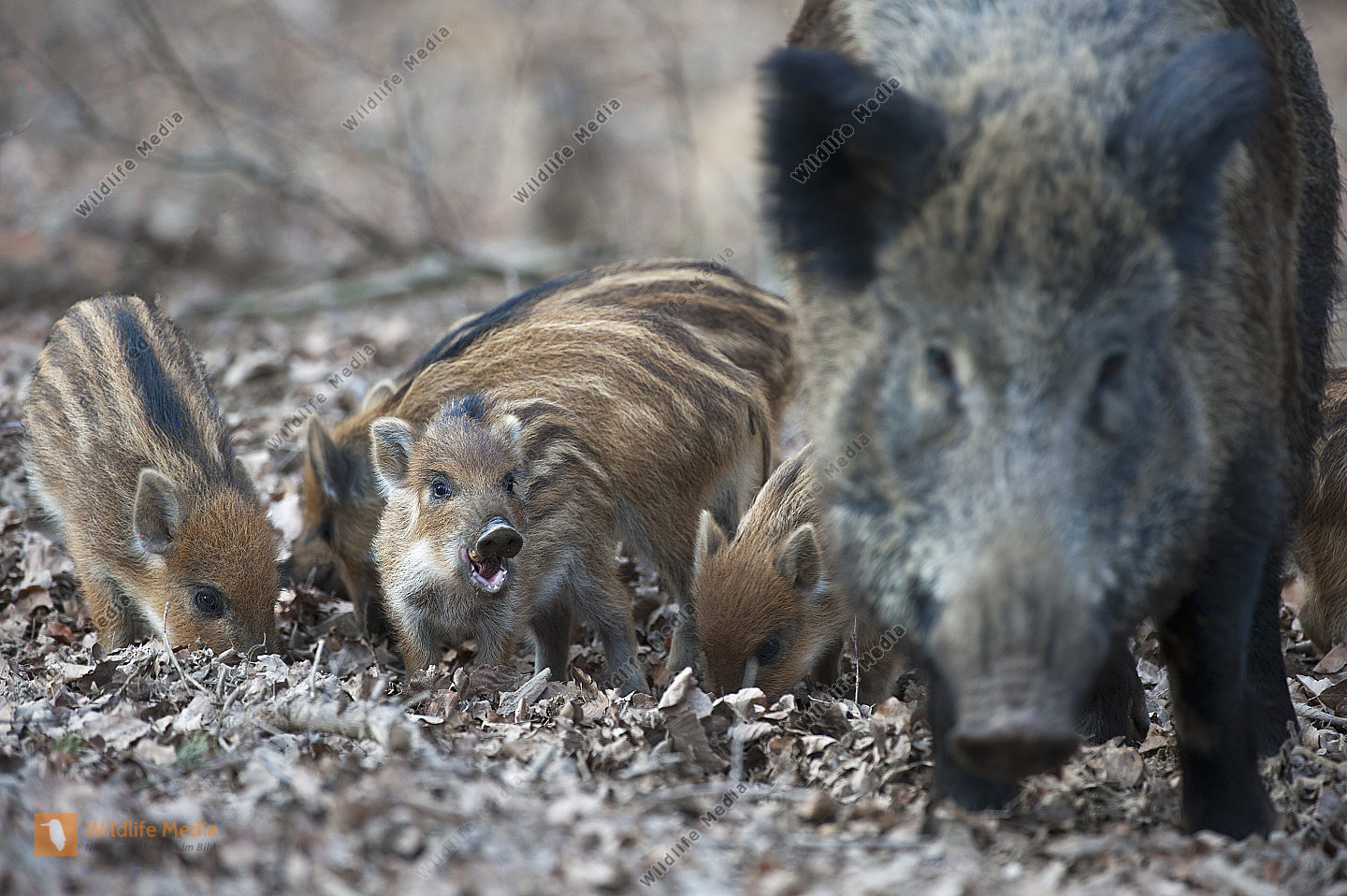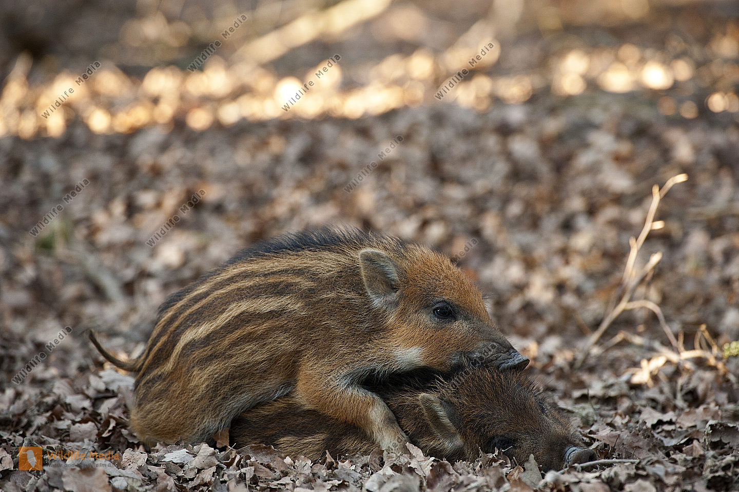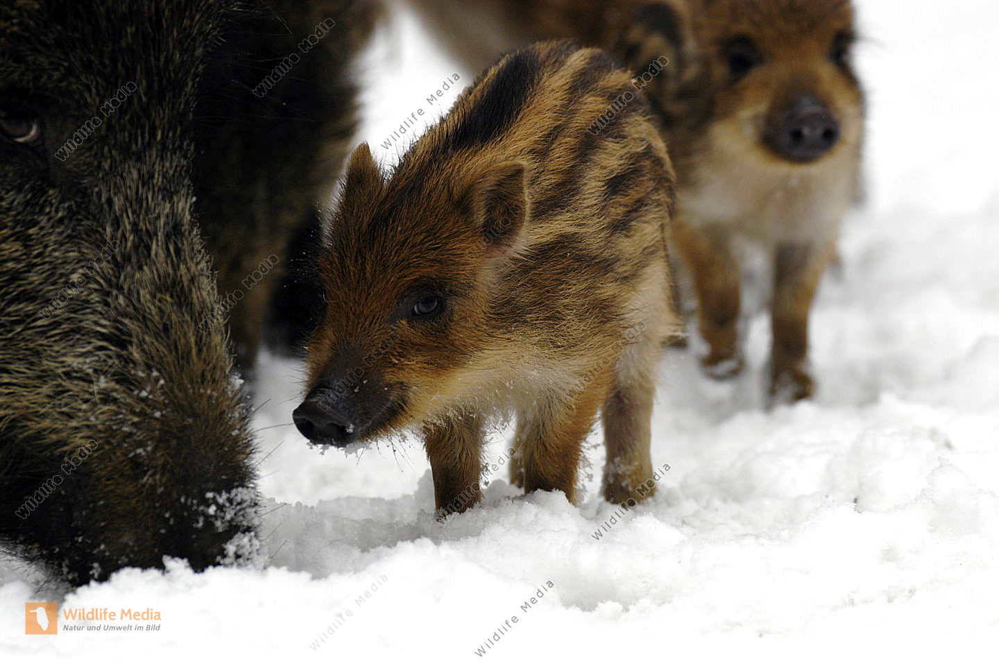 Wildschwein Sus scrofa Jungtiere im Kessel Tarnung