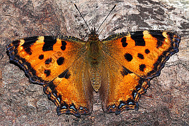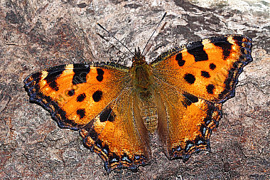 Fuchs Vulpes vulpes auf einem Baumstamm