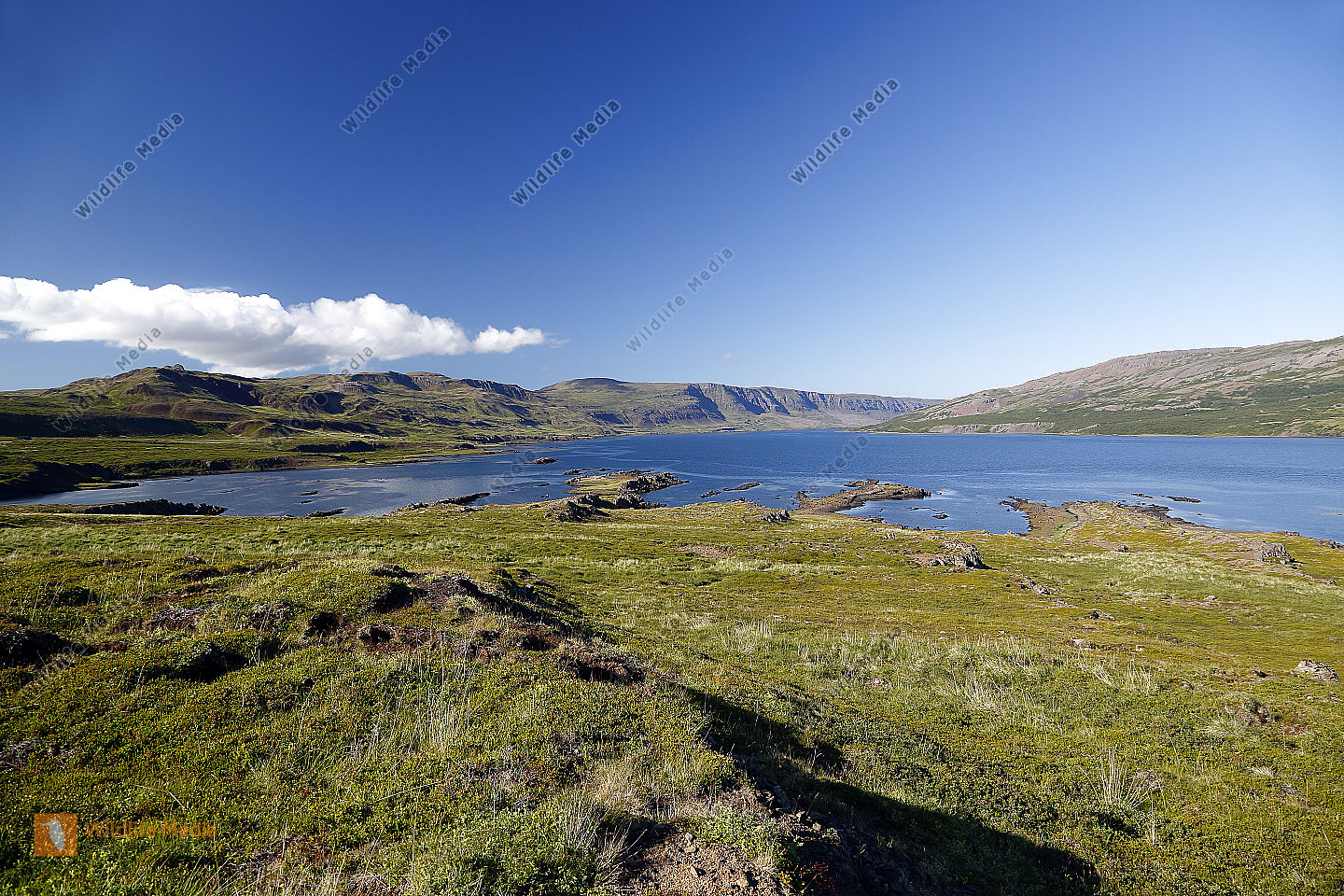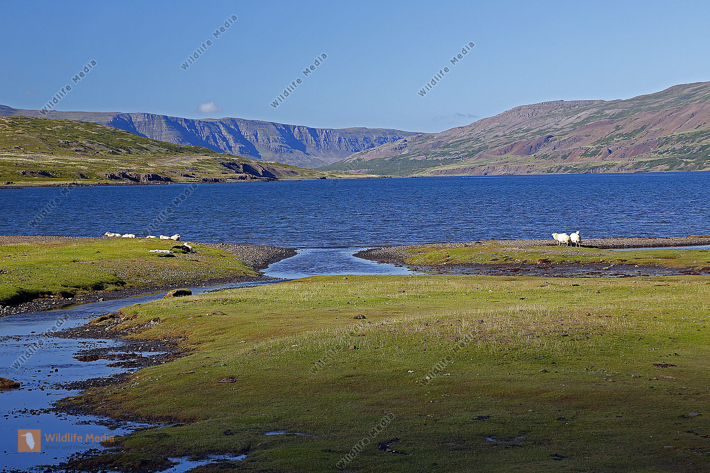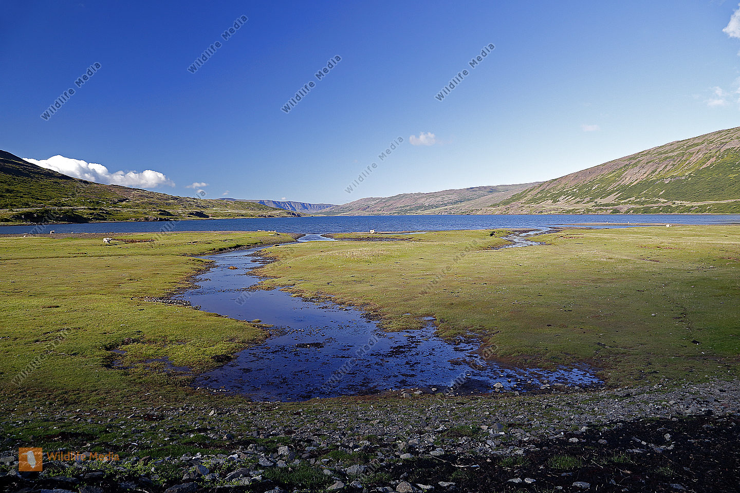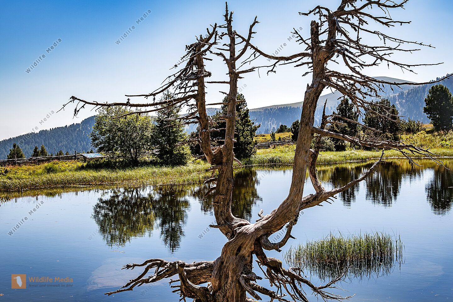 Lacke mit Schilf und Schneeberg