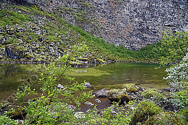 Wasserloch im Fels mit Herbstlaub