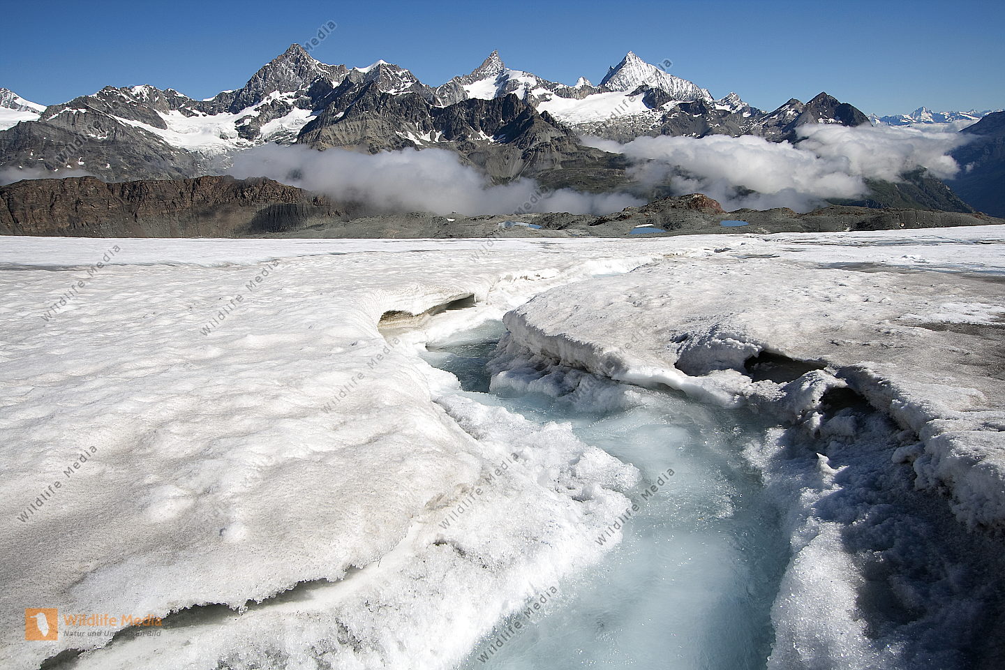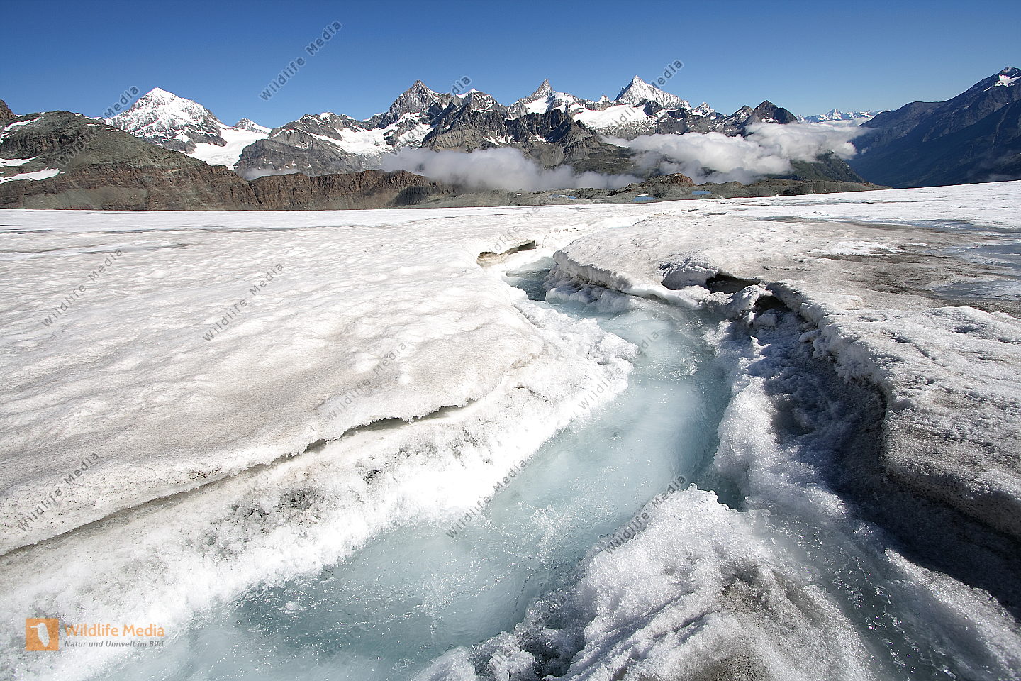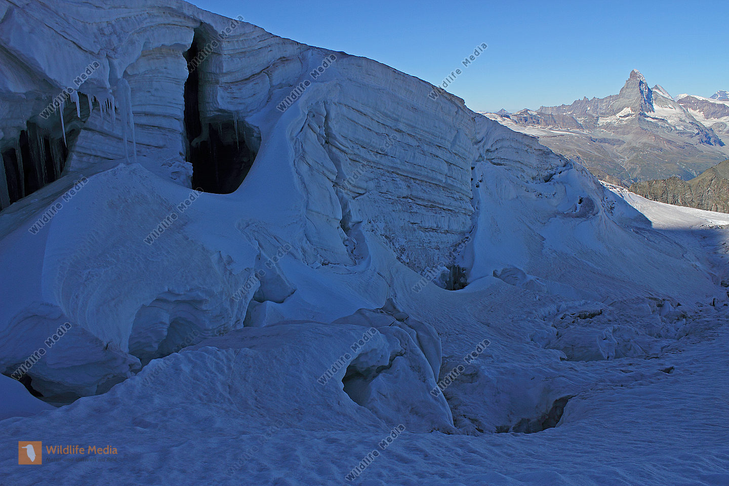 Gletscherbruch Rimpfischhorn mit Matterhorn