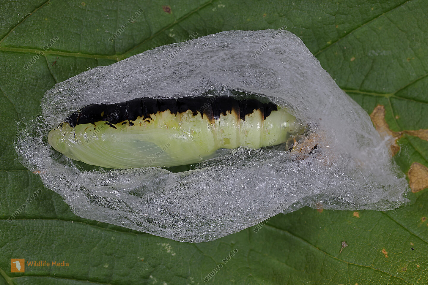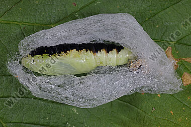 Wiesenrauten-Goldeule Raupe beim Kokonbau